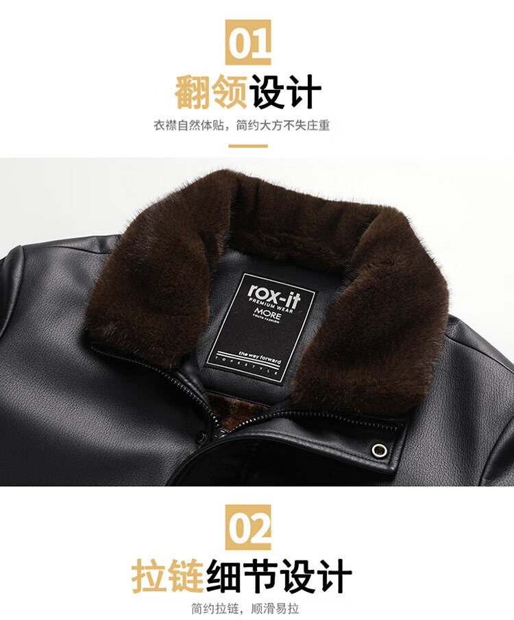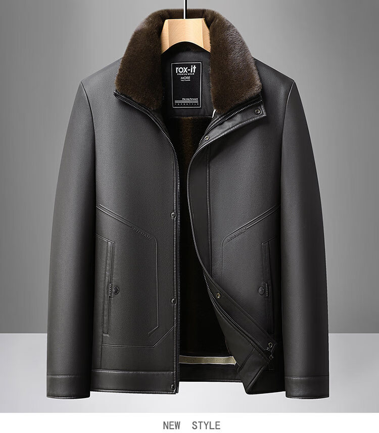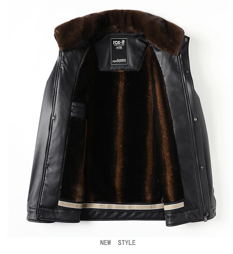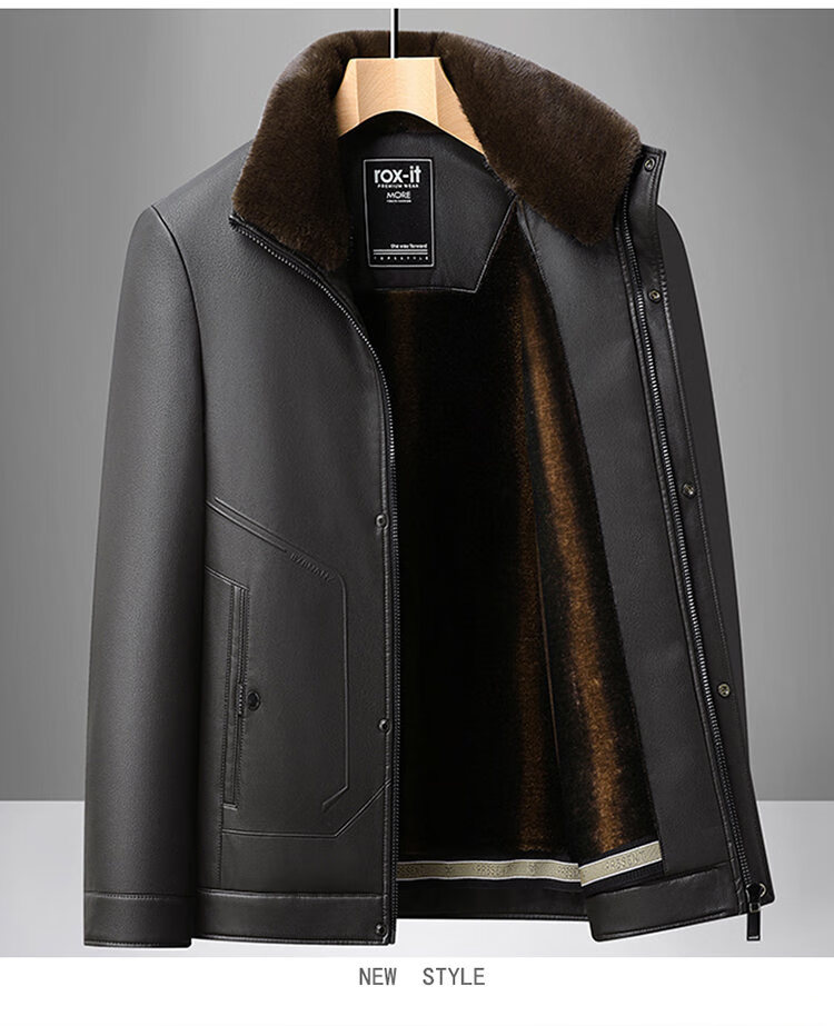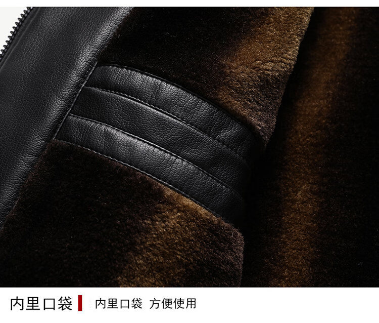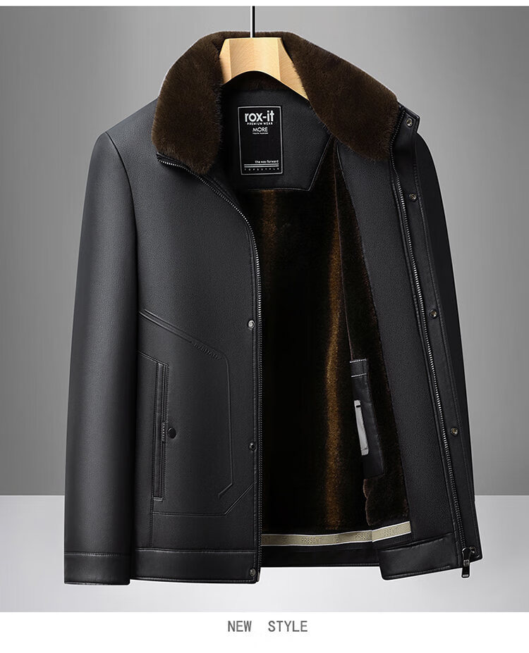 Playboy Fur All-in-One Men's Dad Winter Jacket Plus Velvet Thickened Men's Leather Jacket for Middle-aged and Elderly Grandpas to Keep Warm in Winter Black (Removable Collar) XL Recommended 105-125Jin Jin equals 0.5kg