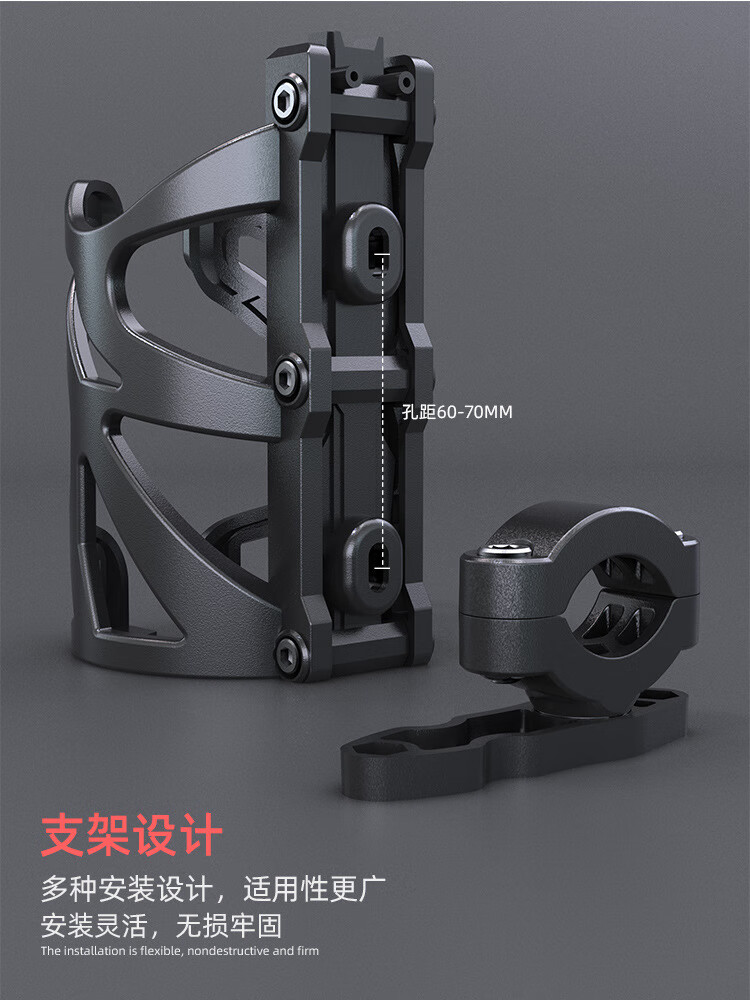 Motorcycle water cup holder bumper water bottle cup holder electric vehicle bicycle water cup holder scooter water bottle drink automatic adjustment water cup holder free tool-Dark Night