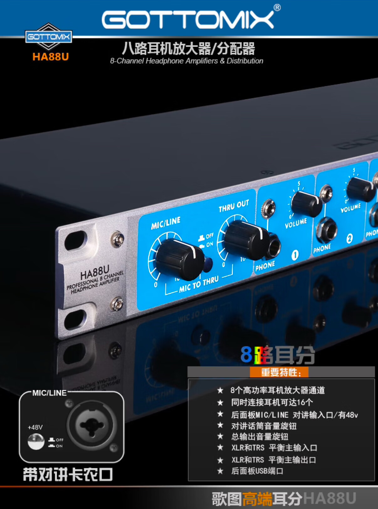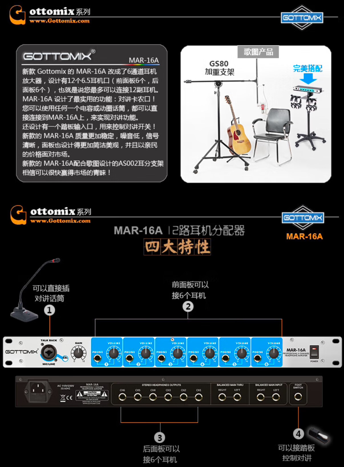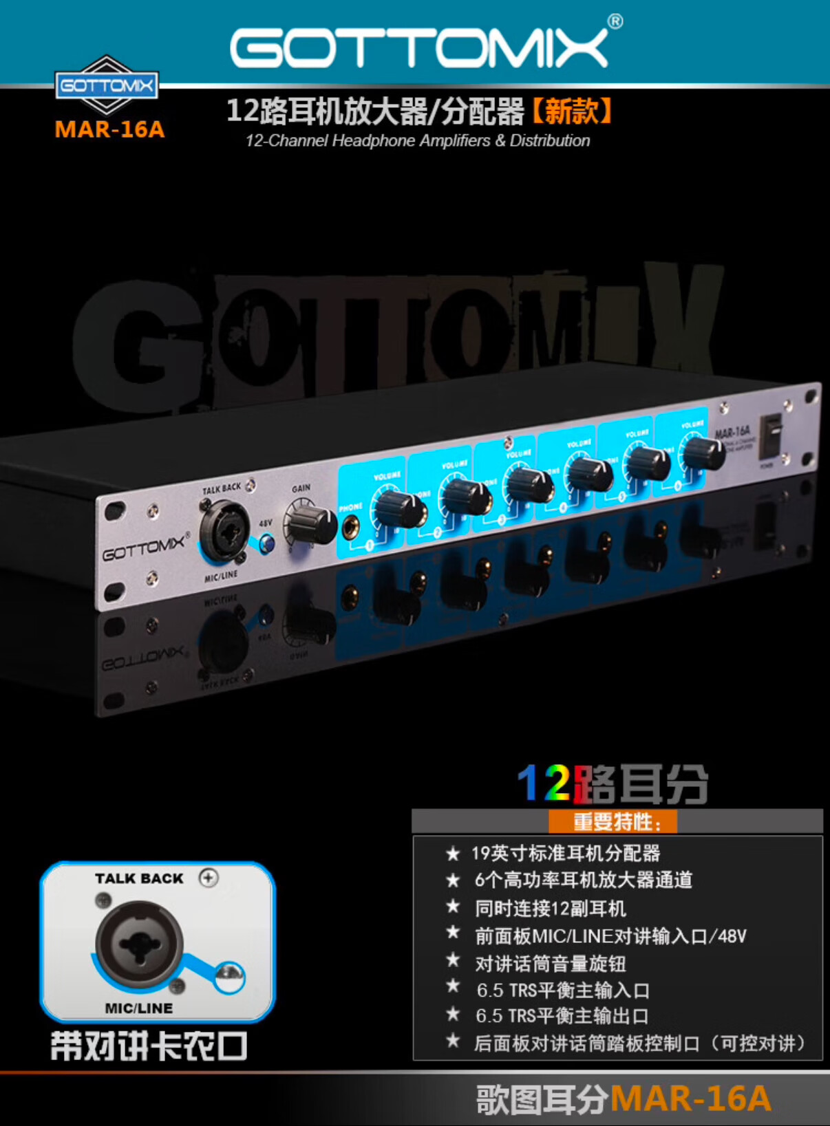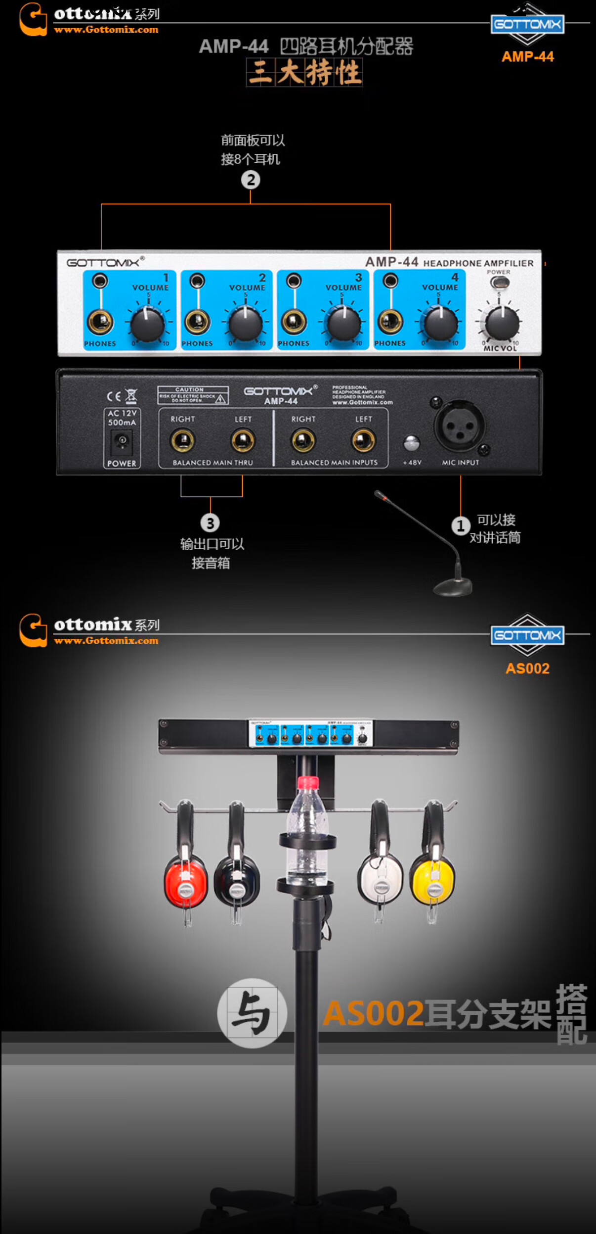 GOTTOMIX song map AMP-S4/AMP-44/MAR16A/HA1800 recording studio headphone splitter ear splitter with intercom lossless stereo amplifier ear amplifier operational amplifier clear AMP-44 8-way ear splitter