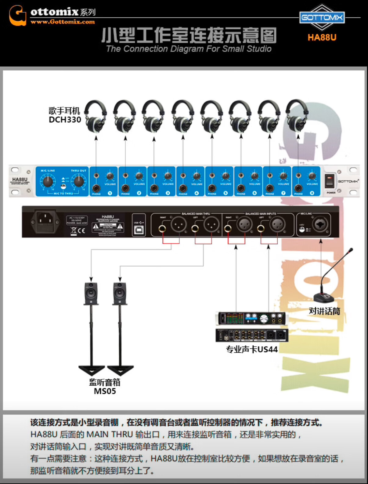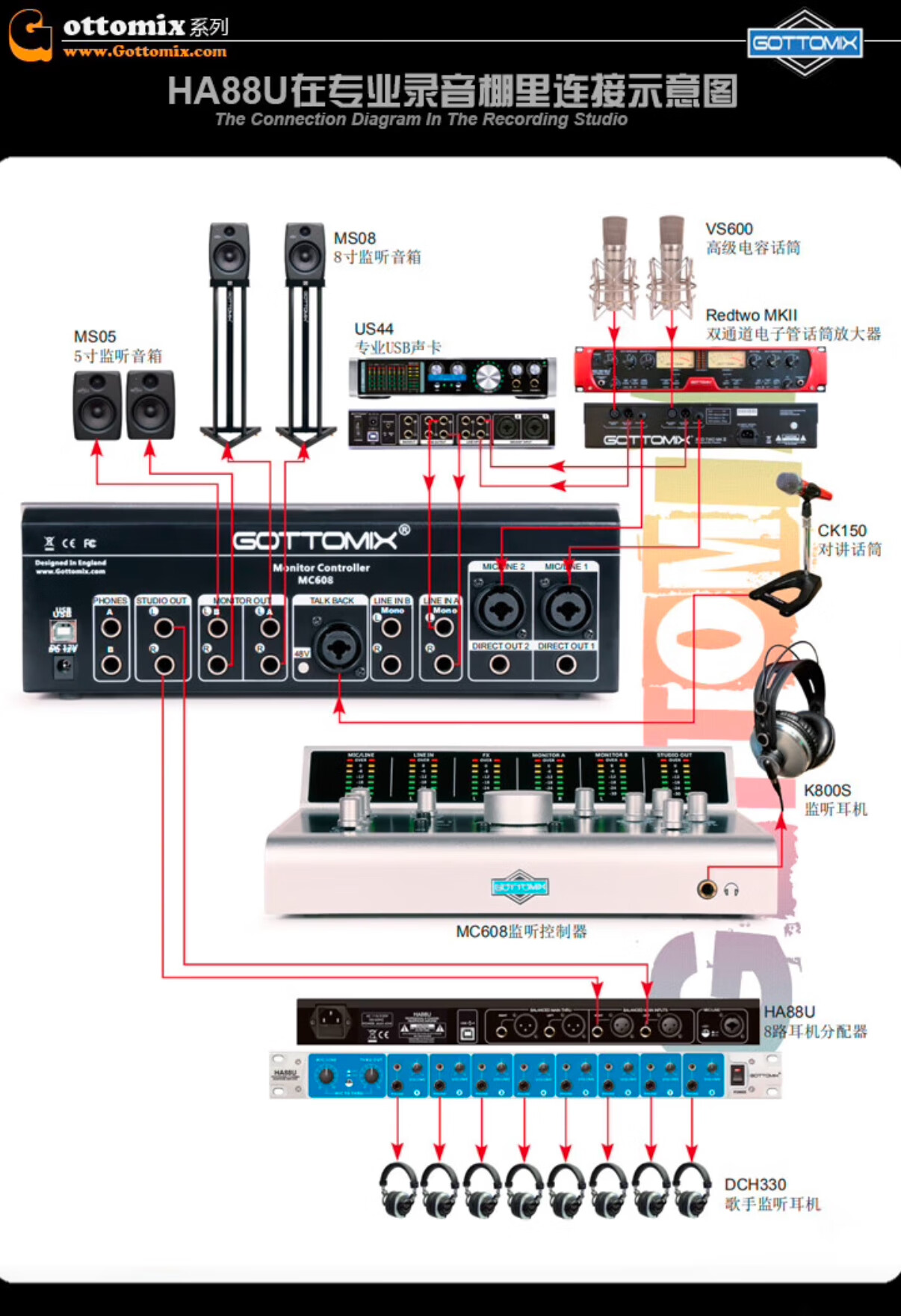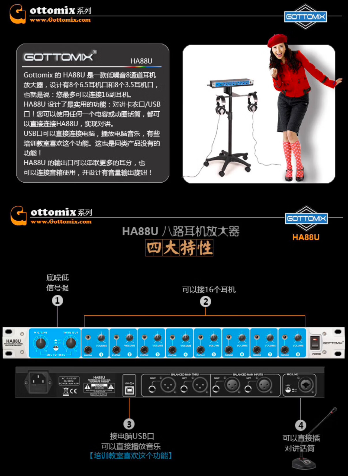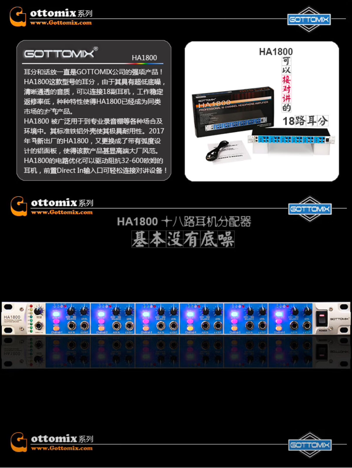 GOTTOMIX song map AMP-S4/AMP-44/MAR16A/HA1800 recording studio headphone splitter ear splitter with intercom lossless stereo amplifier ear amplifier operational amplifier clear AMP-44 8-way ear splitter