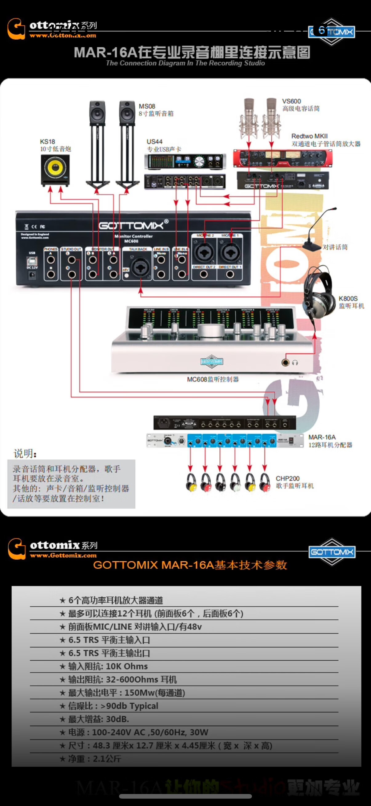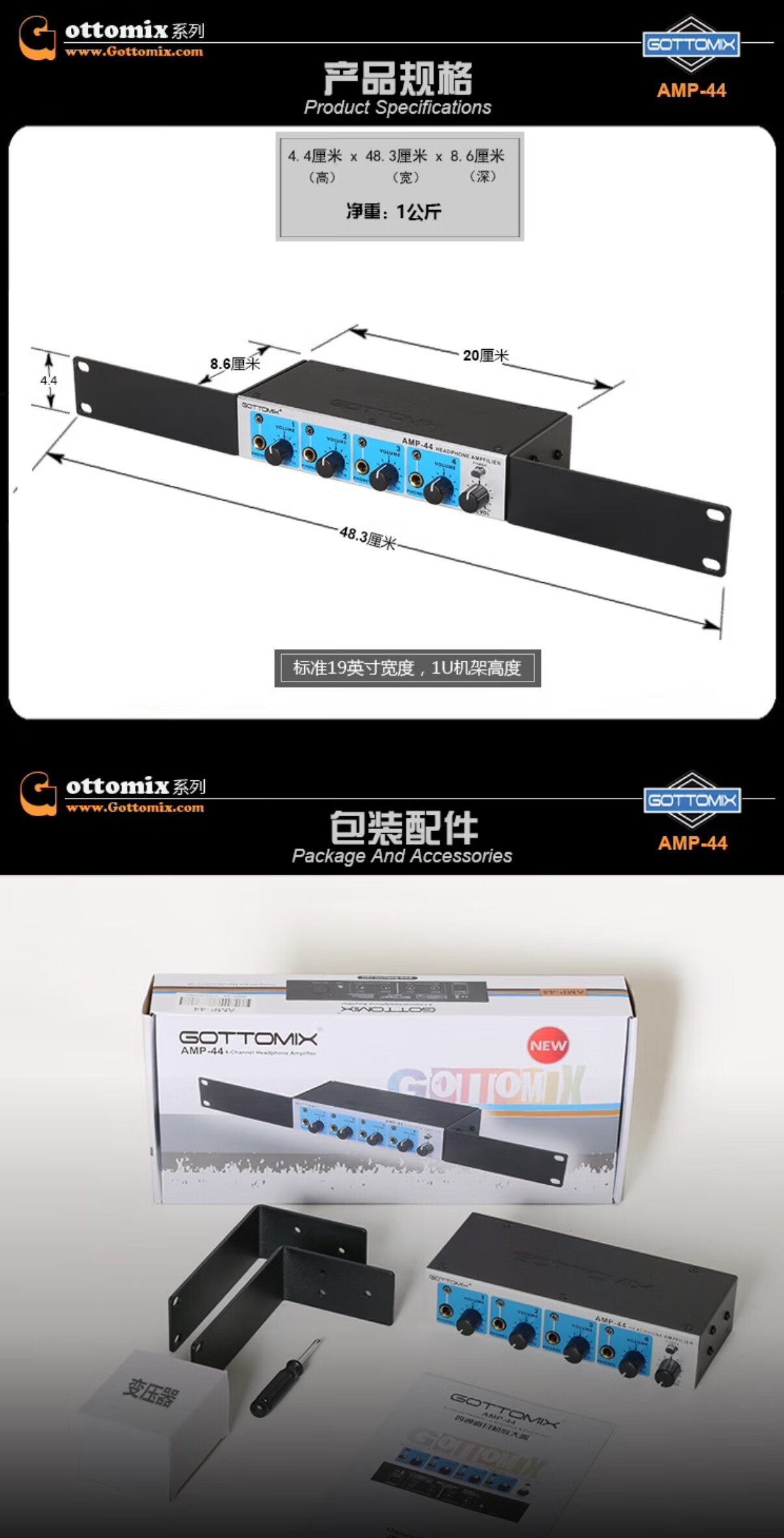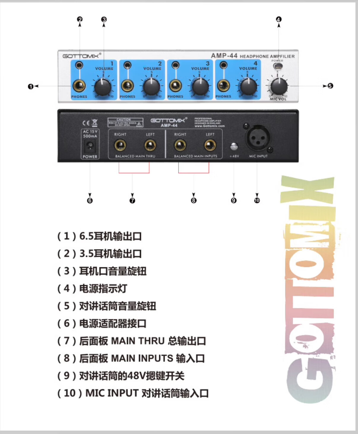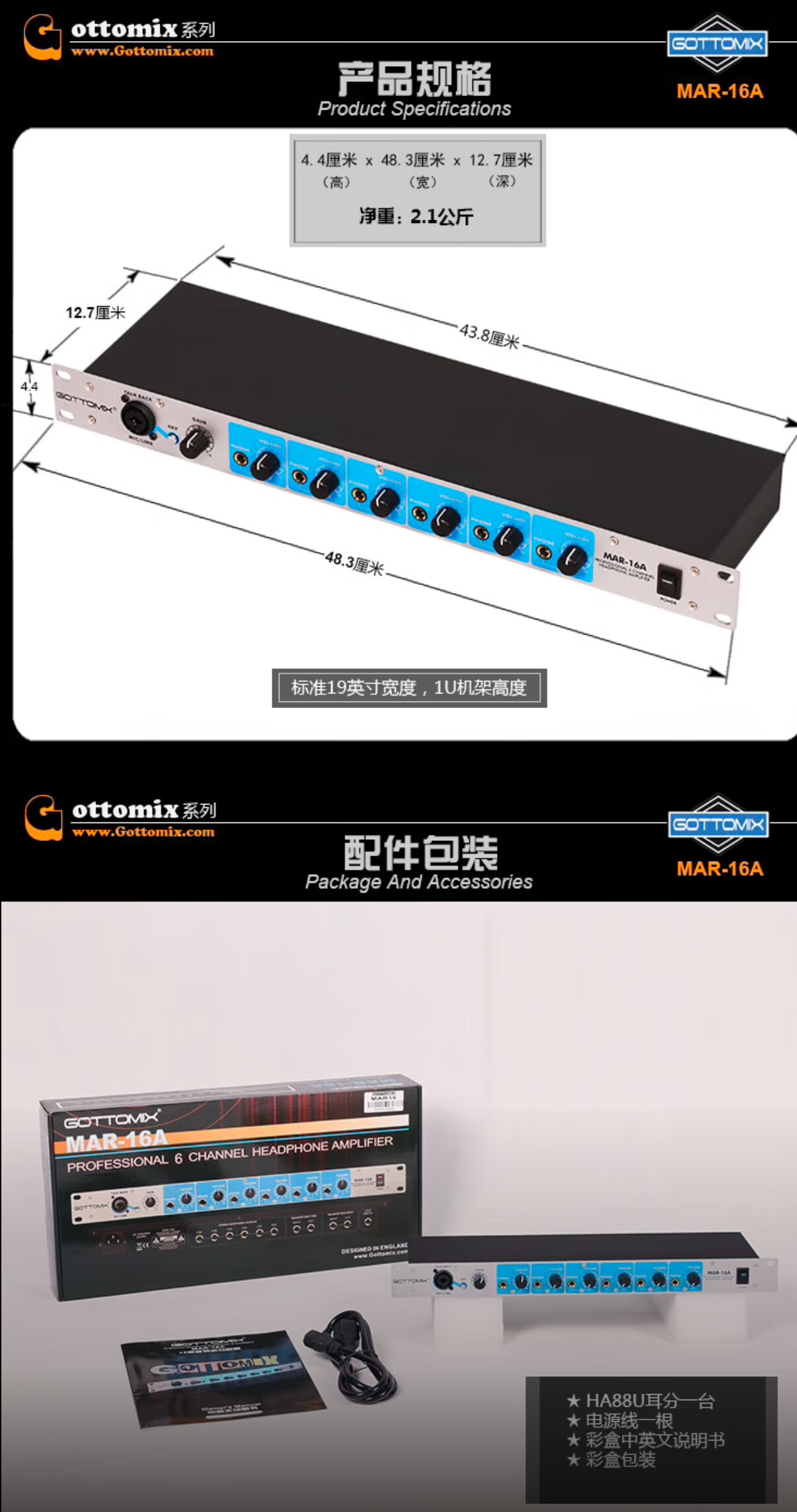 GOTTOMIX song map AMP-S4/AMP-44/MAR16A/HA1800 recording studio headphone splitter ear splitter with intercom lossless stereo amplifier ear amplifier operational amplifier clear AMP-44 8-way ear splitter