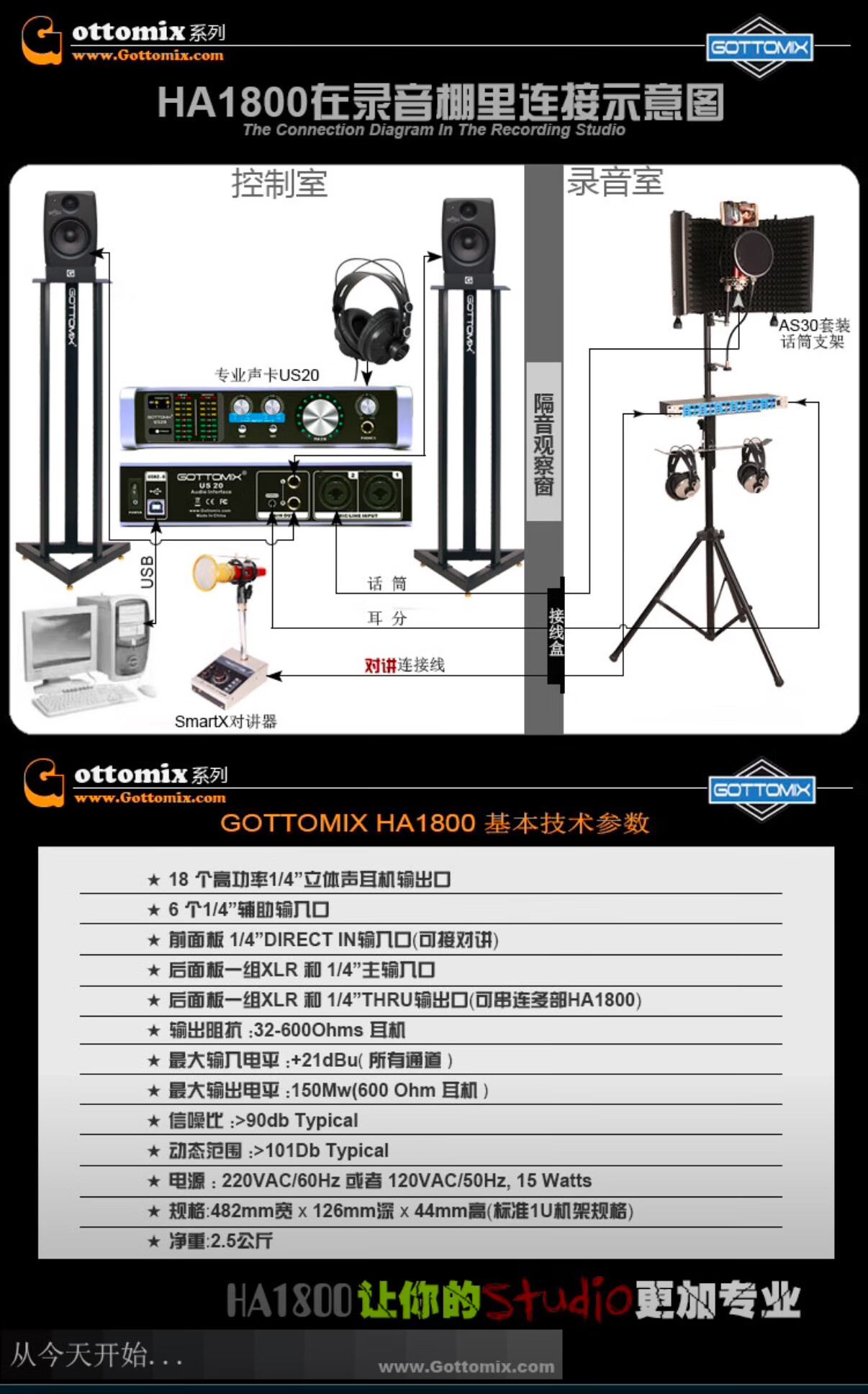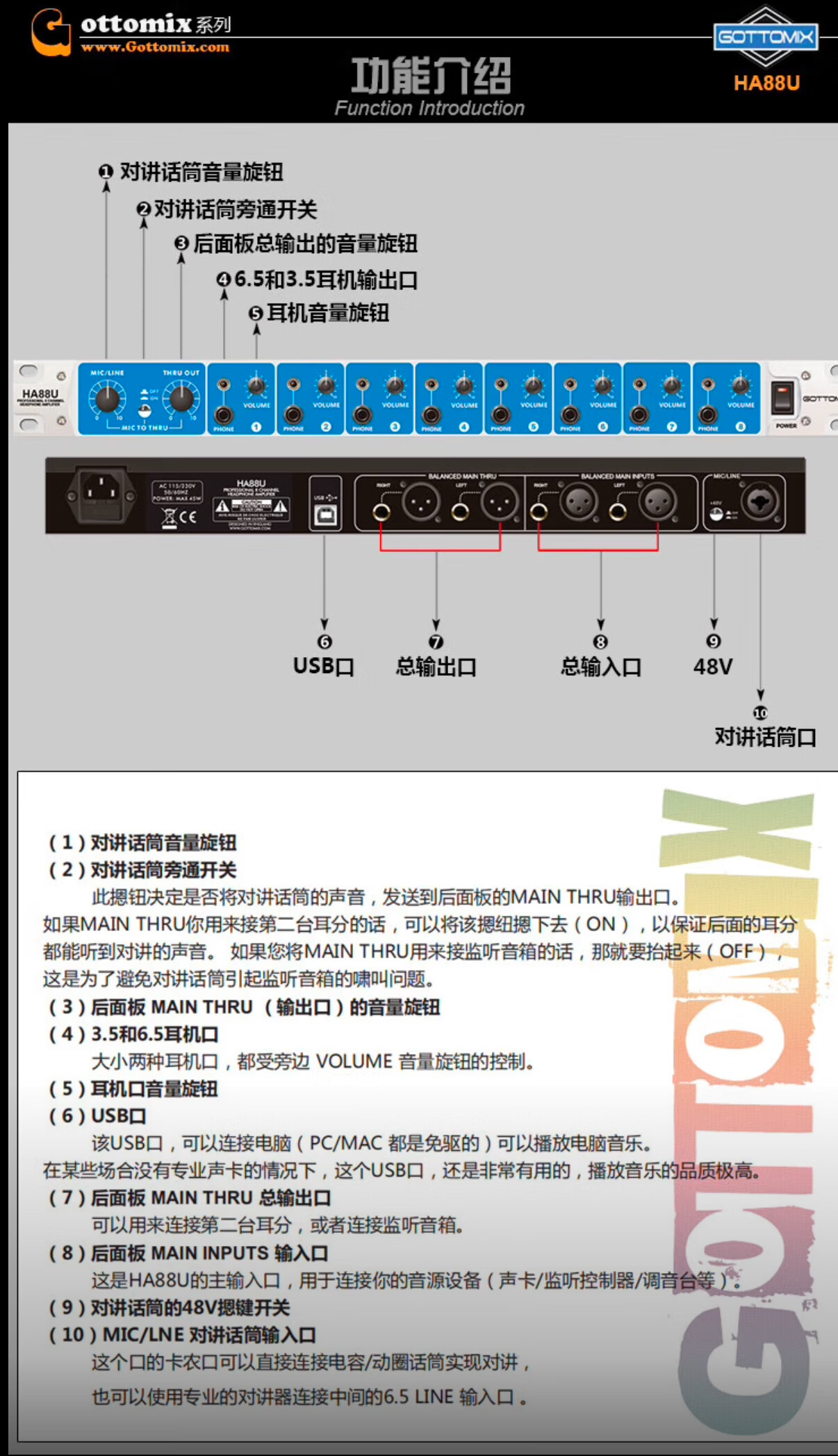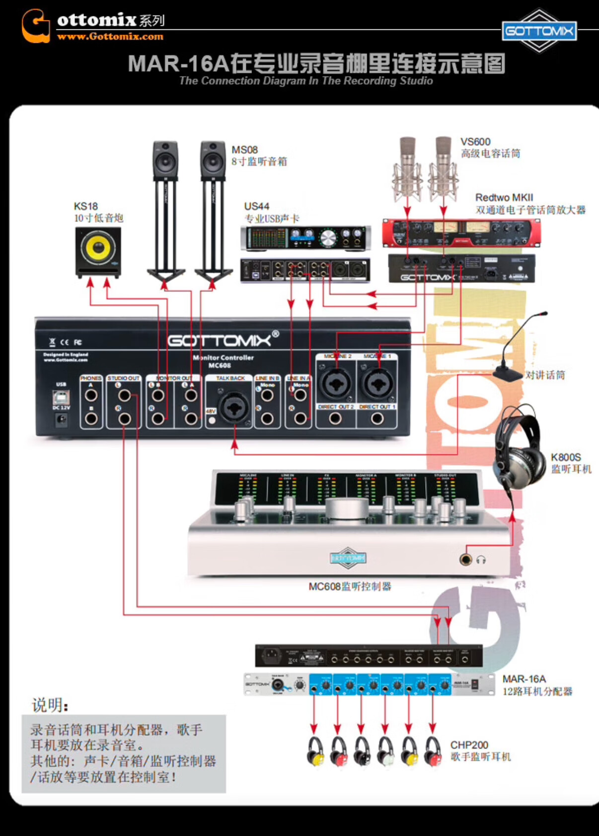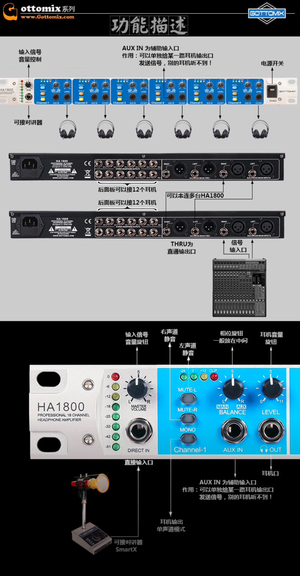 GOTTOMIX song map AMP-S4/AMP-44/MAR16A/HA1800 recording studio headphone splitter ear splitter with intercom lossless stereo amplifier ear amplifier operational amplifier clear AMP-44 8-way ear splitter