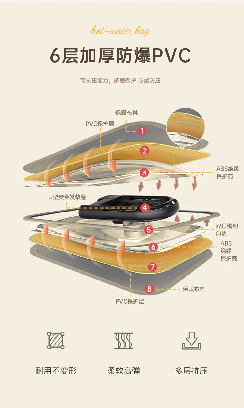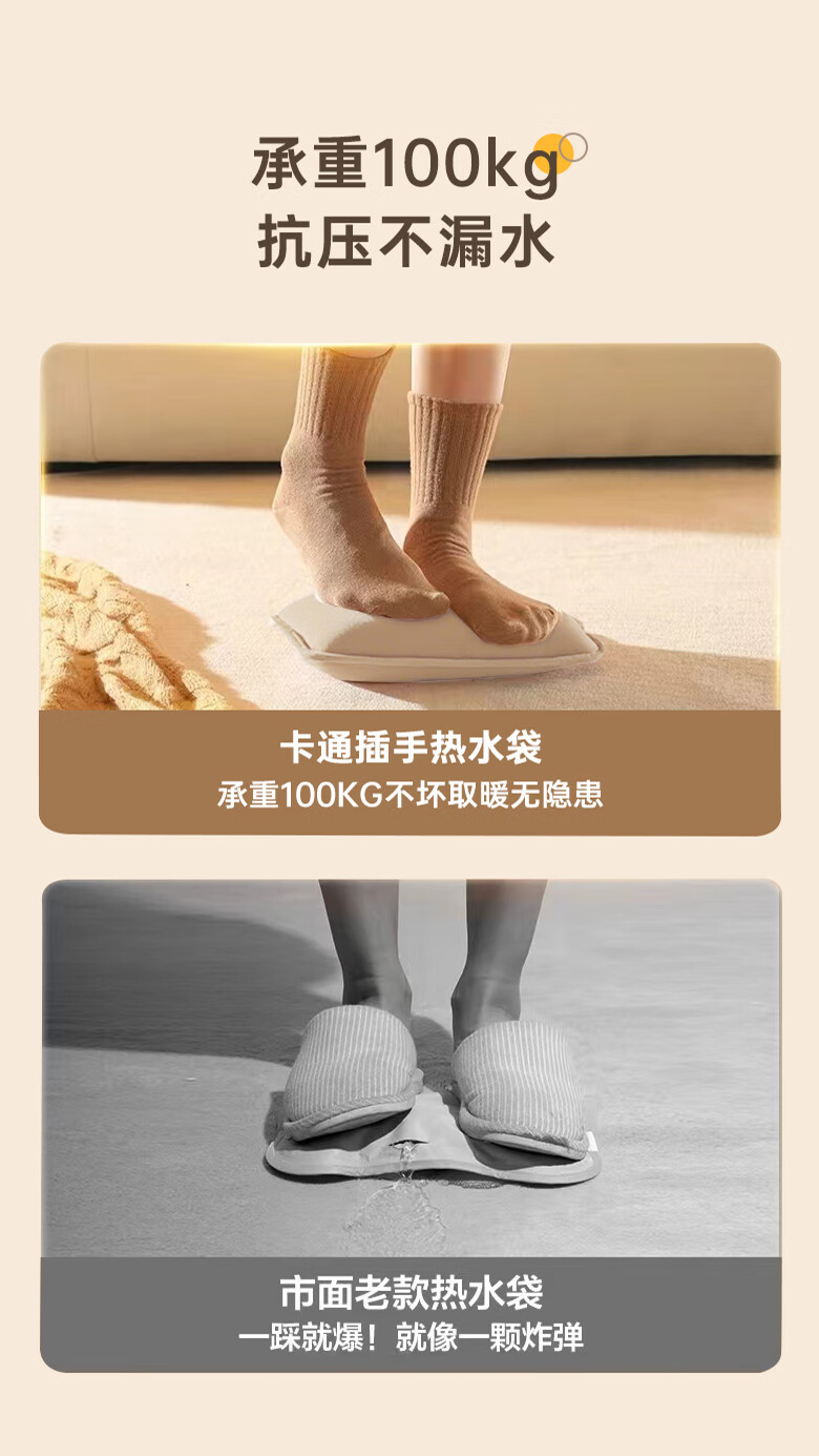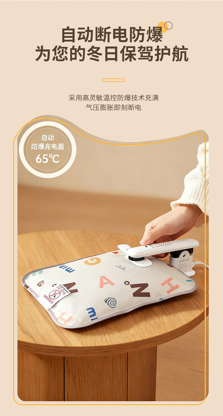 New national standard electric hot water bag, hand warmer, baby warmer, explosion-proof water-filled hot water bag, cute waist warmer bag, quilt warmer, automatic power-off electric warmer, water-filled type/free velvet cloth cover 500ml
