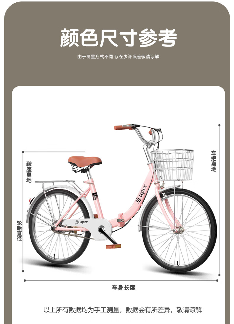 Folding bicycle for women, installation-free for adults, 24-inch and 26-inch, inflatable commuter light bicycle for college students. Folding 95, installation-free. Matcha green - standard configuration - iron frame. Simple assembly. Inflatable version. 26 inches suitable for heights 155-175 cm.