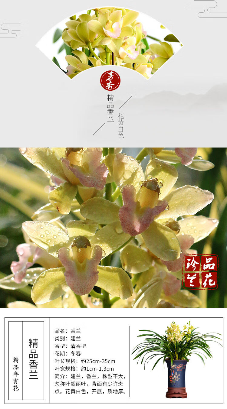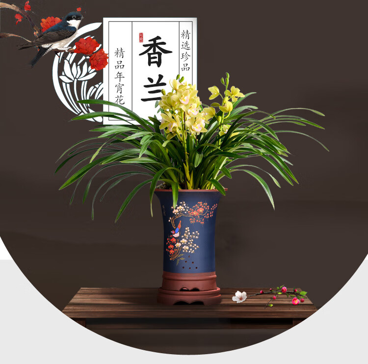Strong-scented large-flowered orchid green plant potted New Year's Eve flowers with buds in autumn and winter. Pandan 5 seedlings (flowering in autumn and winter) + antique flower pots