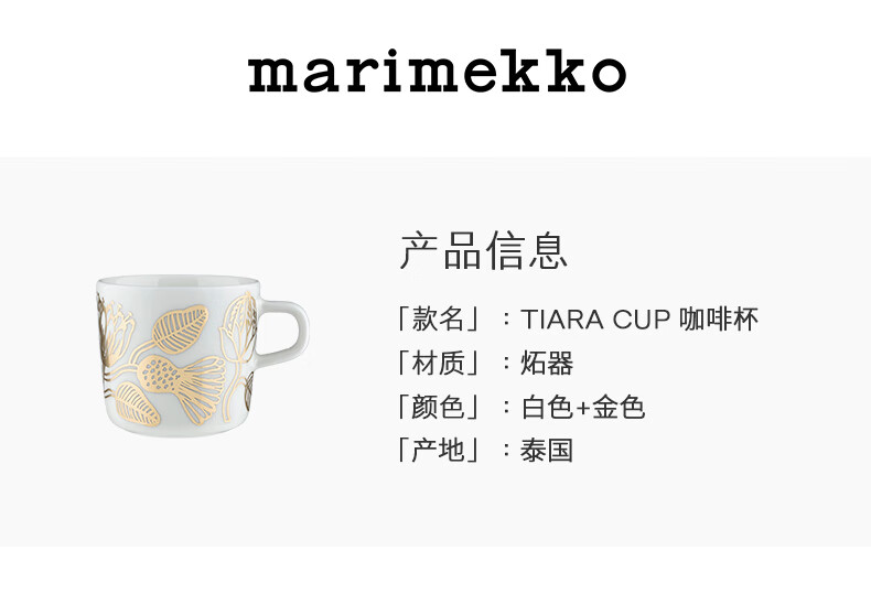 Marimekko38 Goddess' Day Gift Marimekko 2025 Autumn and Winter New Product TIARA Printed Coffee Cup 200ml White, Gold