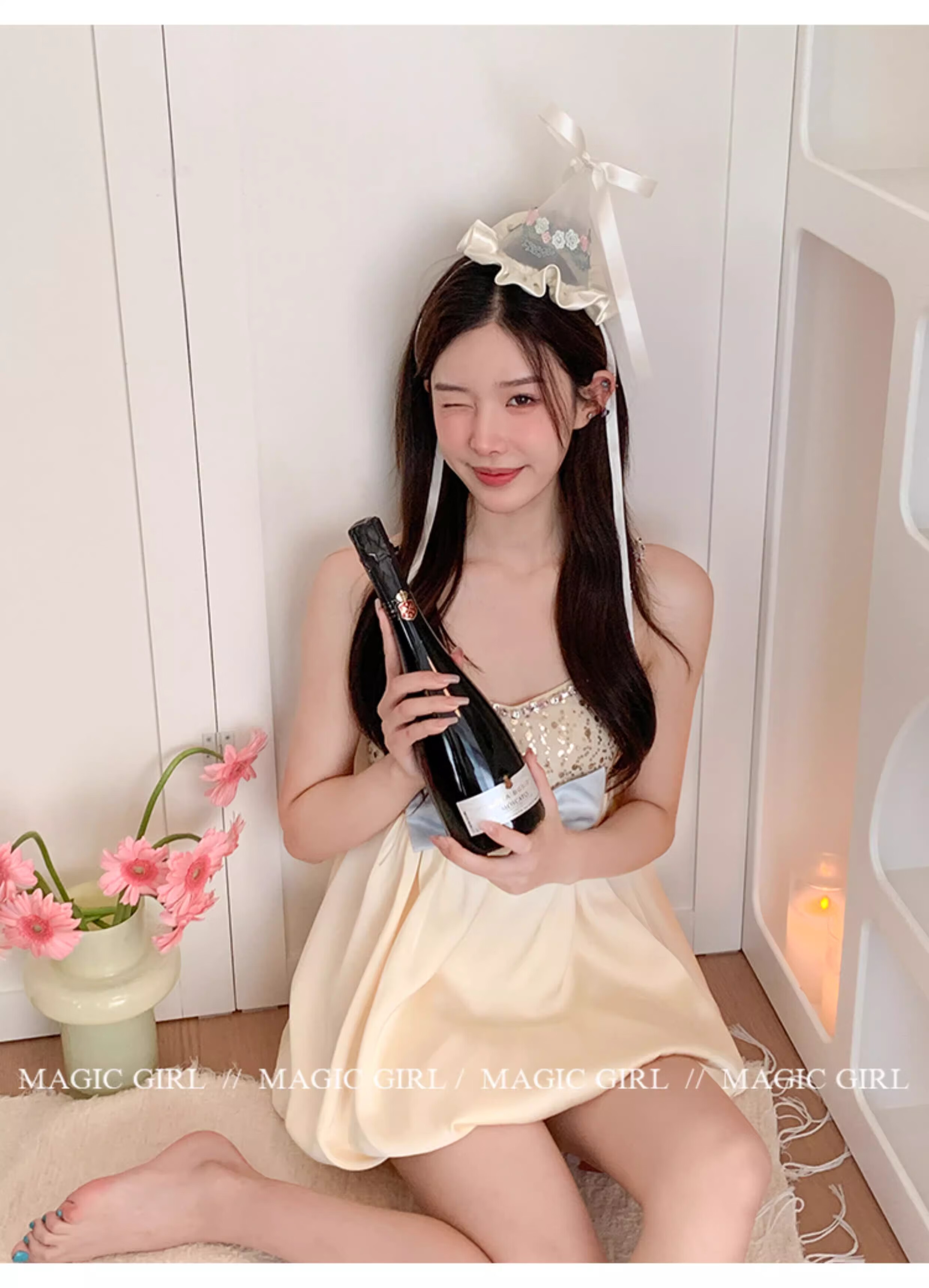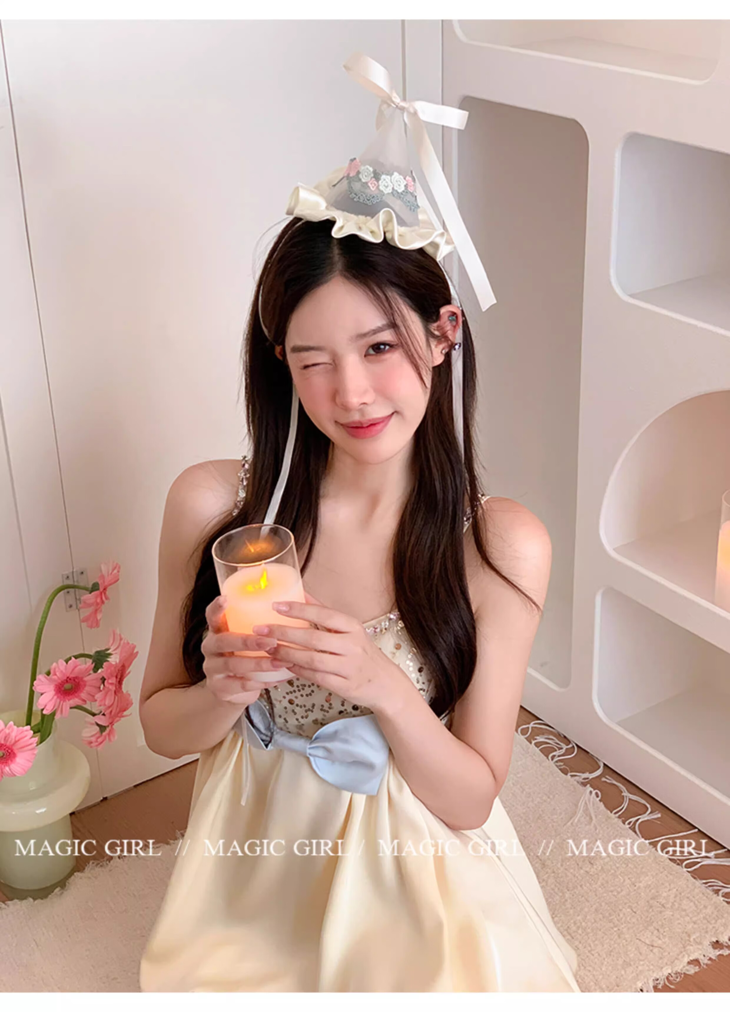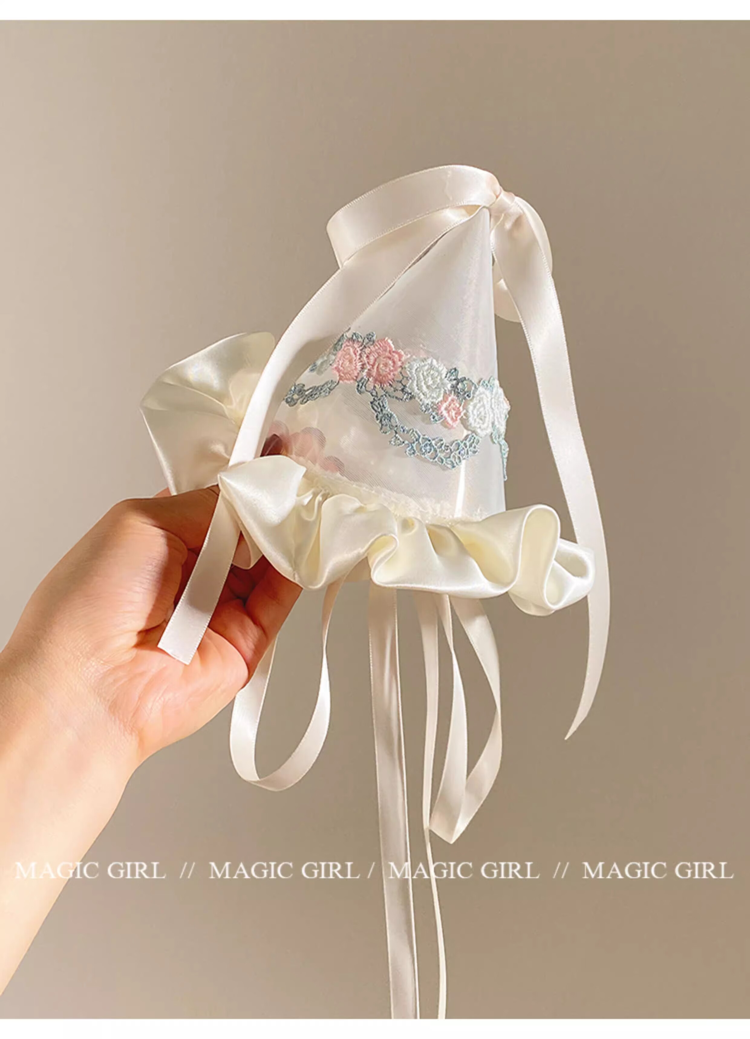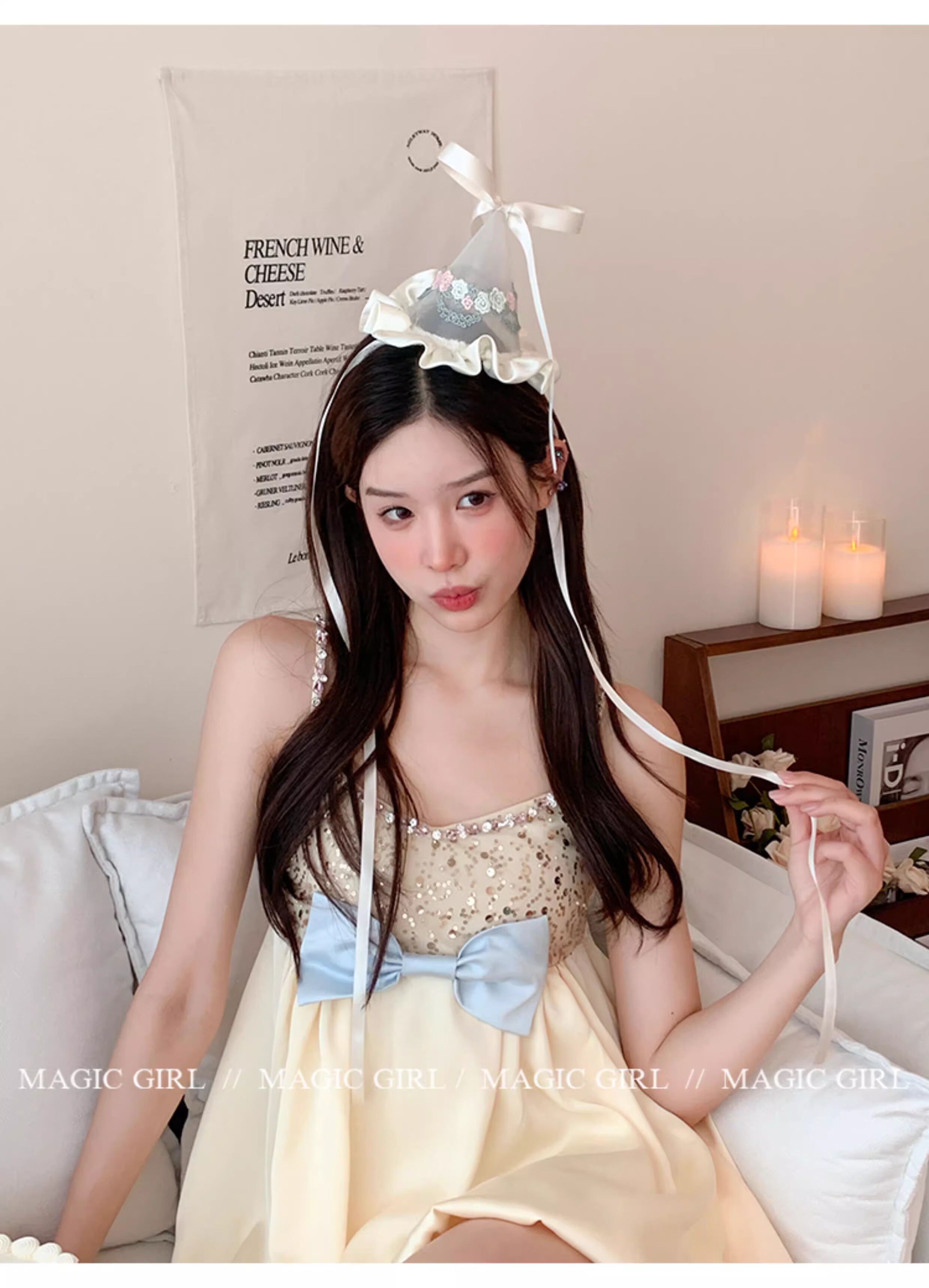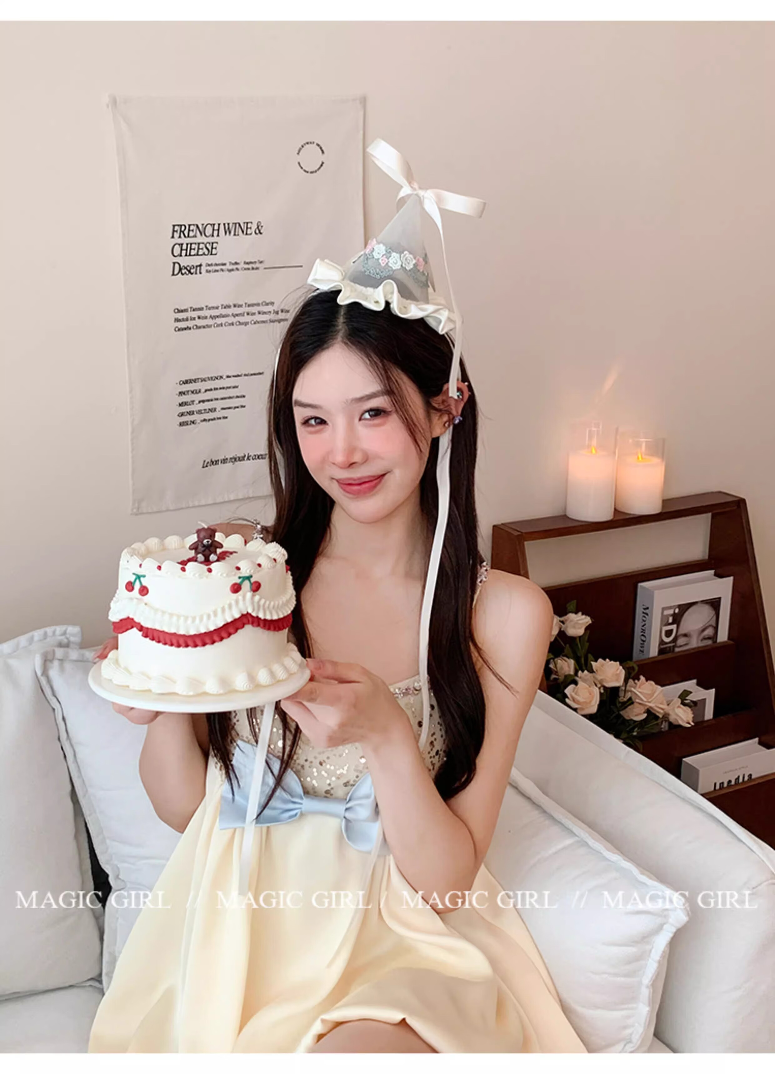 Shui Yunmiao birthday hat, hairpin, headdress, women's hat, ceremonial feather princess, party atmosphere, photo and photo props for celebrating birthday, flower streamer birthday hat - hairpin type, not easy to fall off