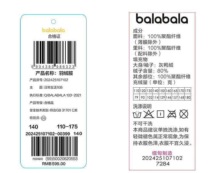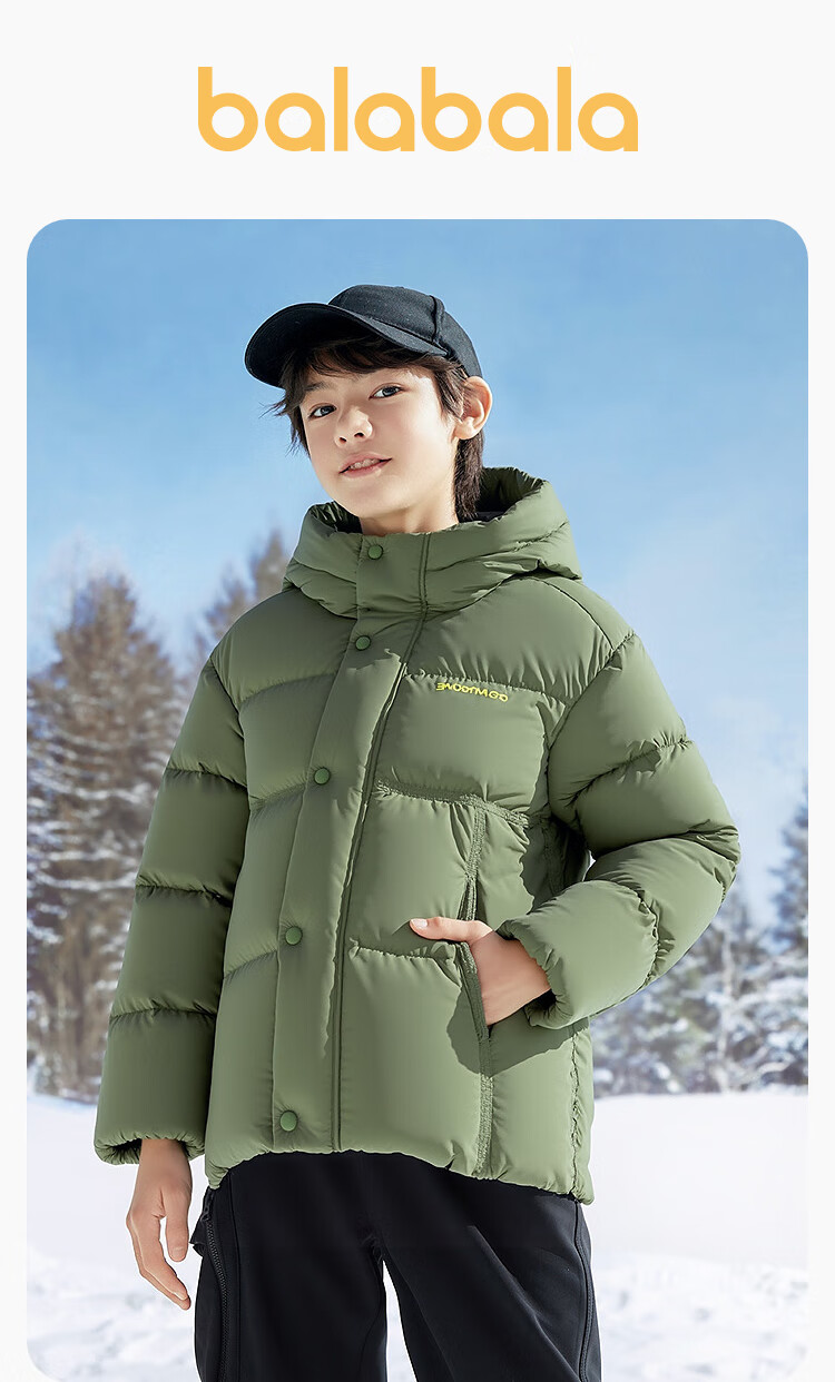 Balabala Children's Clothing Children's Down Jacket Boys 2025 New Winter Warm Jacket Black Tone 00399-Gray Duck Down 110 (Feather Filling 79g)