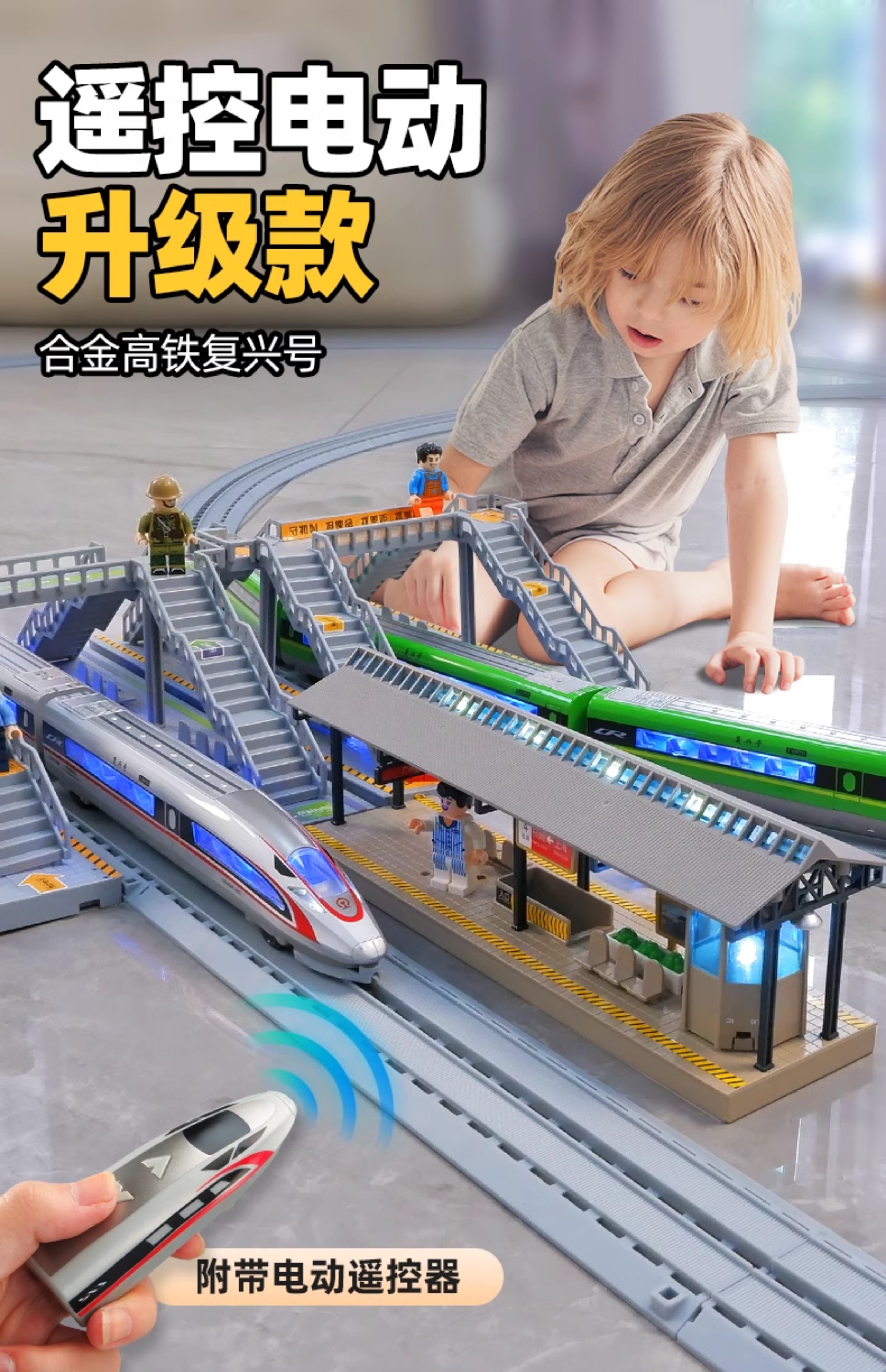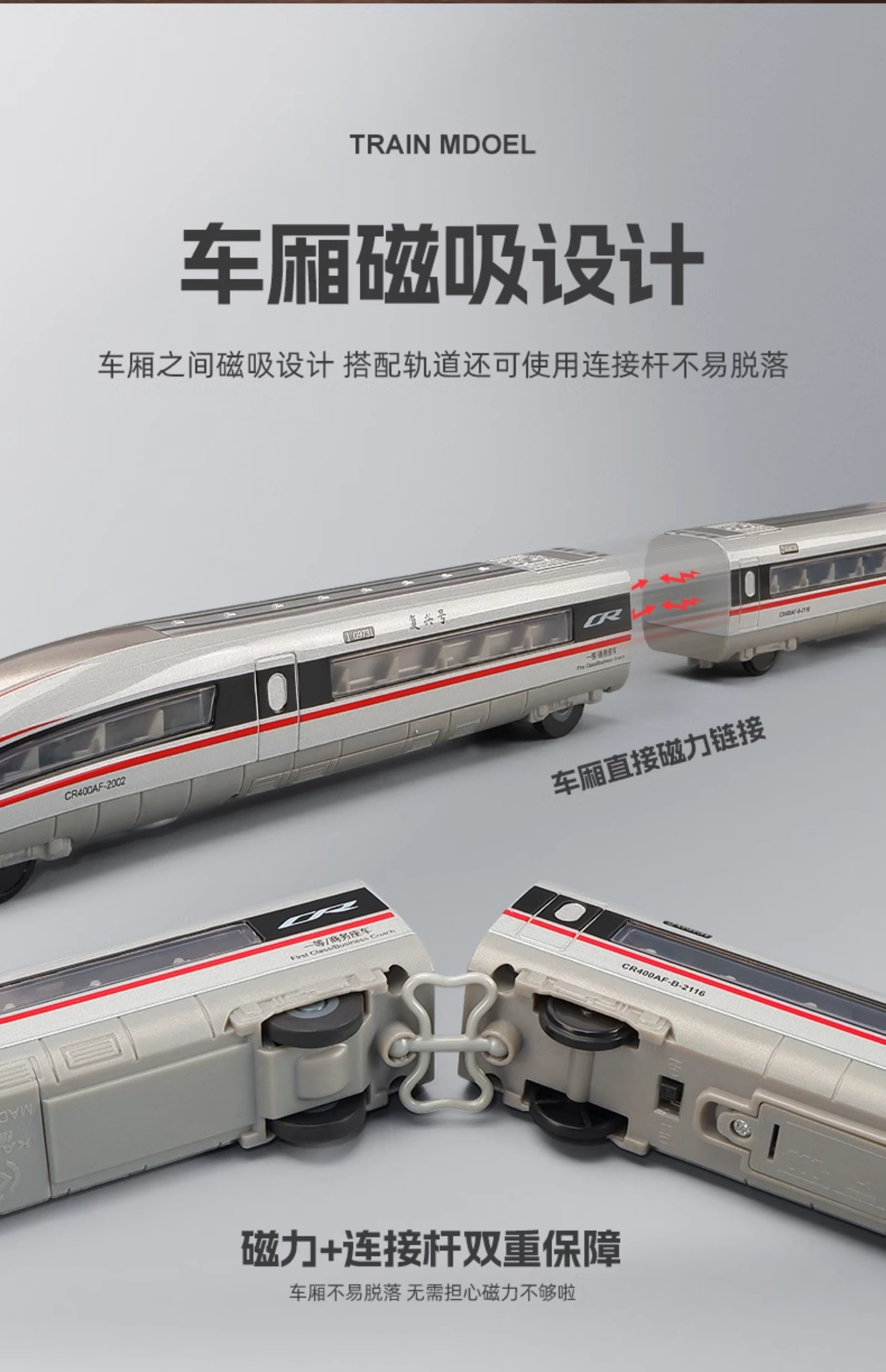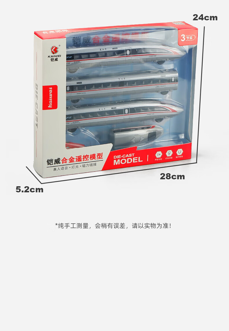 Kawei (KIV) alloy remote control high-speed rail toy train simulation rail car Fuxing train model children's toy car 3 years old and 6 years old rechargeable remote control model - Fuxing - three sections - silver