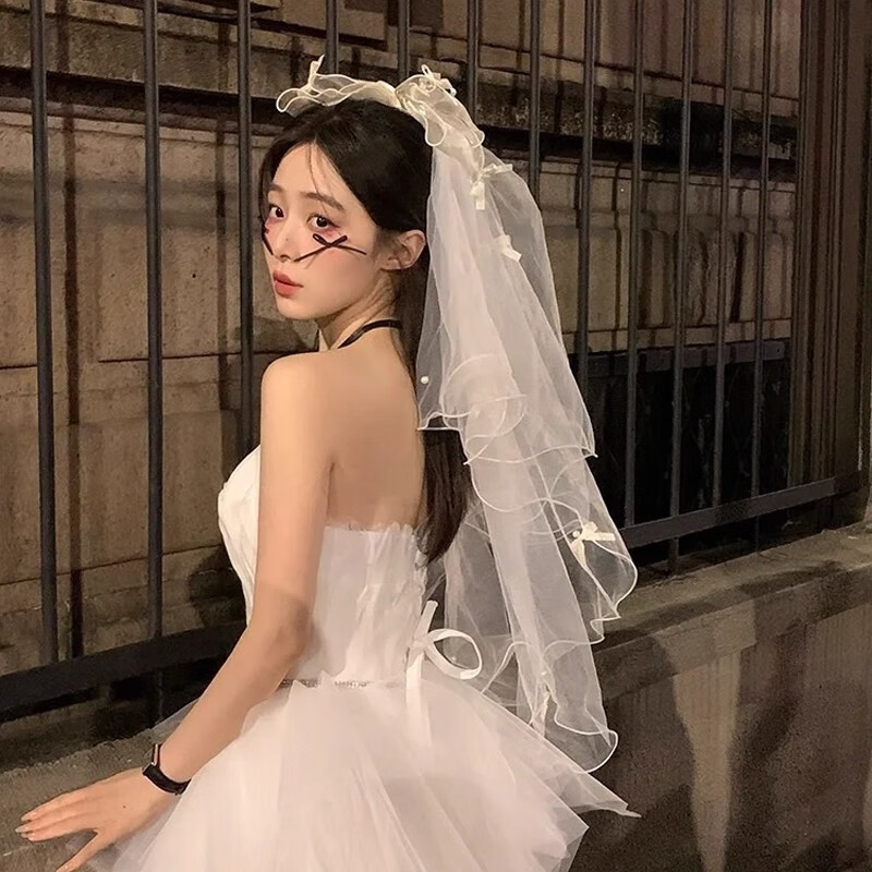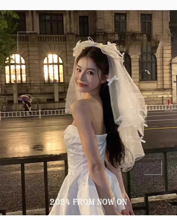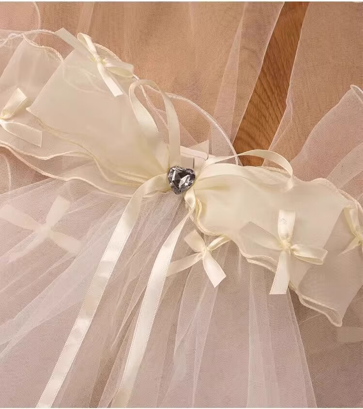 Shui Yunmiao bridal veil headdress wedding proposal fluffy yarn bow 2025 light luxury hair accessories wedding photo props headdress bow love veil 60cm hairpin style
