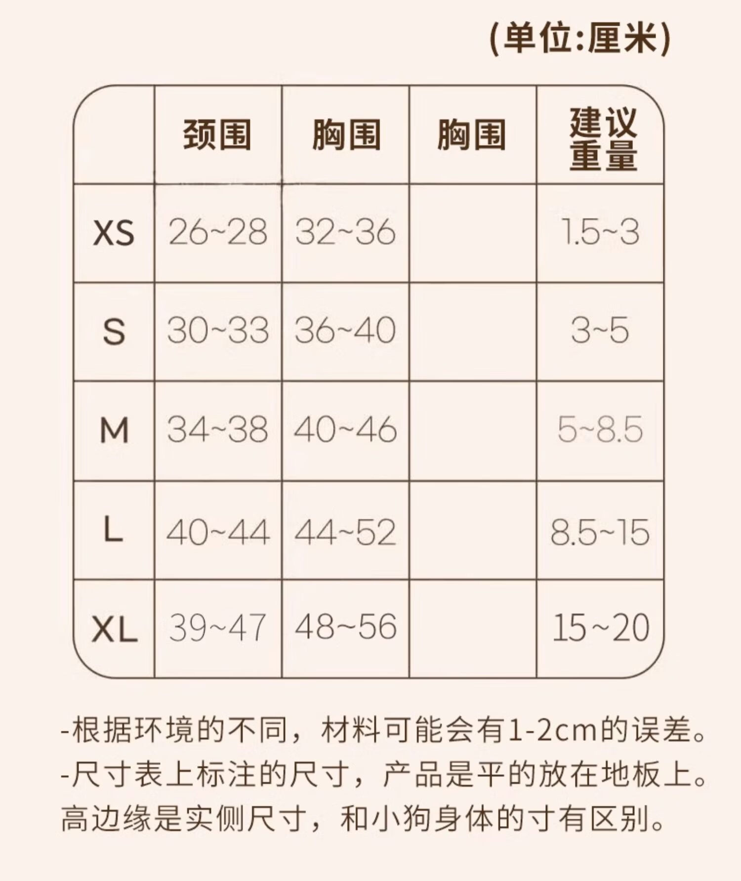 Size (cm) 42 44 46 48 50