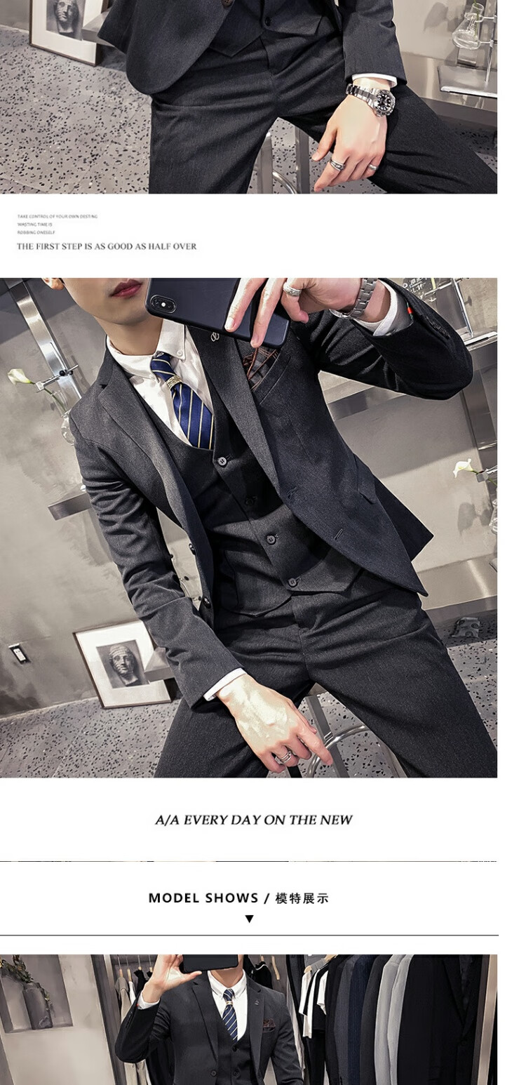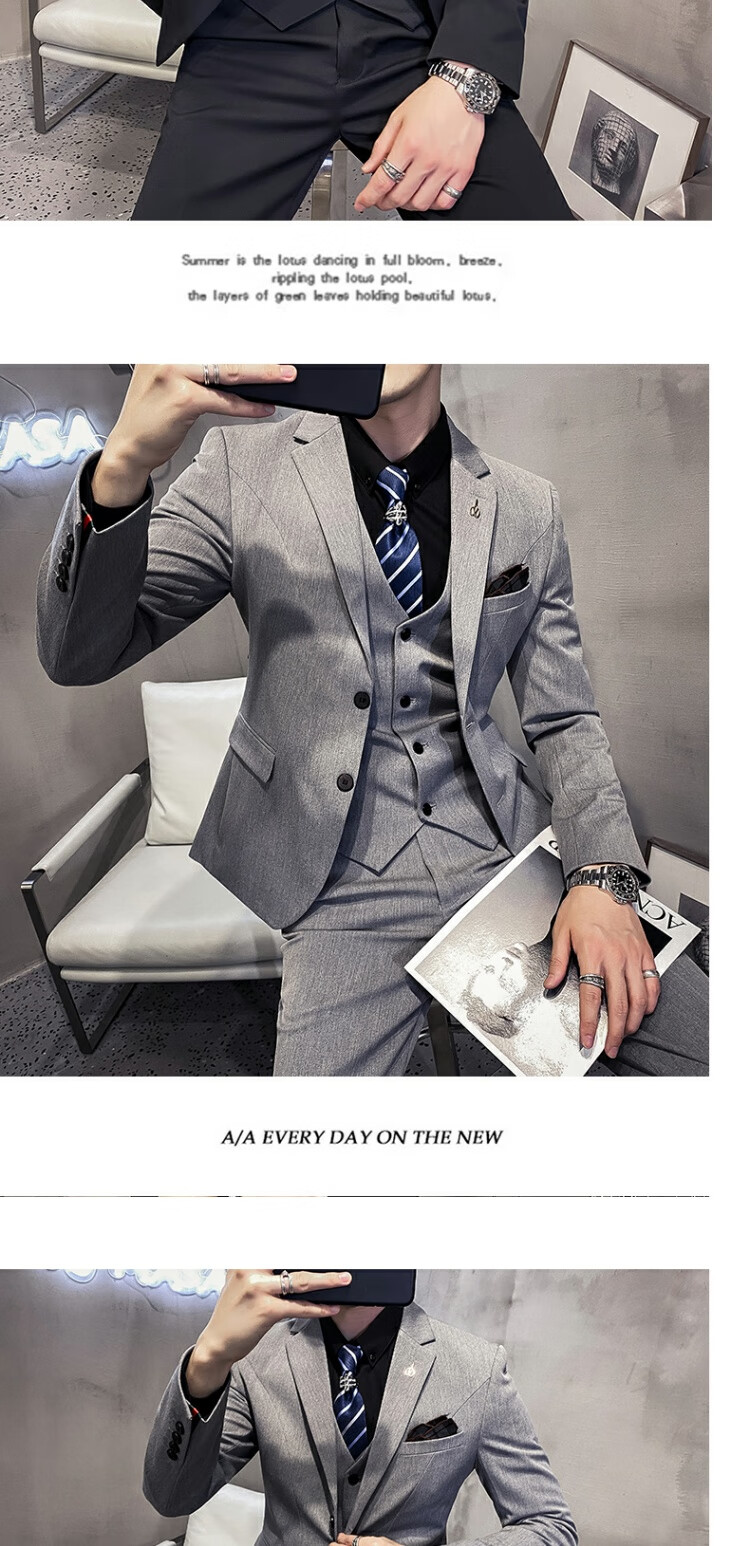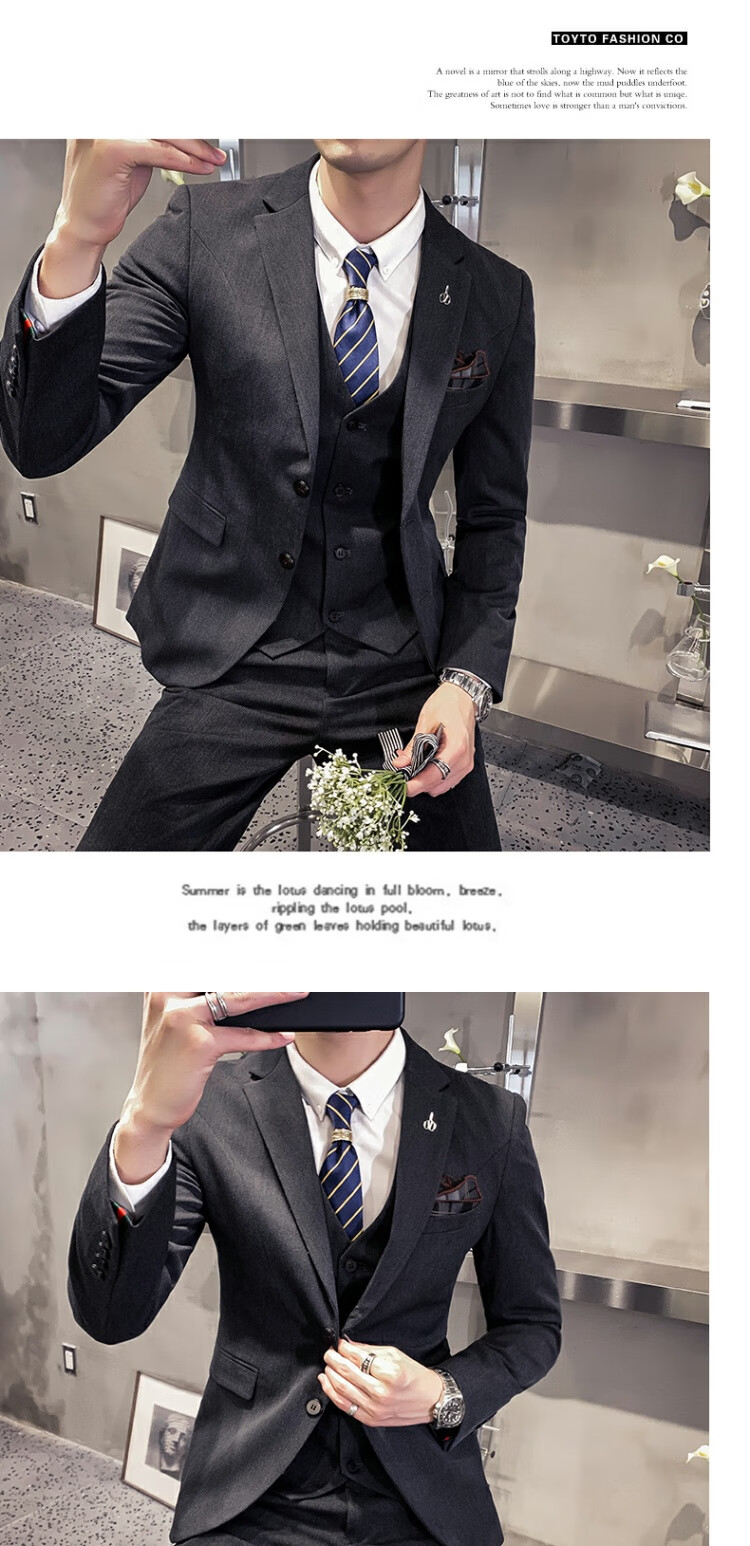 DK brand men's suit suit men's autumn business casual suit trend slim British style fashion three-piece suit light gray suit + trousers M