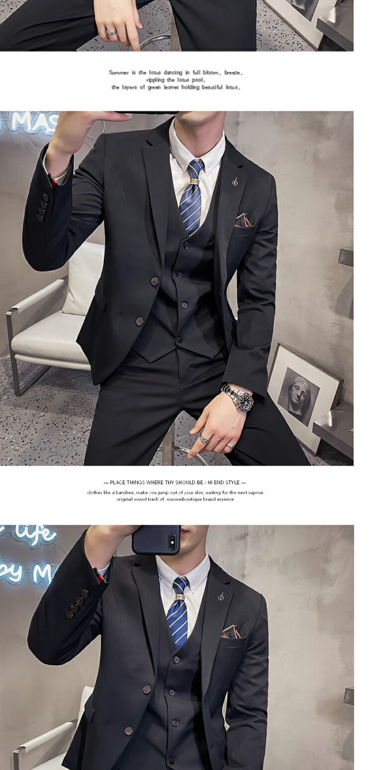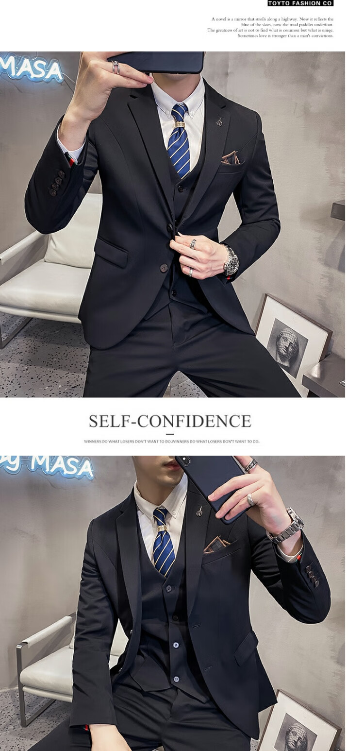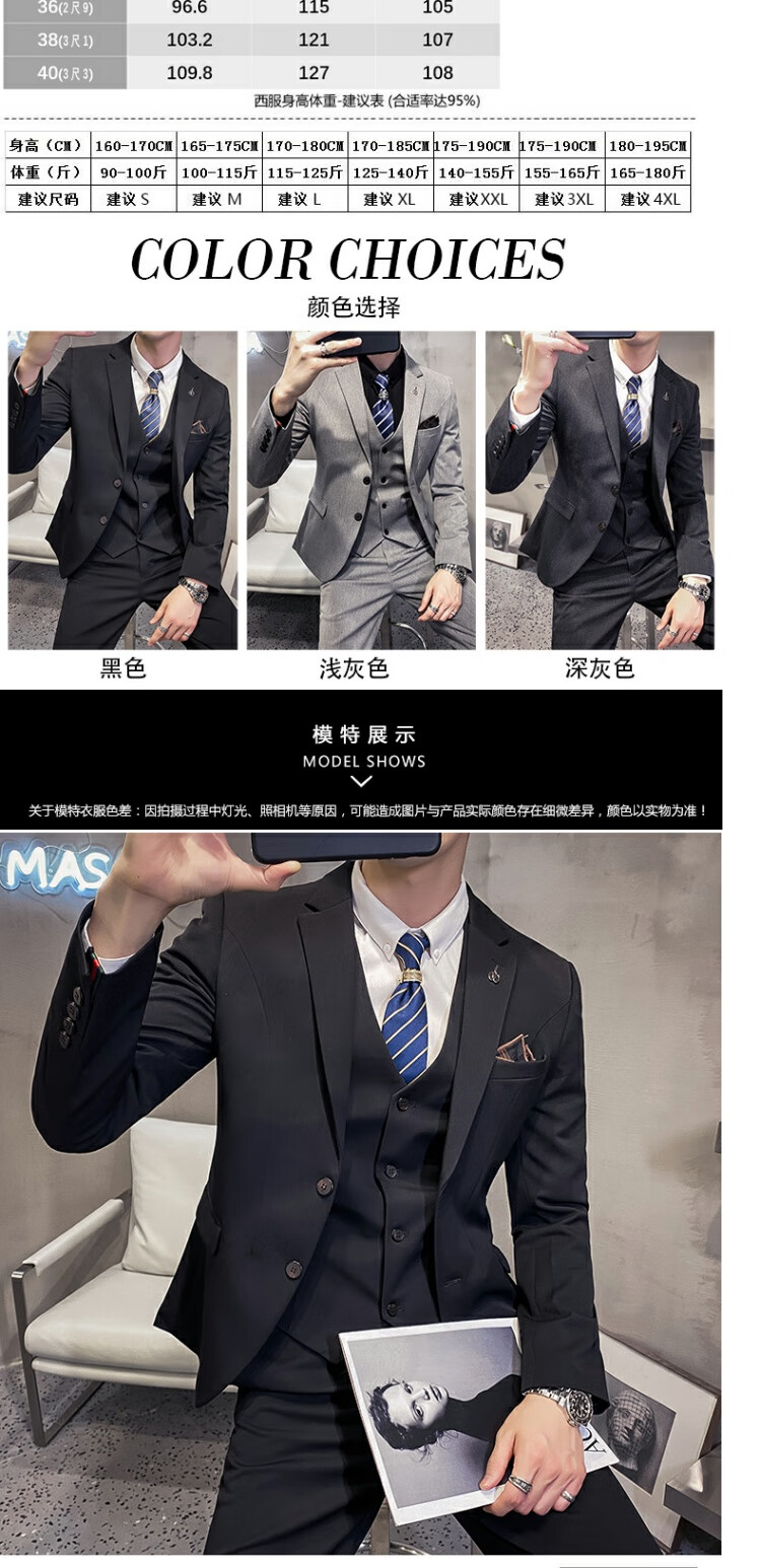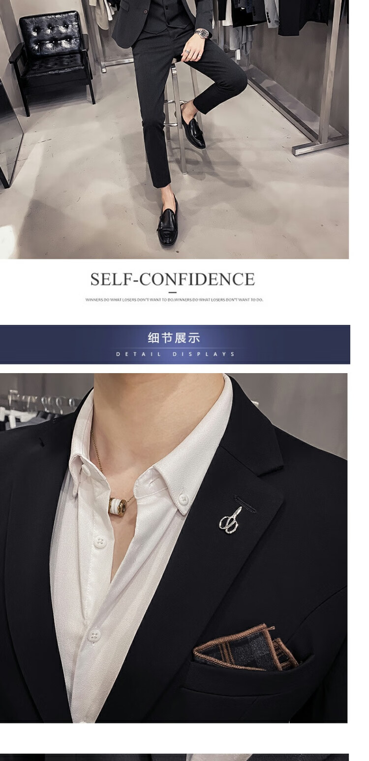 DK brand men's suit suit men's autumn business casual suit trend slim British style fashion three-piece suit light gray suit + trousers M