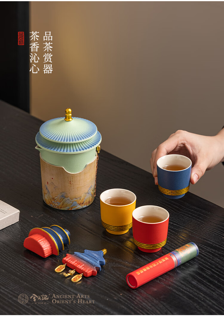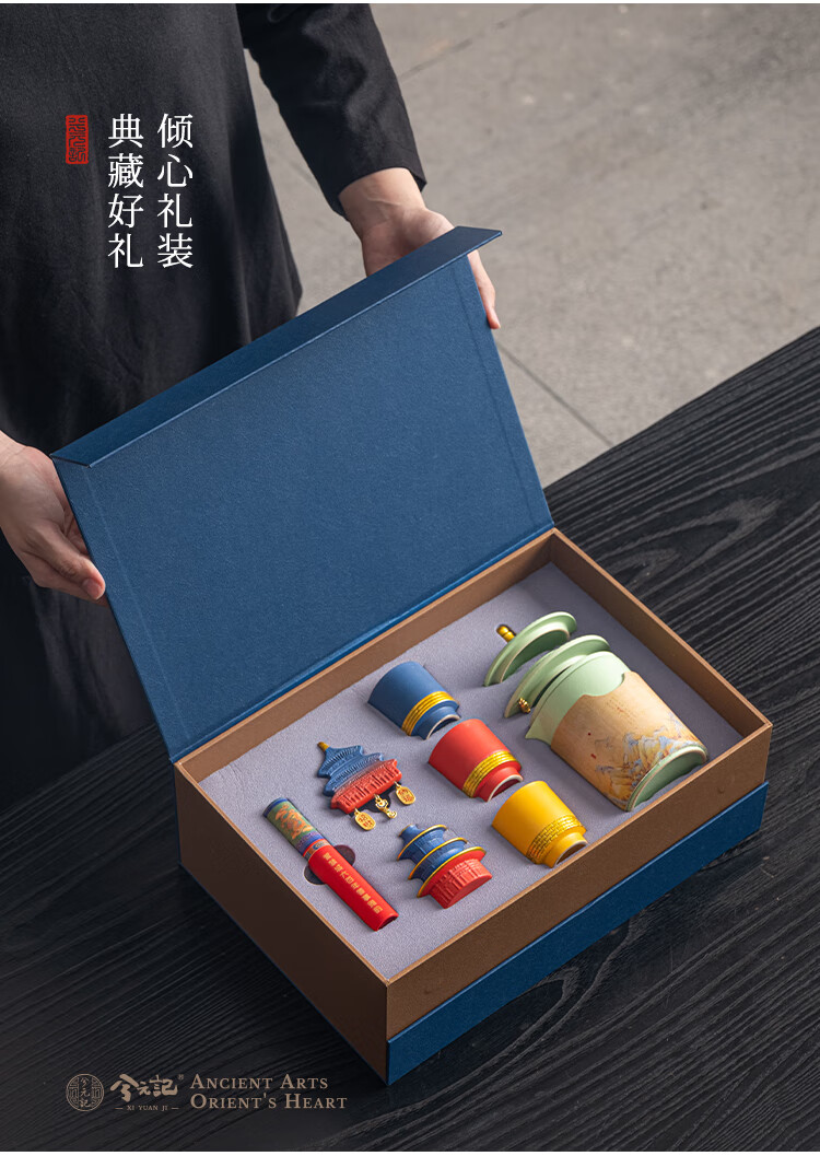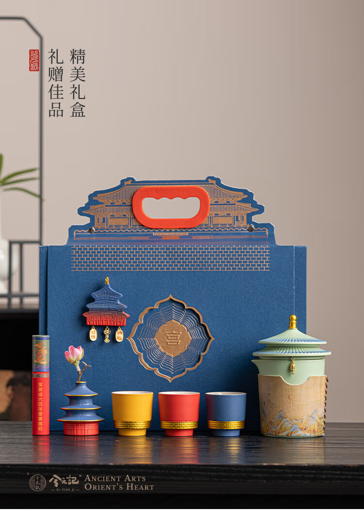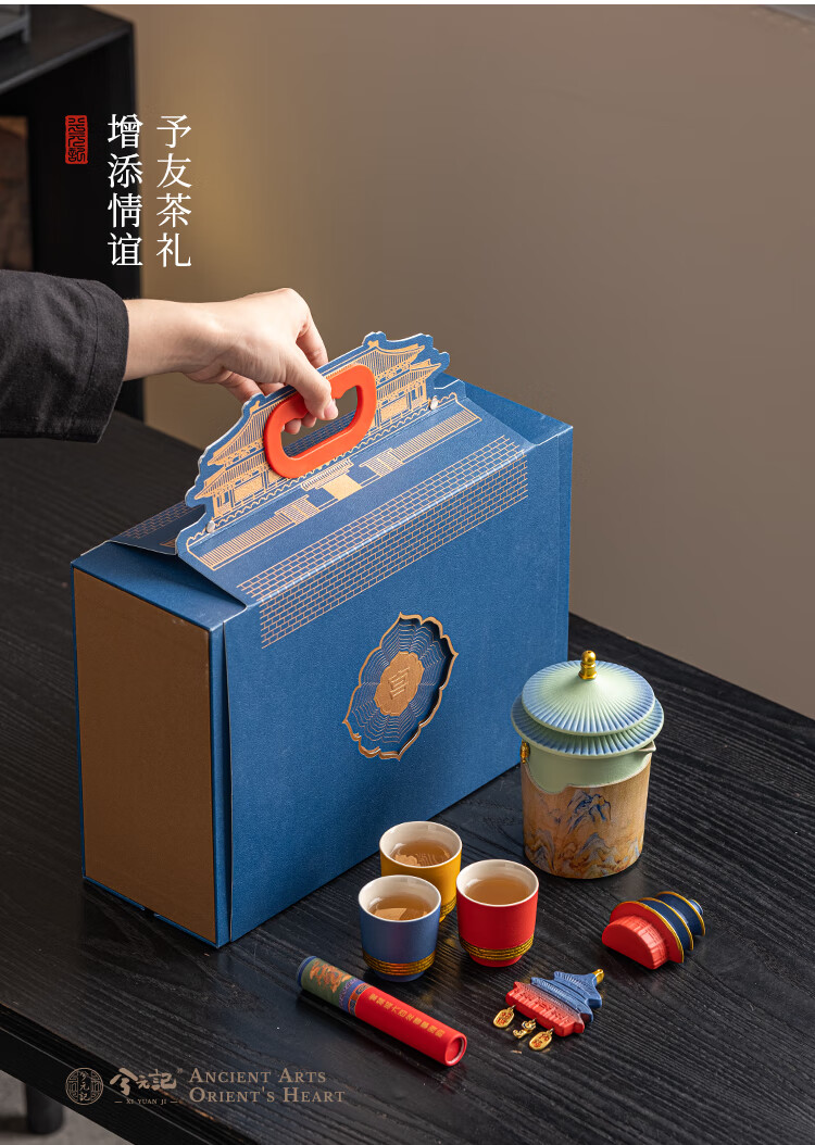 Xiyuanji Forbidden City Cultural and Creative Temple of Heaven tea set for men, fathers, elders, birthday gifts, customers and foreigners commemorative souvenirs. My tea set 7-piece Forbidden City Jiangshan Shaohe gift box set-Yao Qinglu