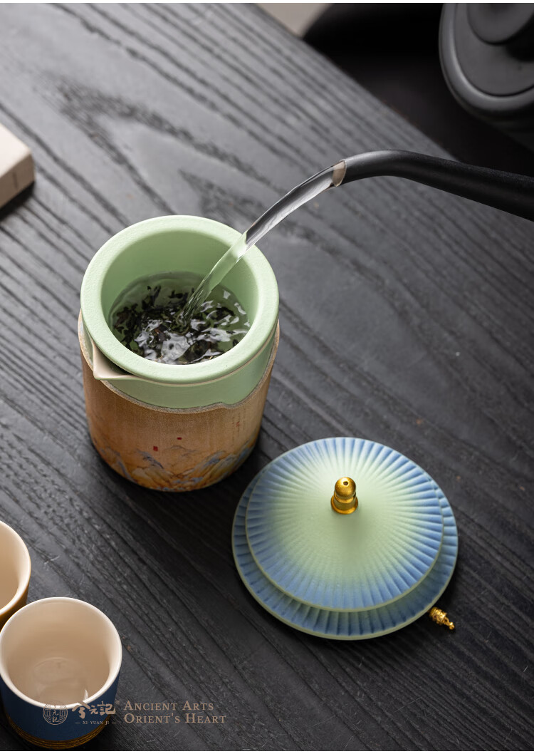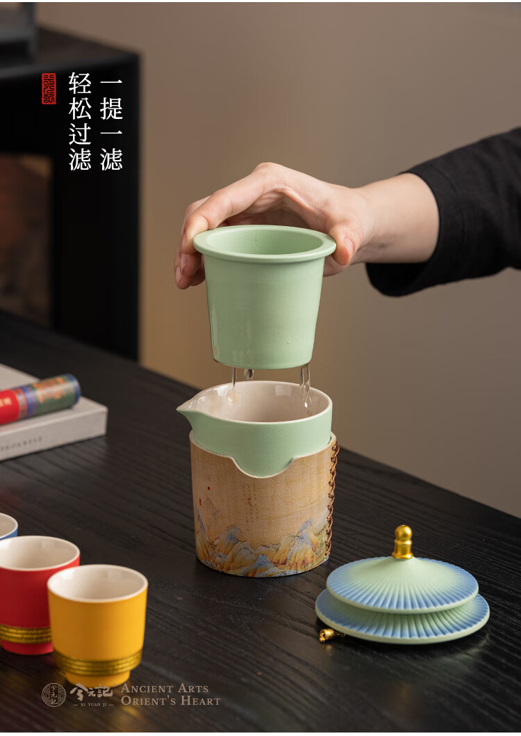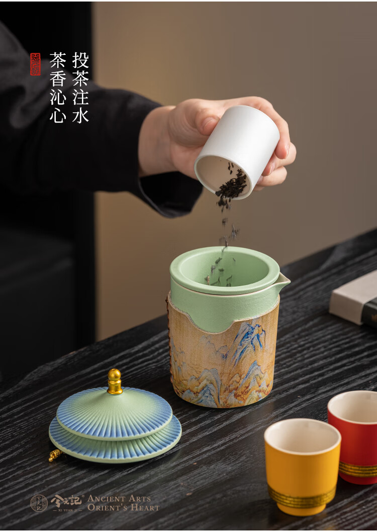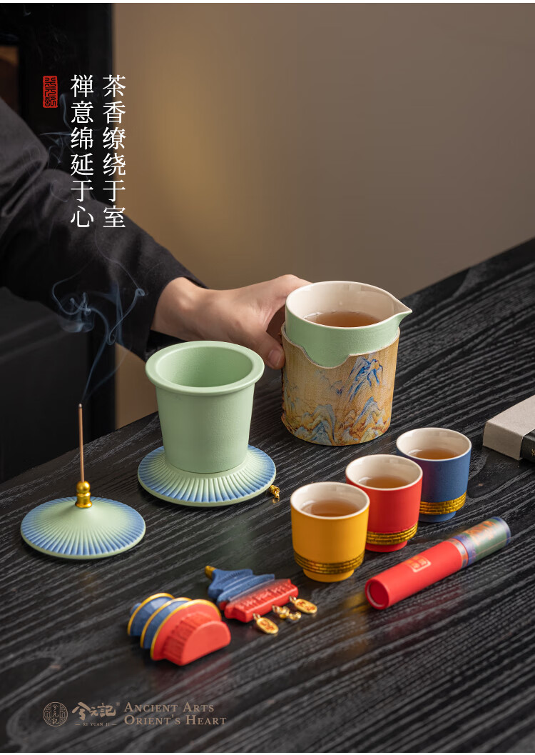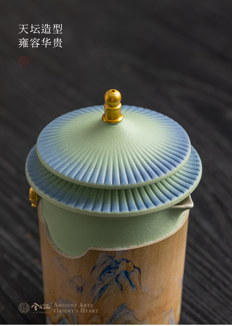 Xiyuanji Forbidden City Cultural and Creative Temple of Heaven tea set for men, fathers, elders, birthday gifts, customers and foreigners commemorative souvenirs. My tea set 7-piece Forbidden City Jiangshan Shaohe gift box set-Yao Qinglu