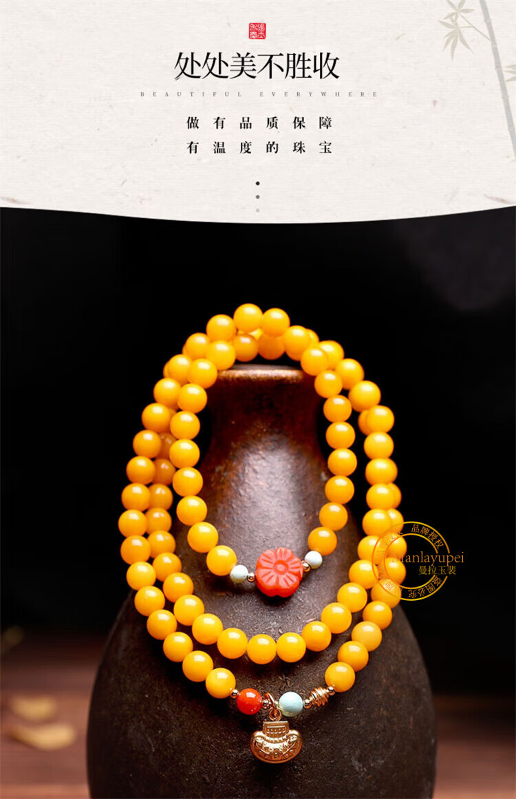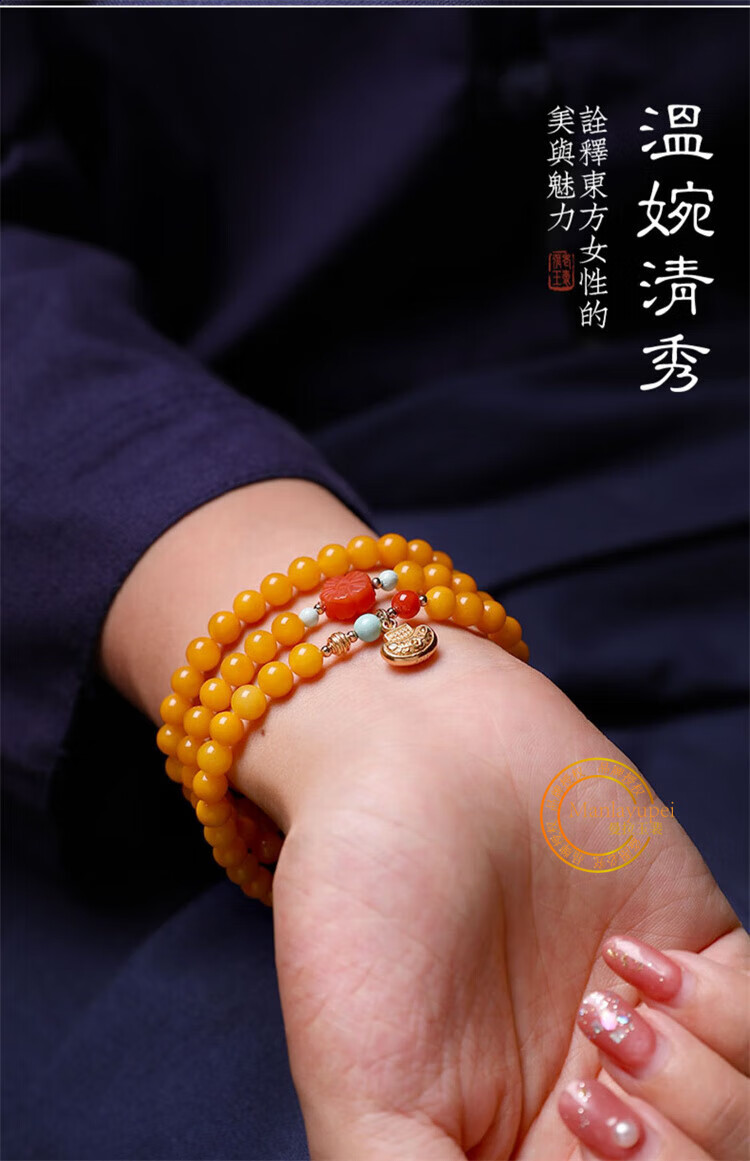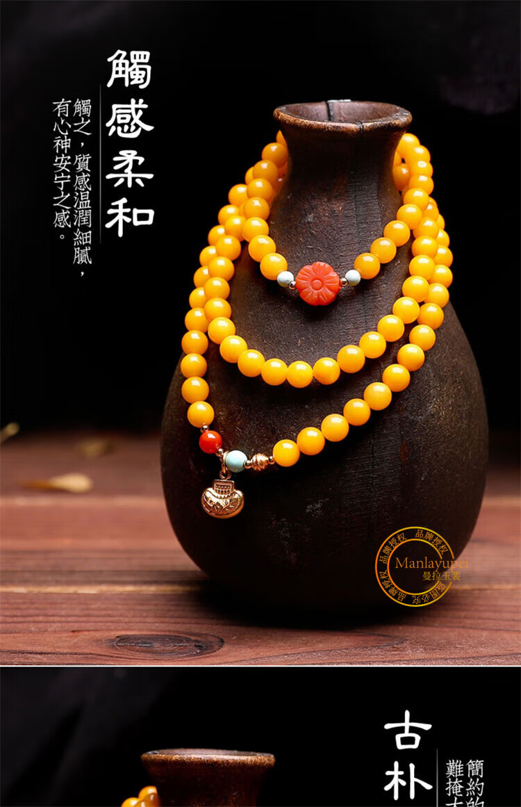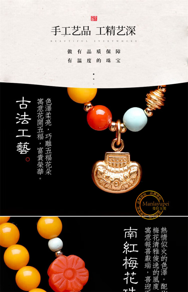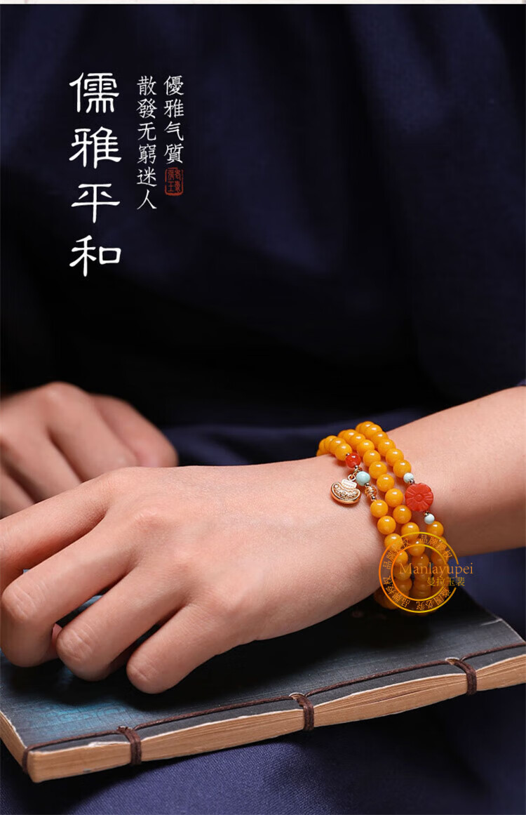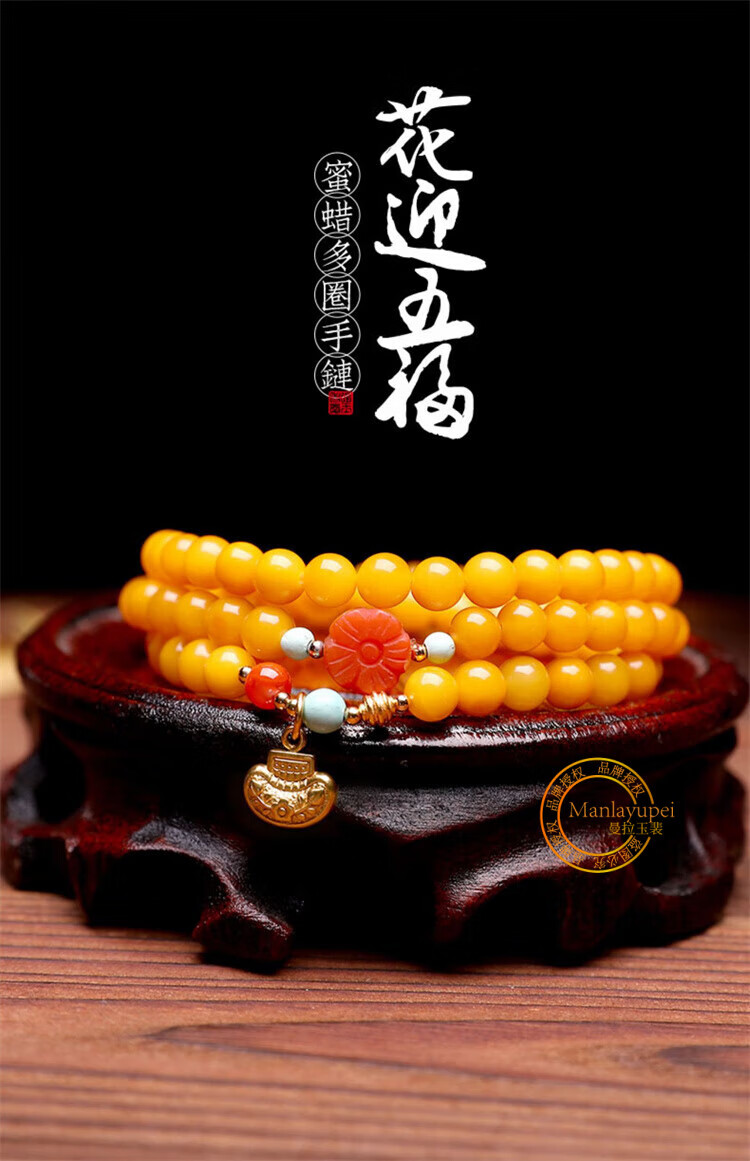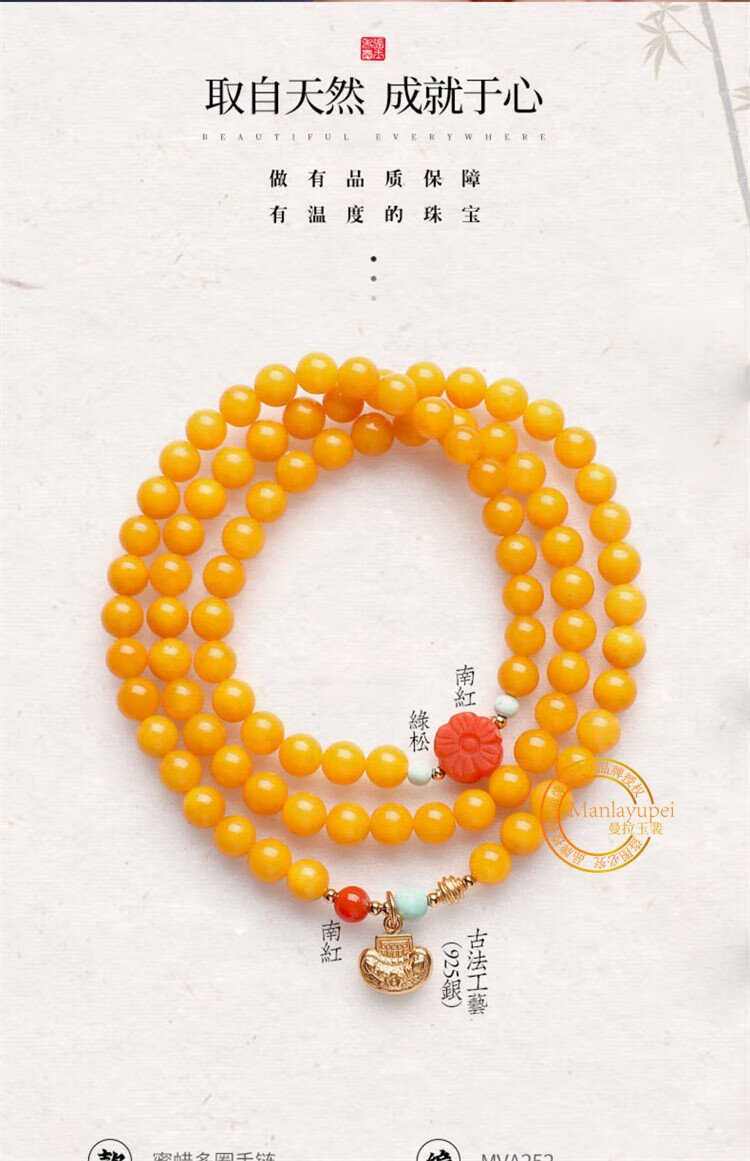 Manla Yupei natural beeswax multi-ring bracelet for women DIY turquoise jade 925 silver amber chicken fat yellow multi-treasure bracelet style 1