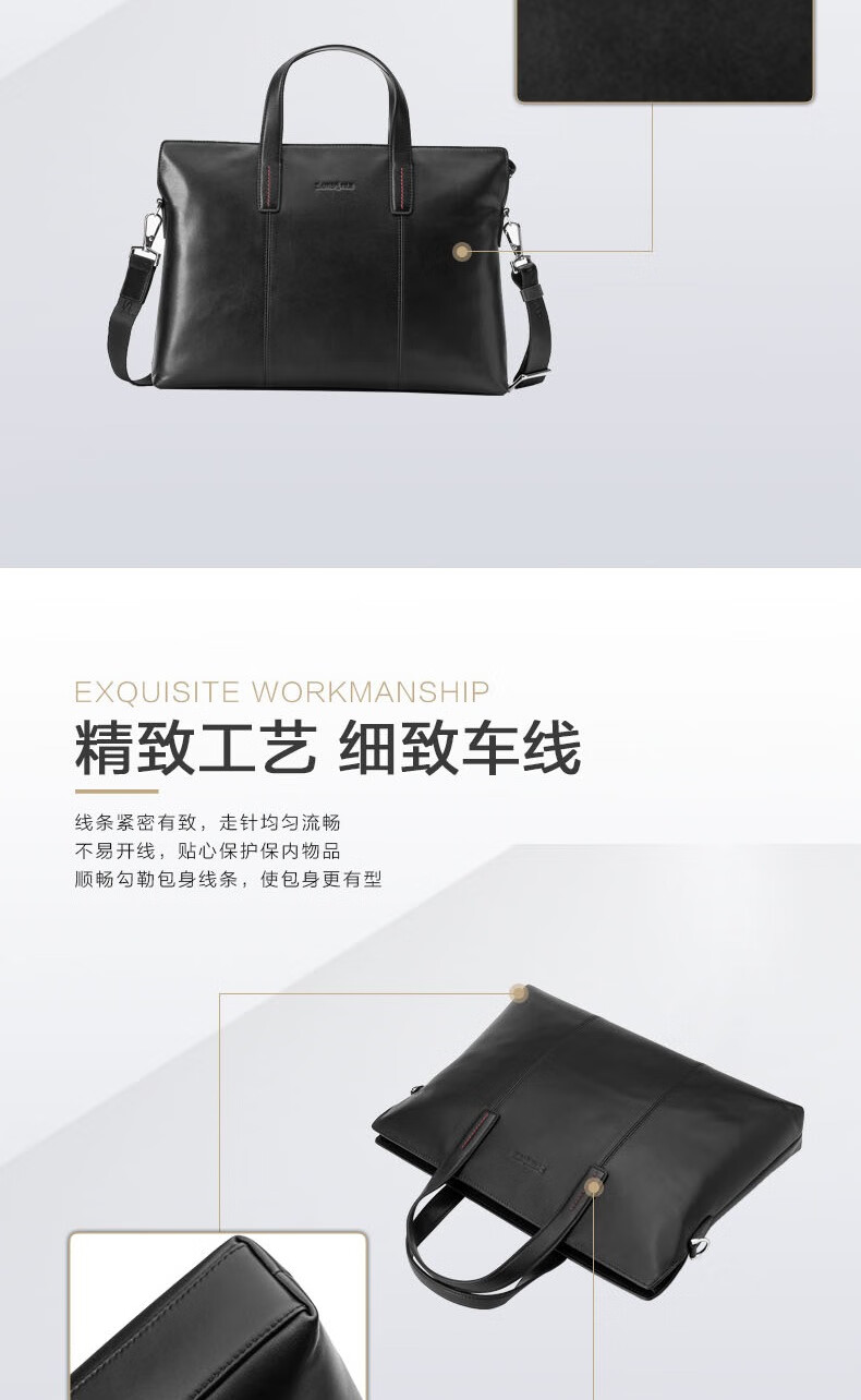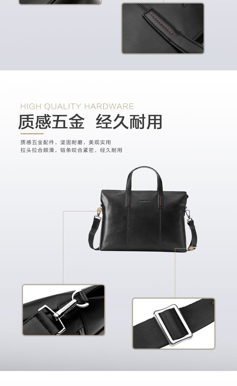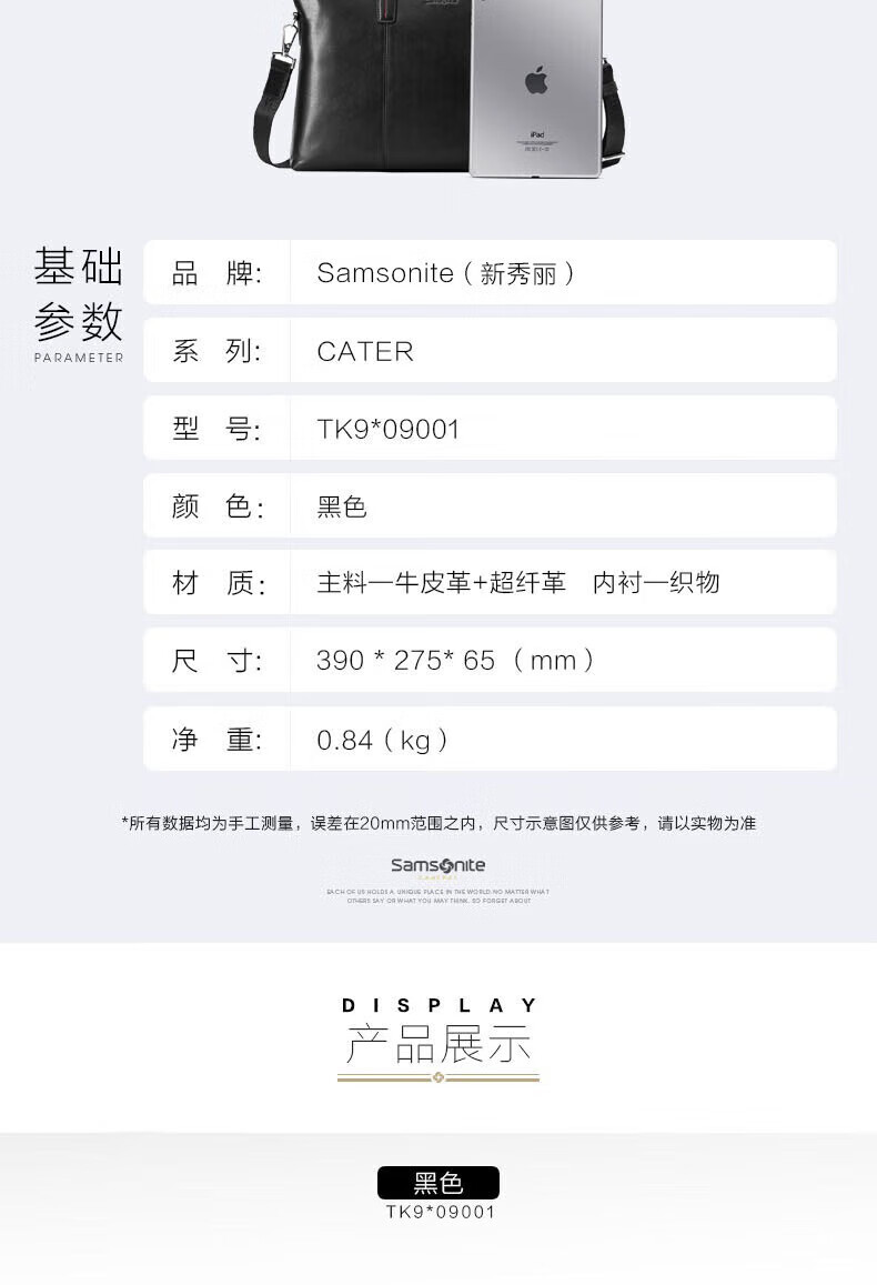 Samsonite JD Outlet Men's Handbag Computer Bag Casual Commuting Cow Leather Briefcase Birthday Gift TK9 BLACK 12.1-13 inches