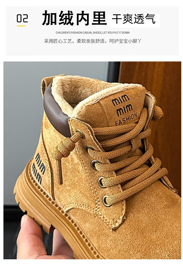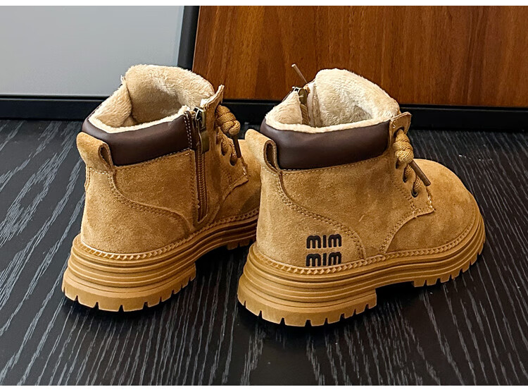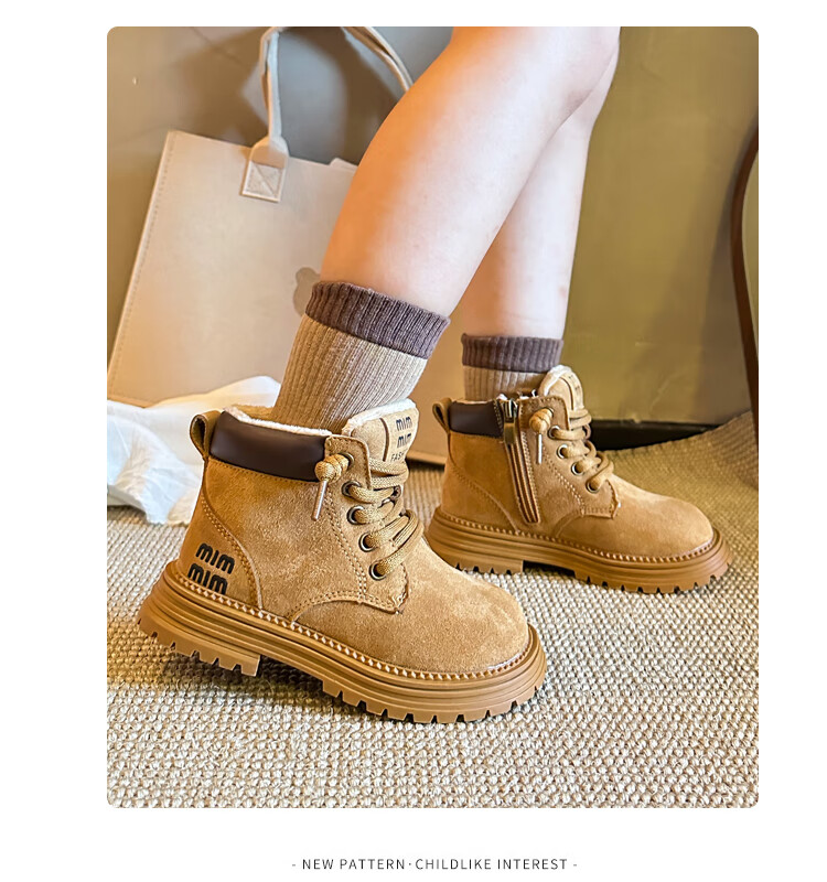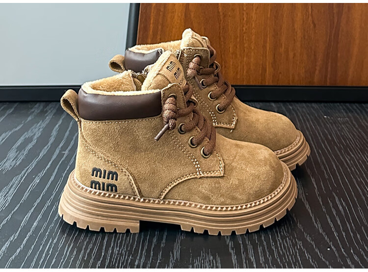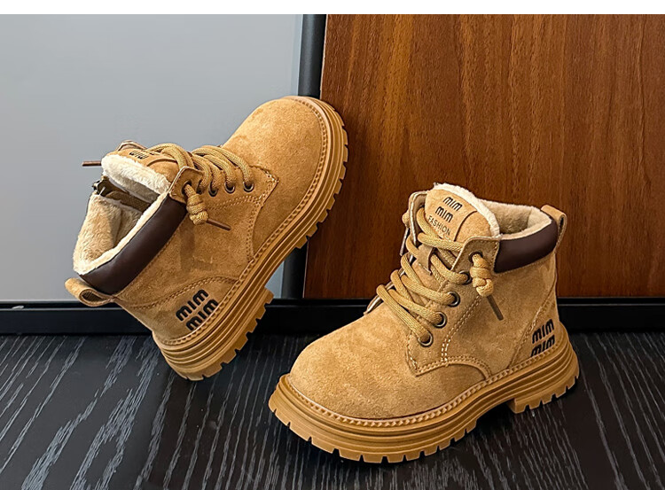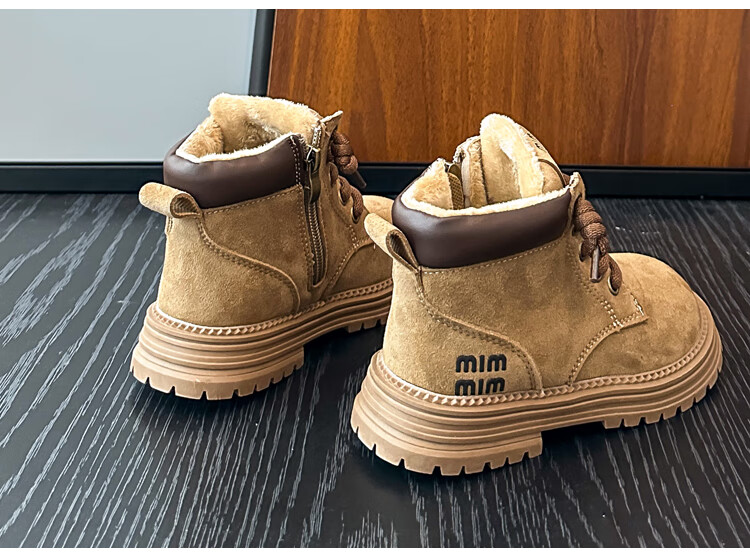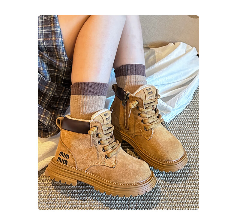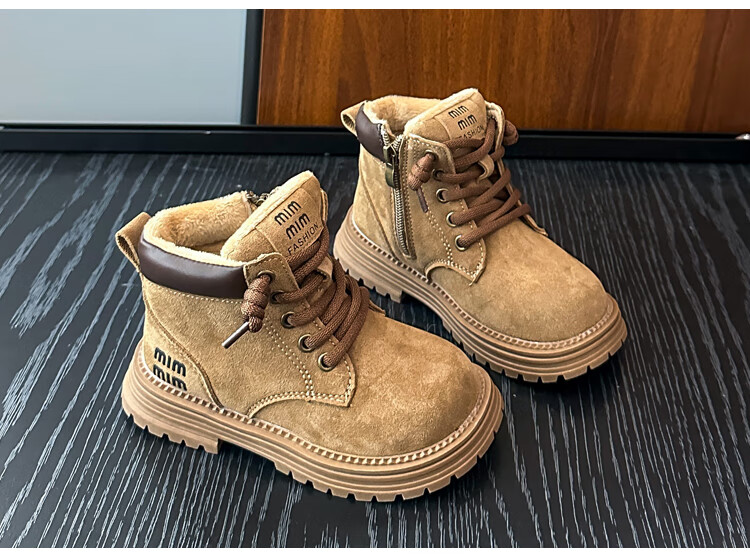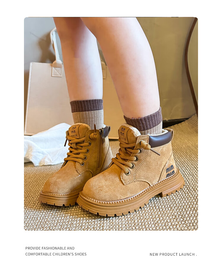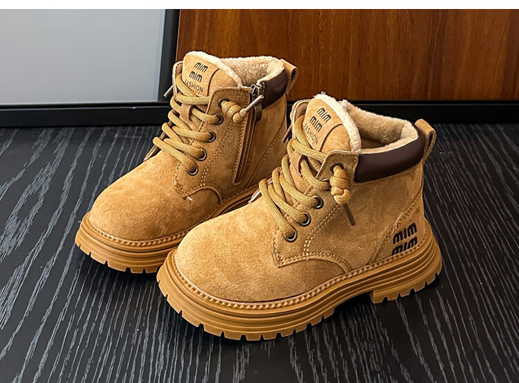 Girls' Single-Lined Martin Boots 2025 Autumn and Winter Short Boots Boys' Velvet Rhubarb Boots Children's Suede Cotton Boots Warm and Versatile Khaki 8107 Second Cotton 36 Inner Length 22.8cm