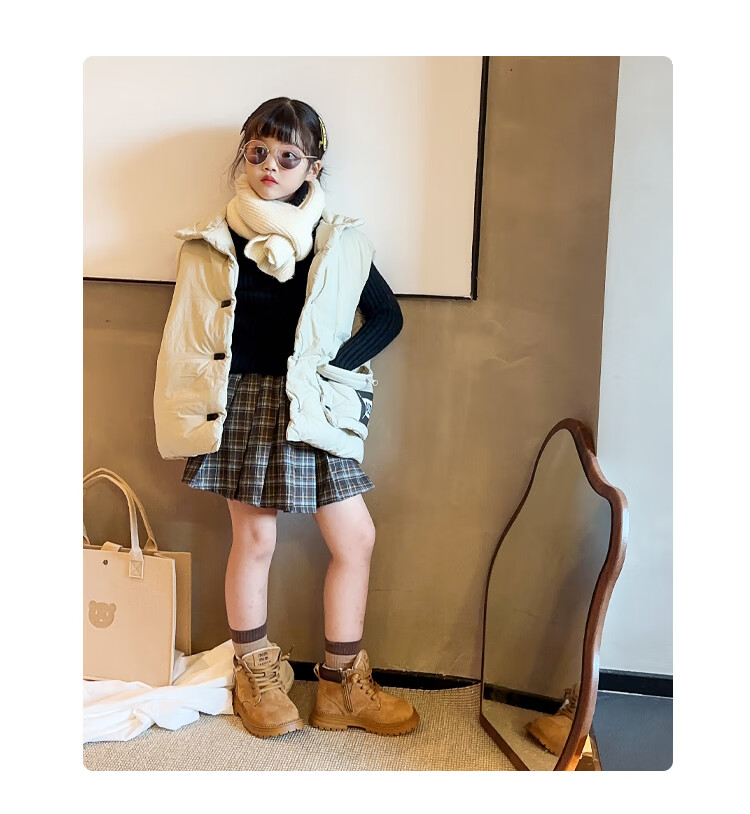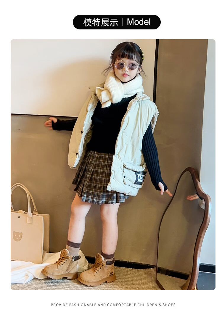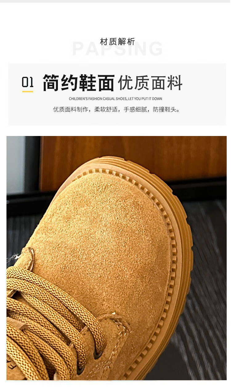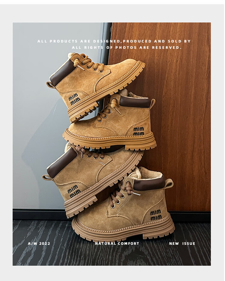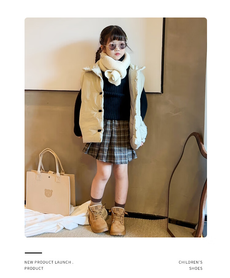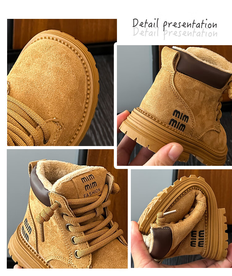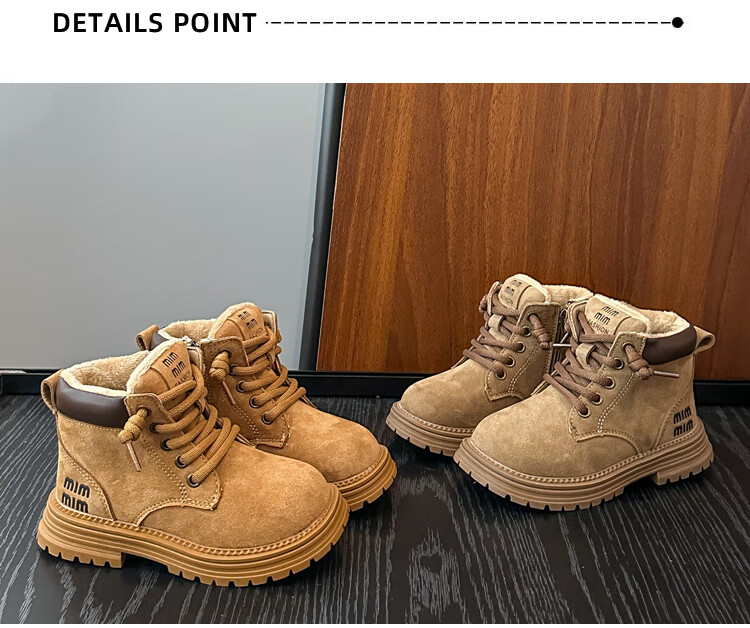 Girls' Single-Lined Martin Boots 2025 Autumn and Winter Short Boots Boys' Velvet Rhubarb Boots Children's Suede Cotton Boots Warm and Versatile Khaki 8107 Second Cotton 36 Inner Length 22.8cm