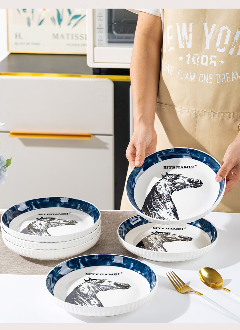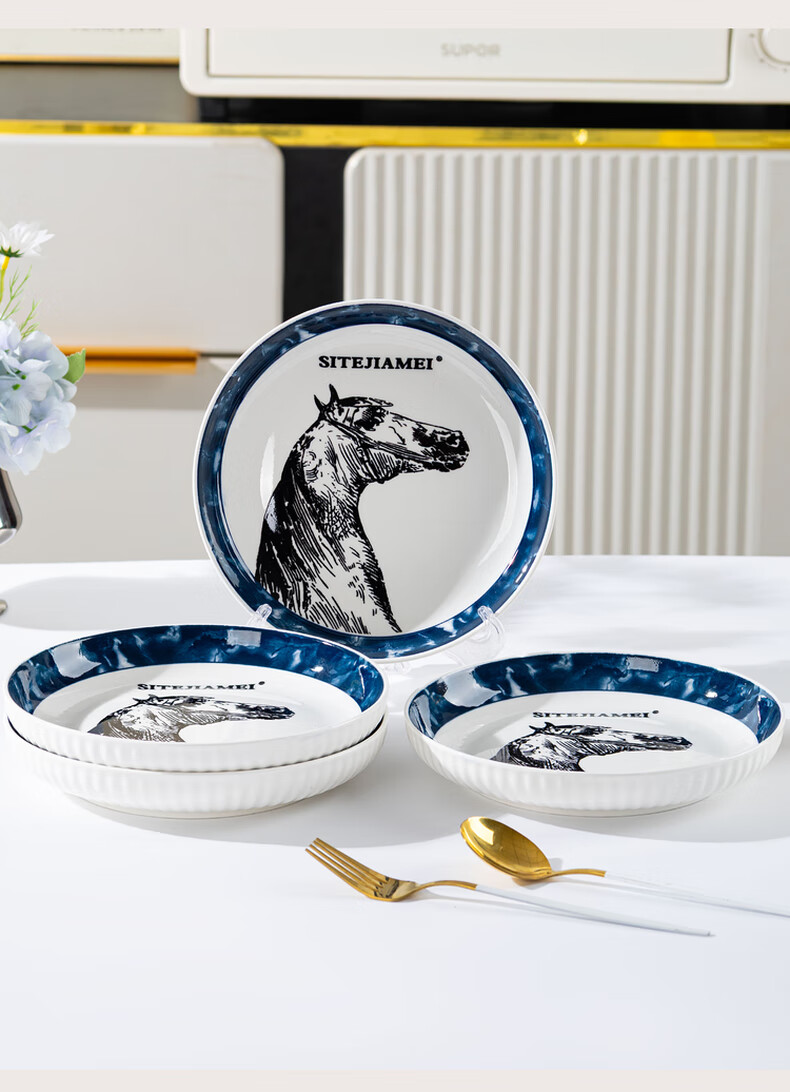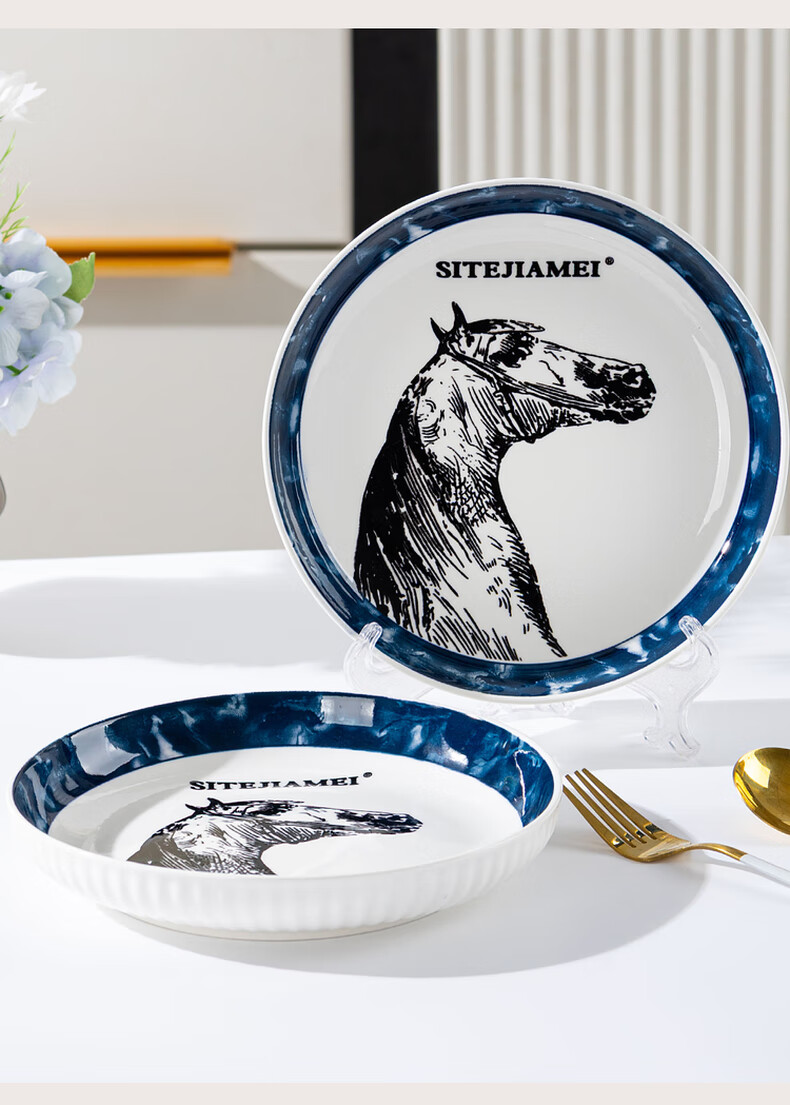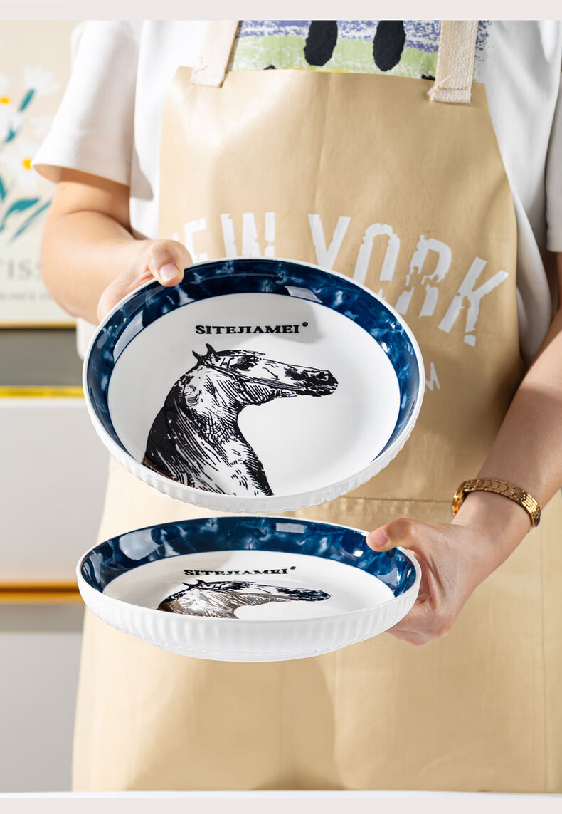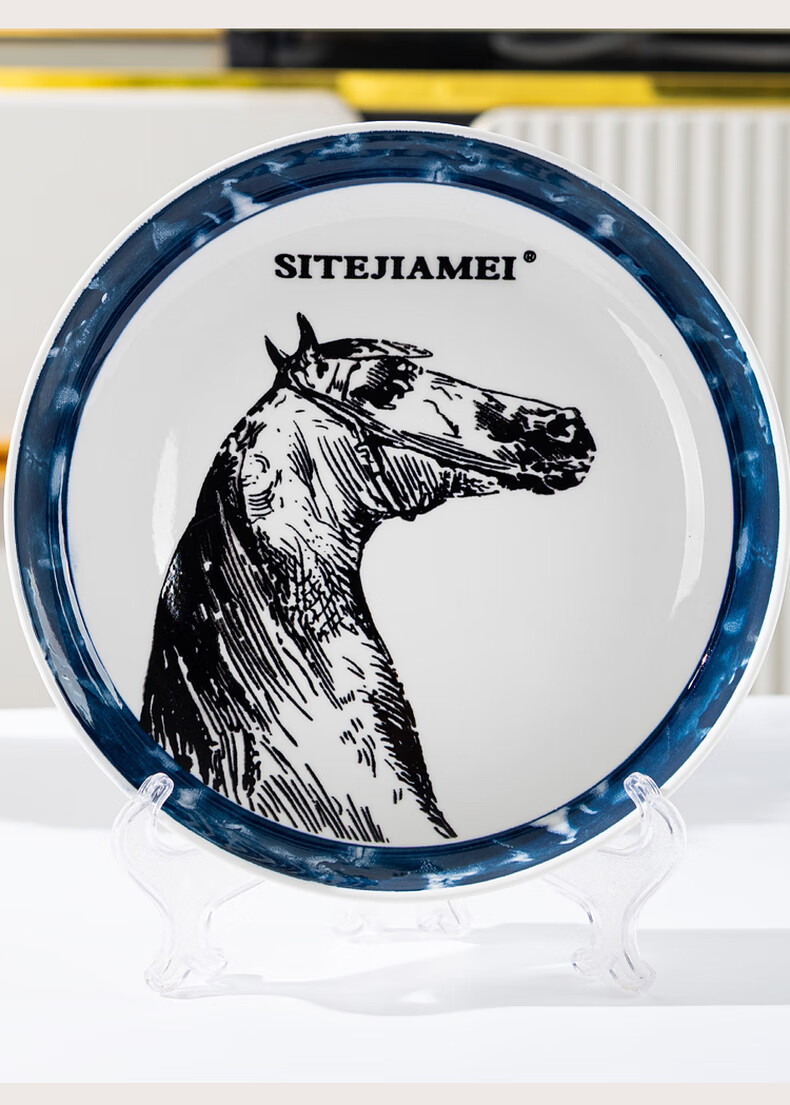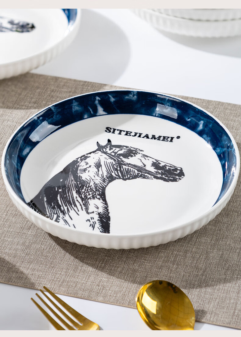 8-inch ceramic plate, home creative dish plate, high-looking cooking plate, simple and versatile round plate, 1 piece of 8-inch zebra deep dish