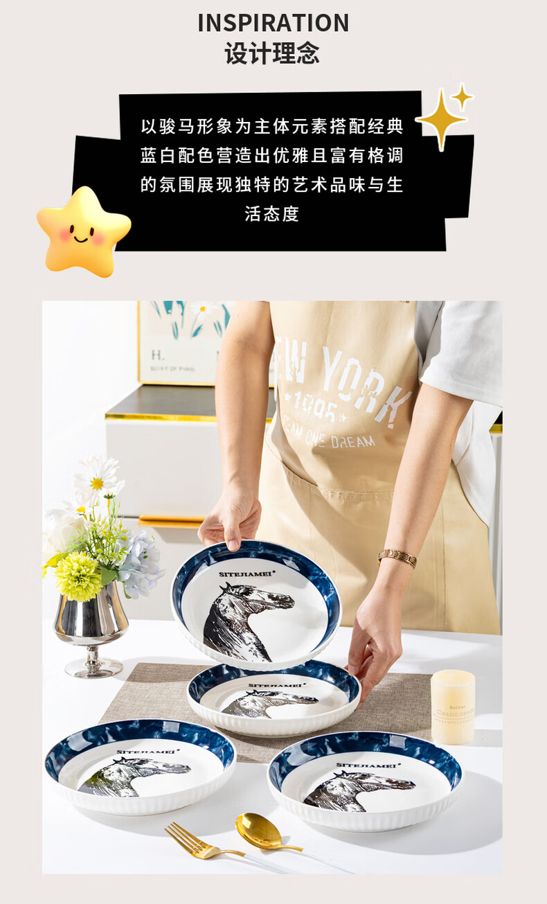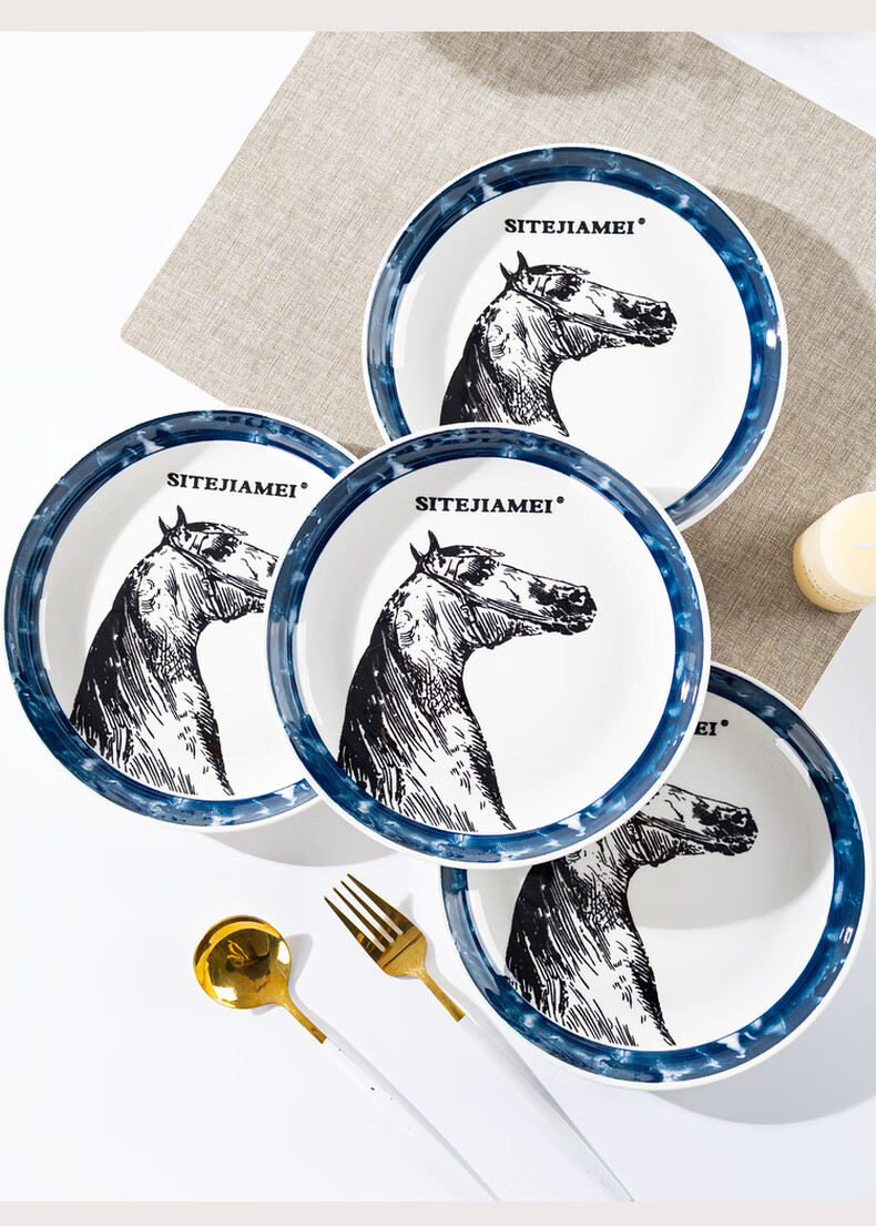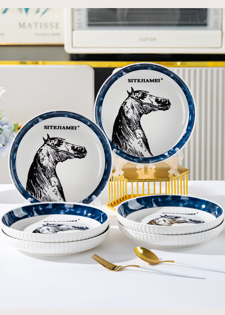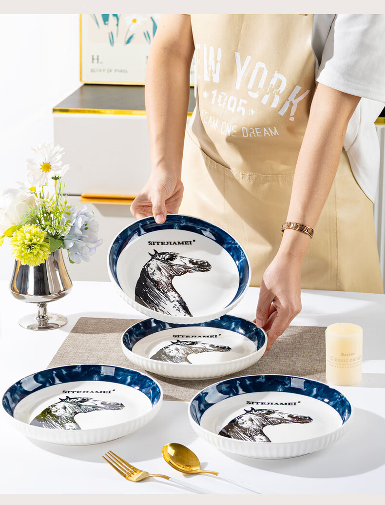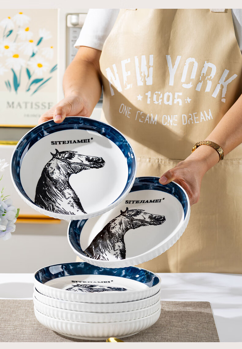 8-inch ceramic plate, home creative dish plate, high-looking cooking plate, simple and versatile round plate, 1 piece of 8-inch zebra deep dish