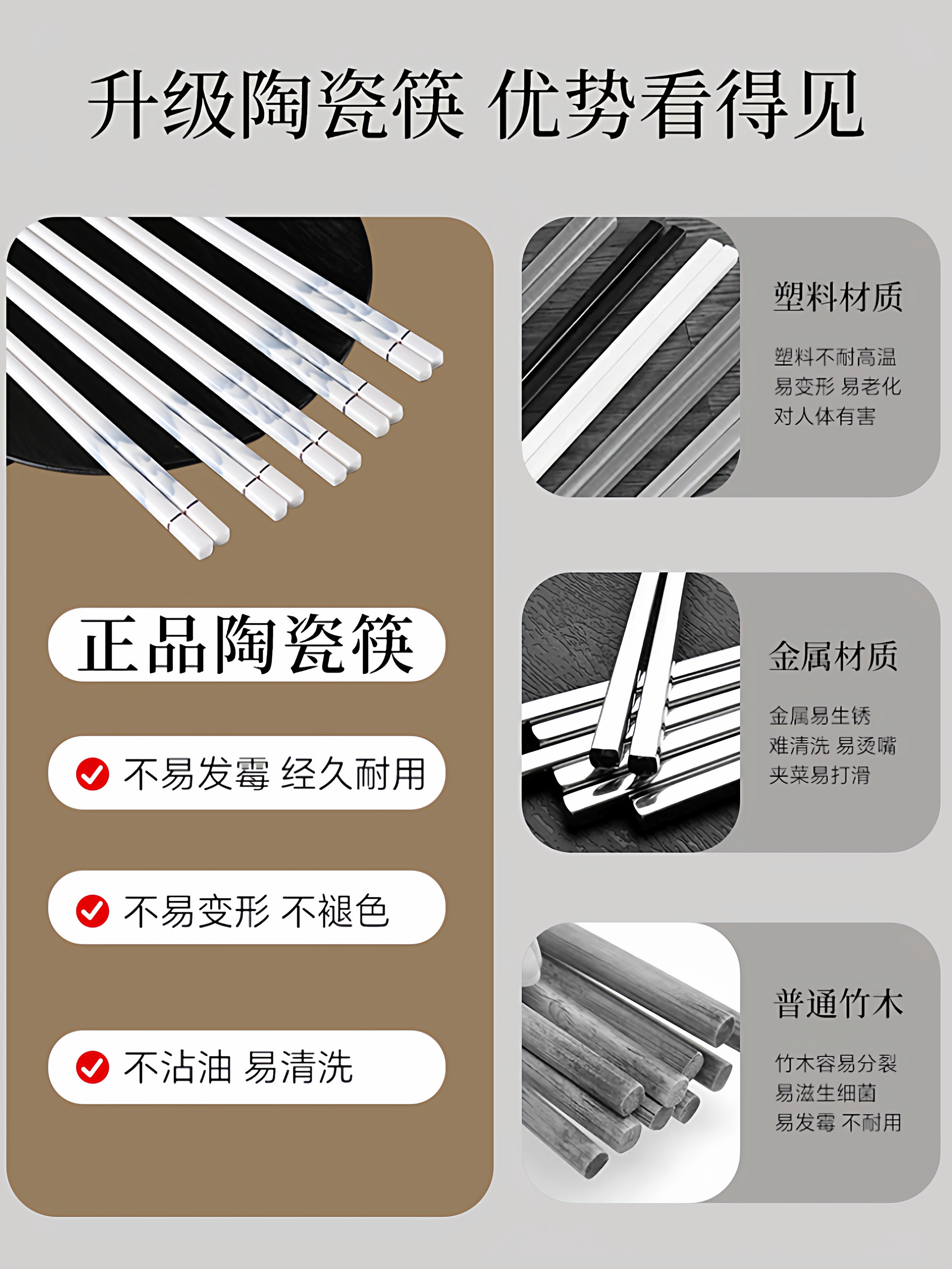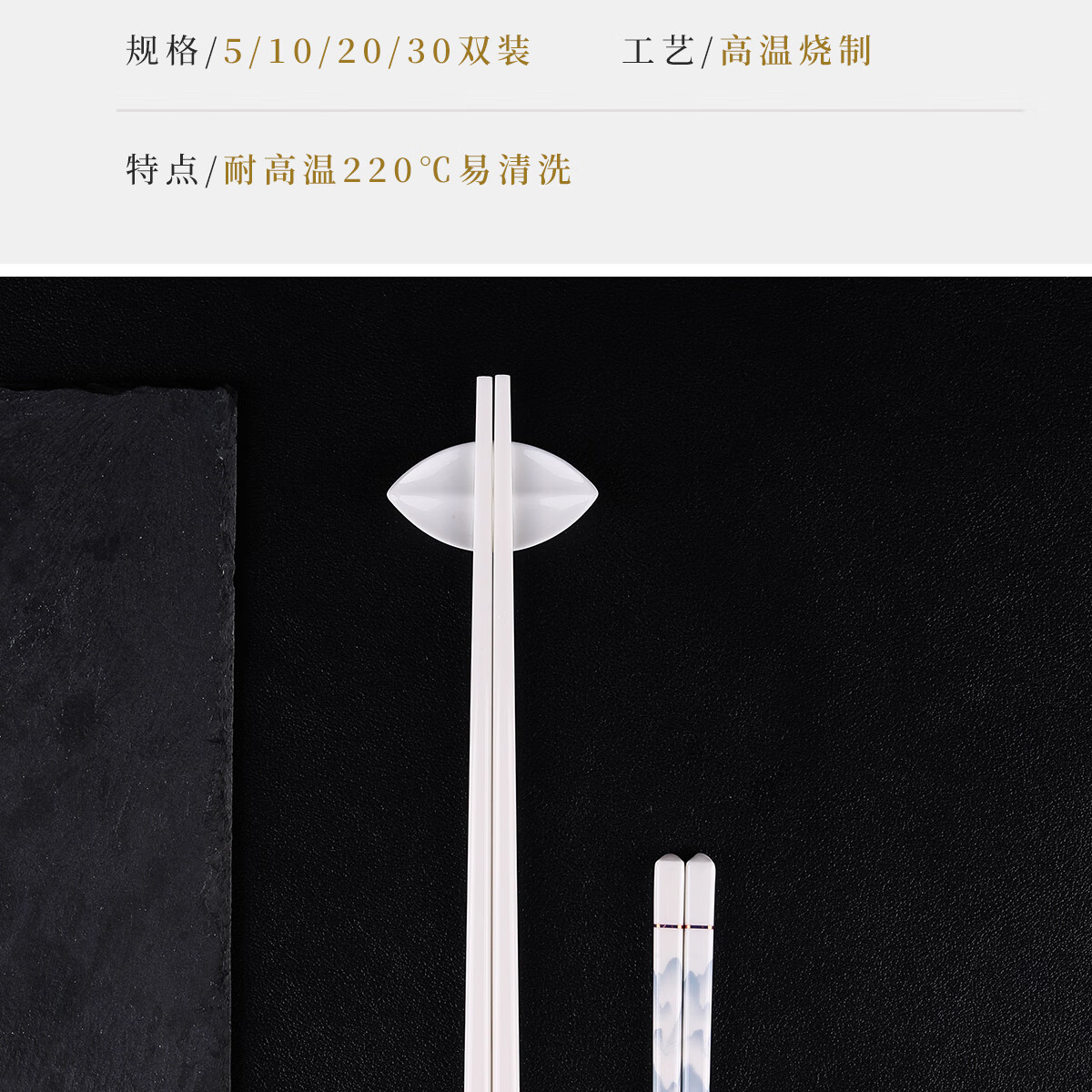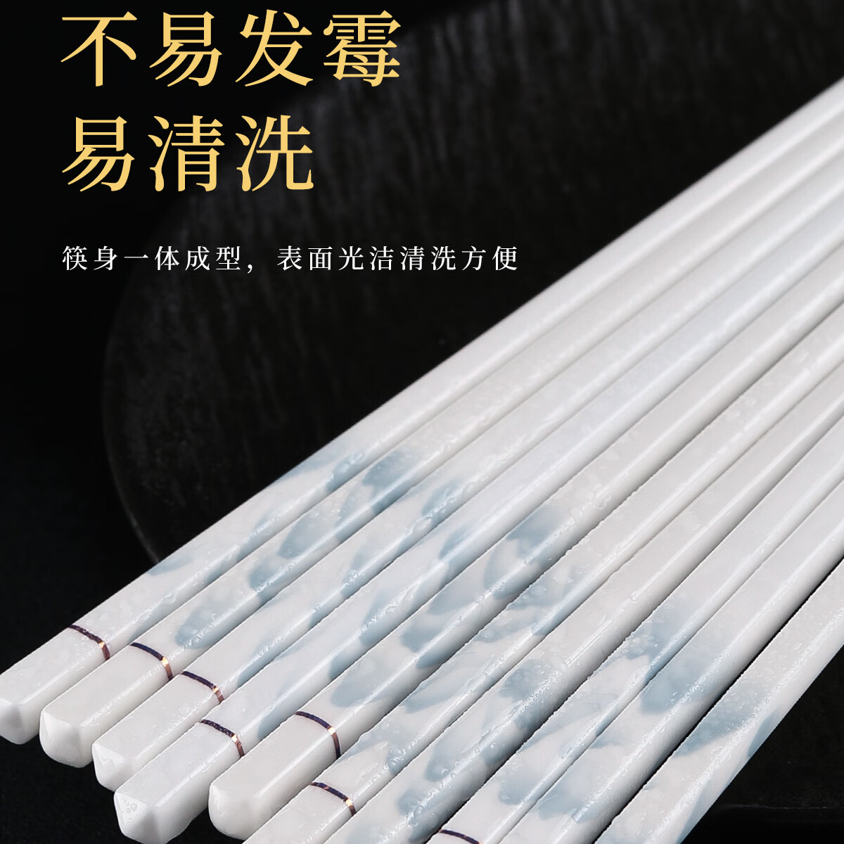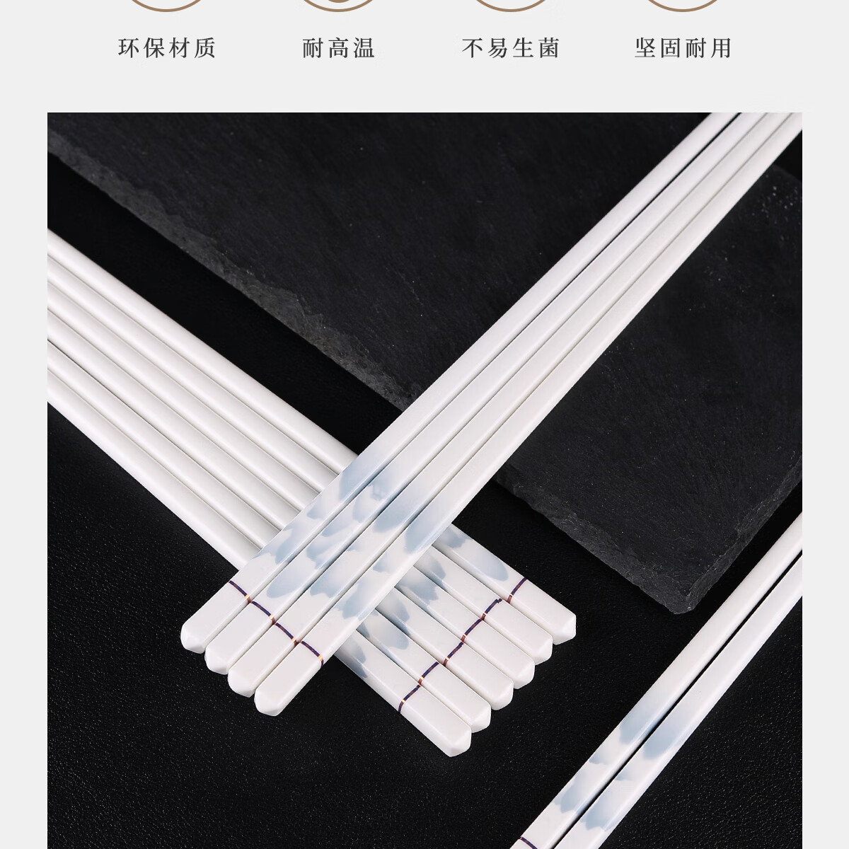 陶瓷筷子家用抗菌防霉防滑送礼高档环保易清洗骨瓷筷耐高温不变形 国风陶瓷筷子10双