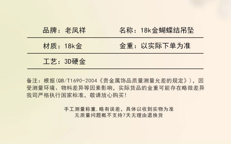 Lao Fengxiang 18K bow pendant for women, fashionable and versatile necklace jewelry, Valentine's Day birthday gift for girlfriend and wife 18K bow pendant, about 0.1g