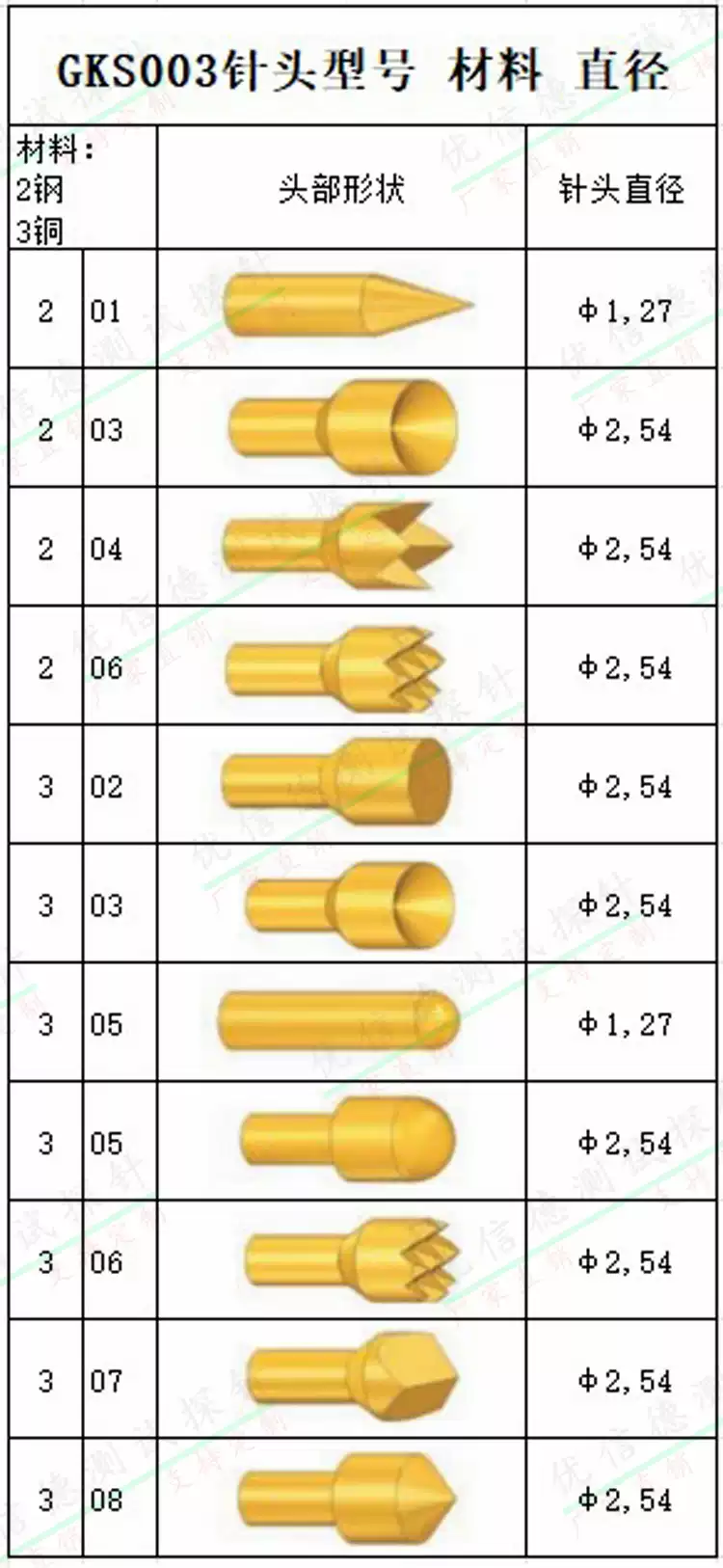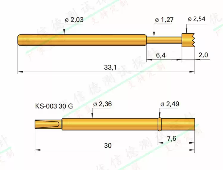 GKS003 series gold-plated probe ingun test needle 125mil British steel spring needle 2.0mm telescopic needle 003201127 50 pieces/pack A3000300g