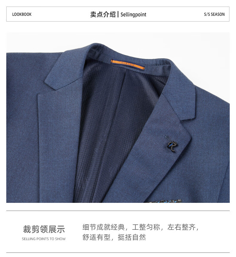 BOSS suit men's 2025 new spring and autumn high-end brand wedding groom slim single button split suit blue M 170 suitable for 100-125 Jin Jin equals 0.5 kg