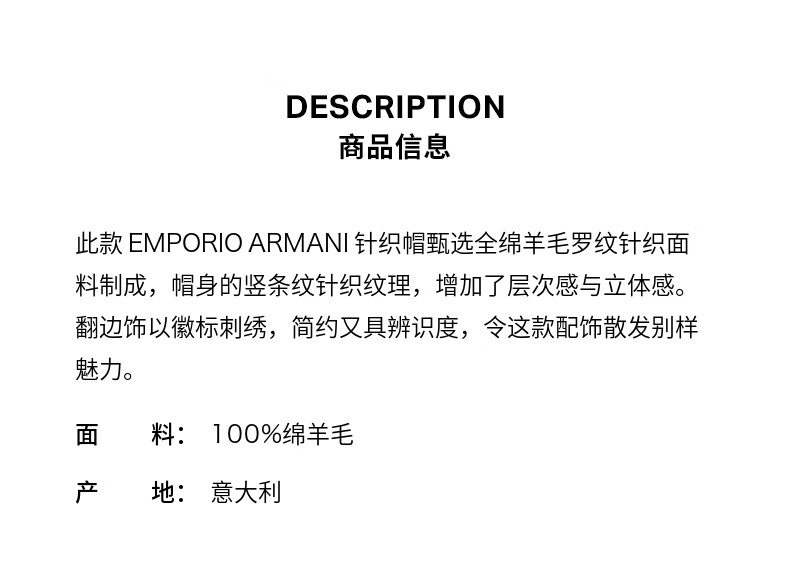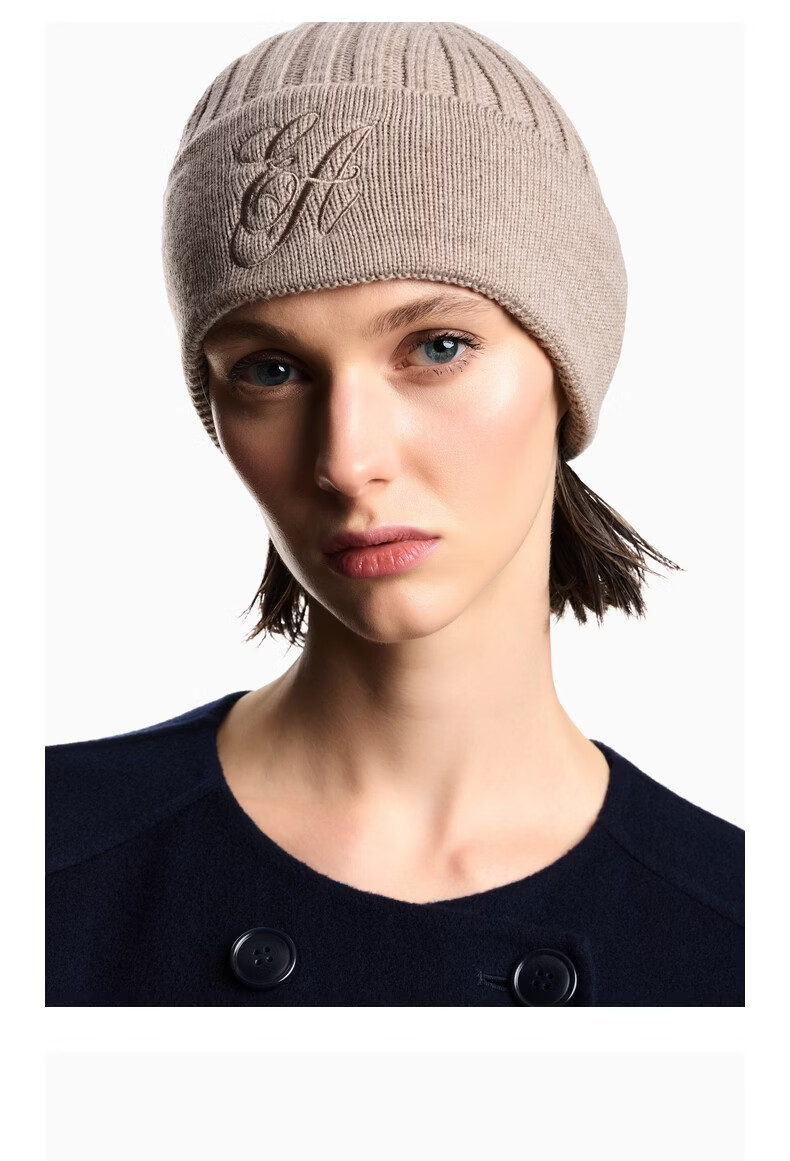 EMPORIO ARMANI/Armani official flagship New Year gift new women's sheep wool embroidered knitted beanie winter U6096-beige M