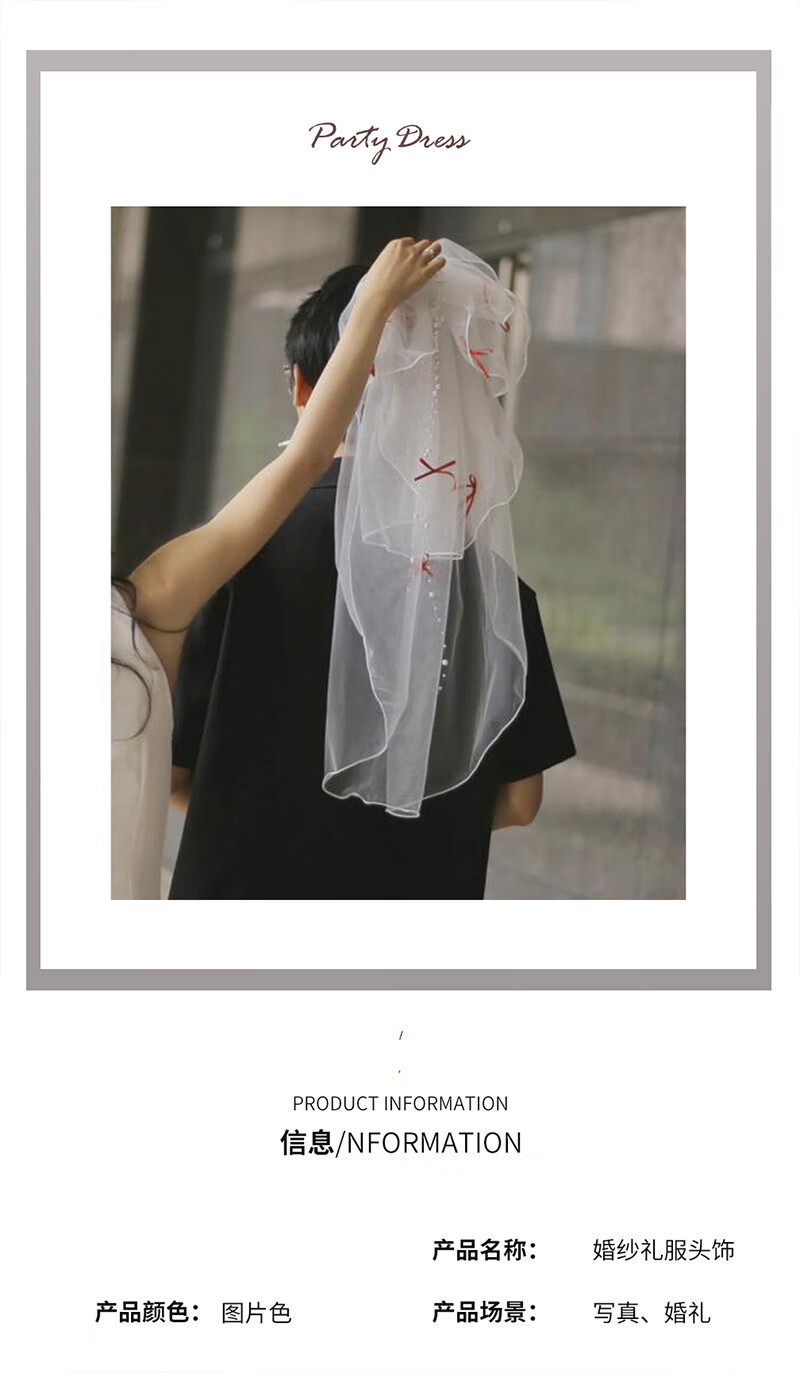 Bai Qixin's veil, proposal and certificate, bride's confession, photography, bow, photo props, adult ceremony, graduation season, red bow, pearl veil, hair comb