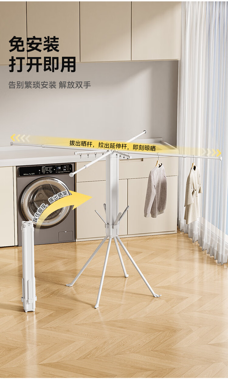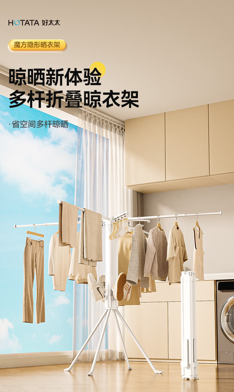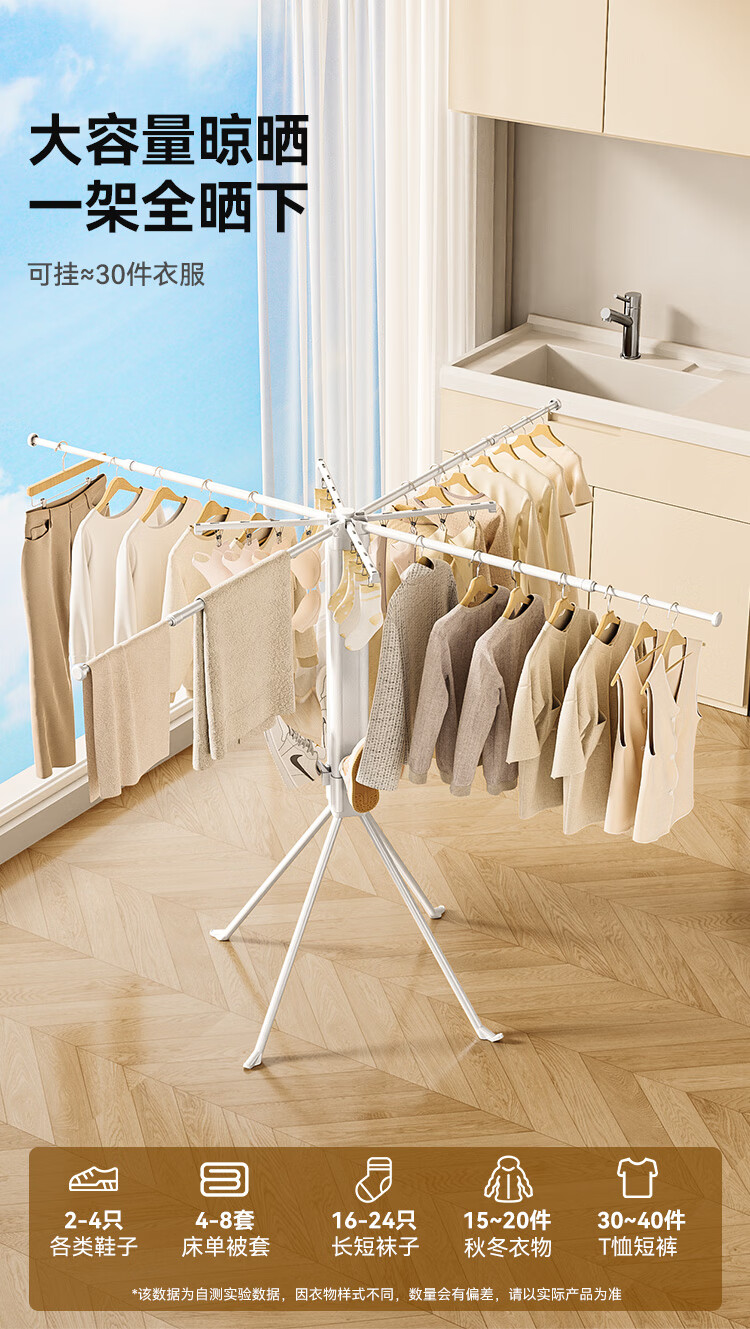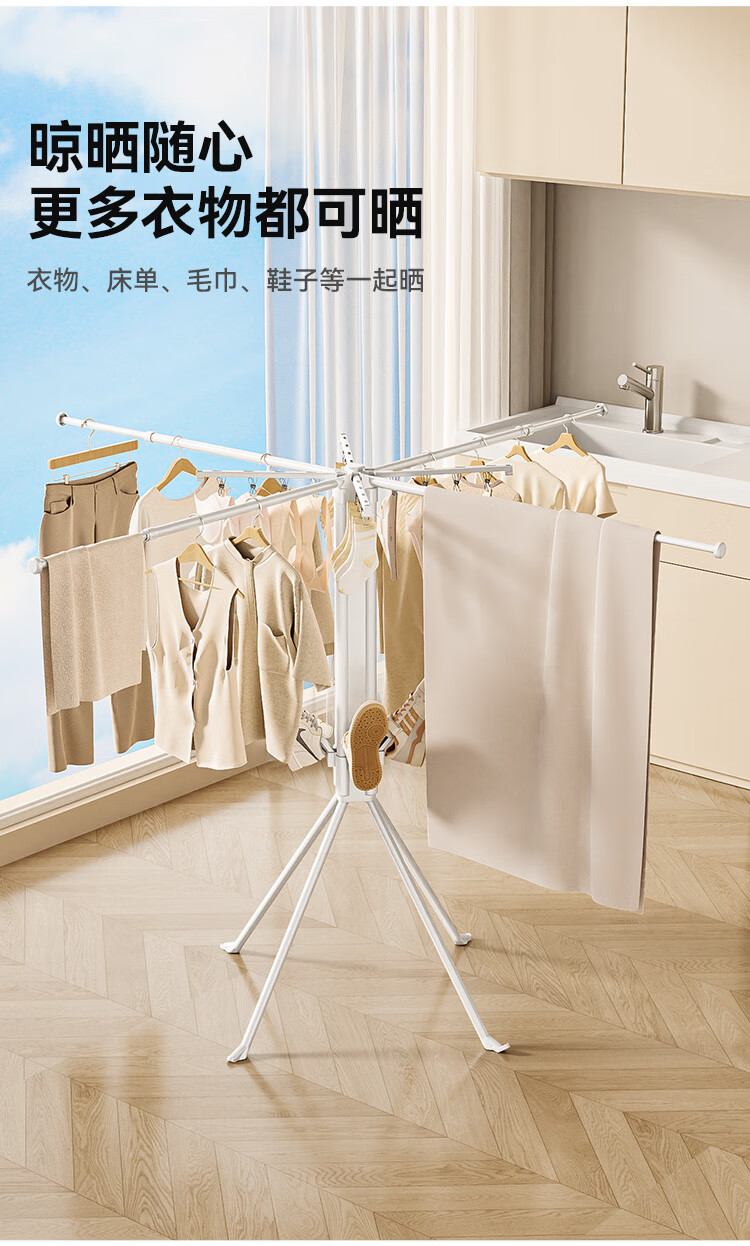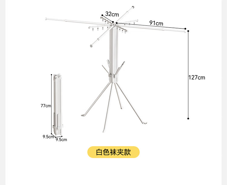 Good wife floor-standing clothes drying rack octopus style household foldable storage multi-functional balcony clothes, shoes and socks do not occupy space drying rack sock clip style white + with sock clip-foldable storage