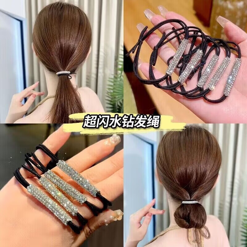 Rhinestone high-looking headband for women, 2025 new style ponytail hairband, crystal half-tied hair rubber band headwear, headband, rhinestone white, 5 pieces