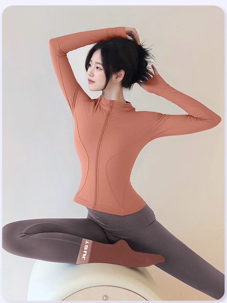 Double Show 2025 Super Hot Yoga Wear Slim Fit Stand Collar Sports Jacket Pilates Training Long Sleeve Autumn and Winter Fitness Top Grapefruit Pink XL 108-120