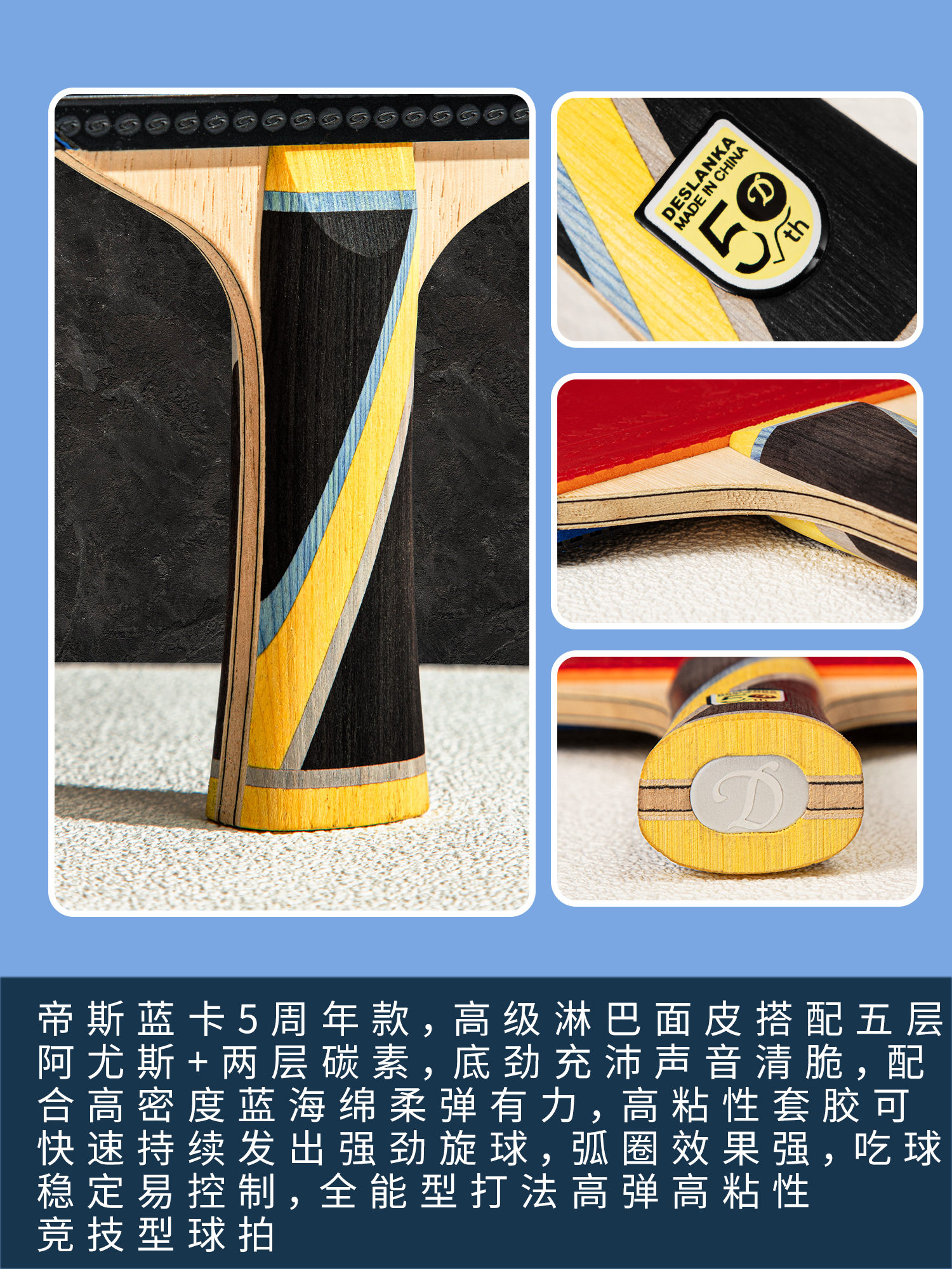 Deslan Card 5th Anniversary Table Tennis Racket 10-star 8-star ebony carbon blade, professional-grade single shot, pen-hold shot, horizontal shot, high elasticity and high viscosity, professional ebony 8-star horizontal shot, 1 piece