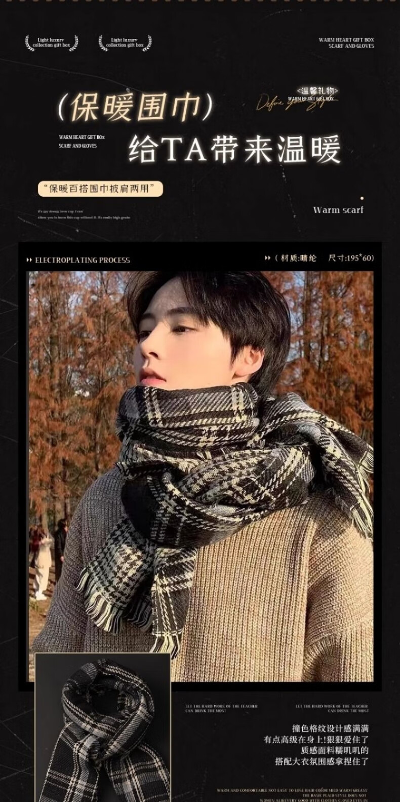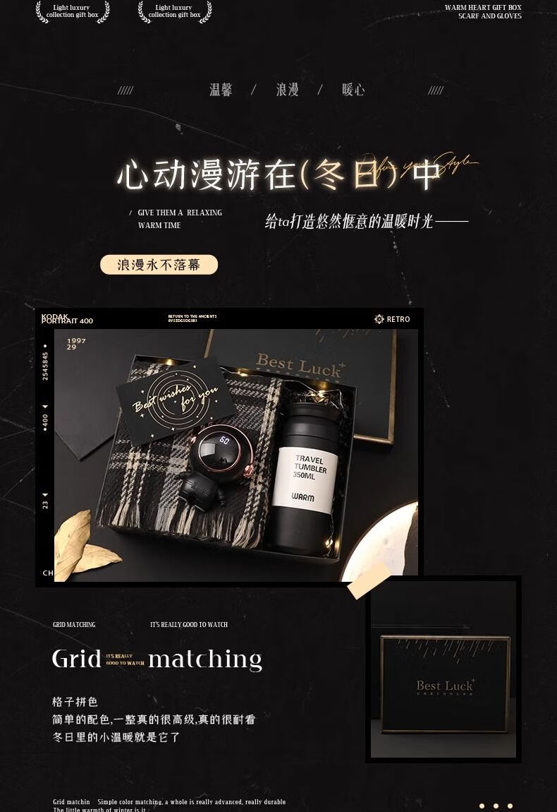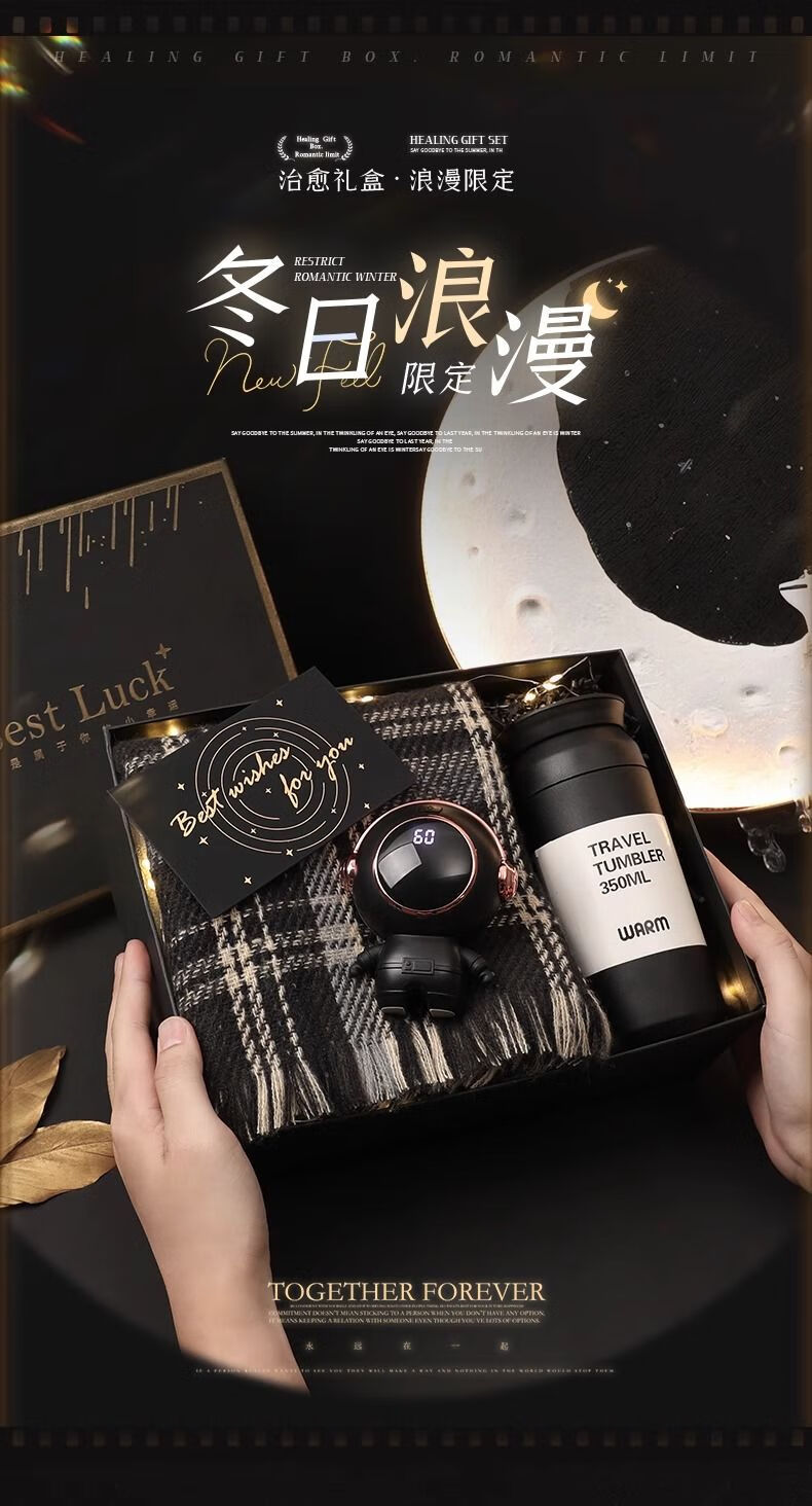 Bei Chuzhong Scarf Men's Birthday Gift for Boyfriends and Husbands Autumn and Winter Heart-warming High-end Gift Box Practical Warm Scarf Yaoye Black - Three-piece Set Scarf + Hand Warmer + Insulated Cup Exquisite Gift Box Fashionable and Versatile Best Choice for Gifts to Boyfriends