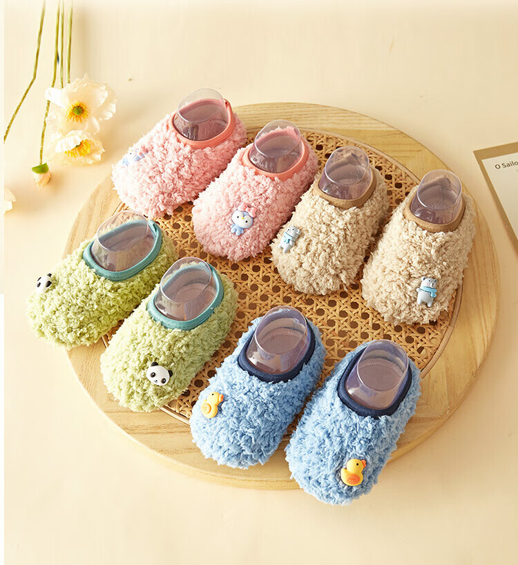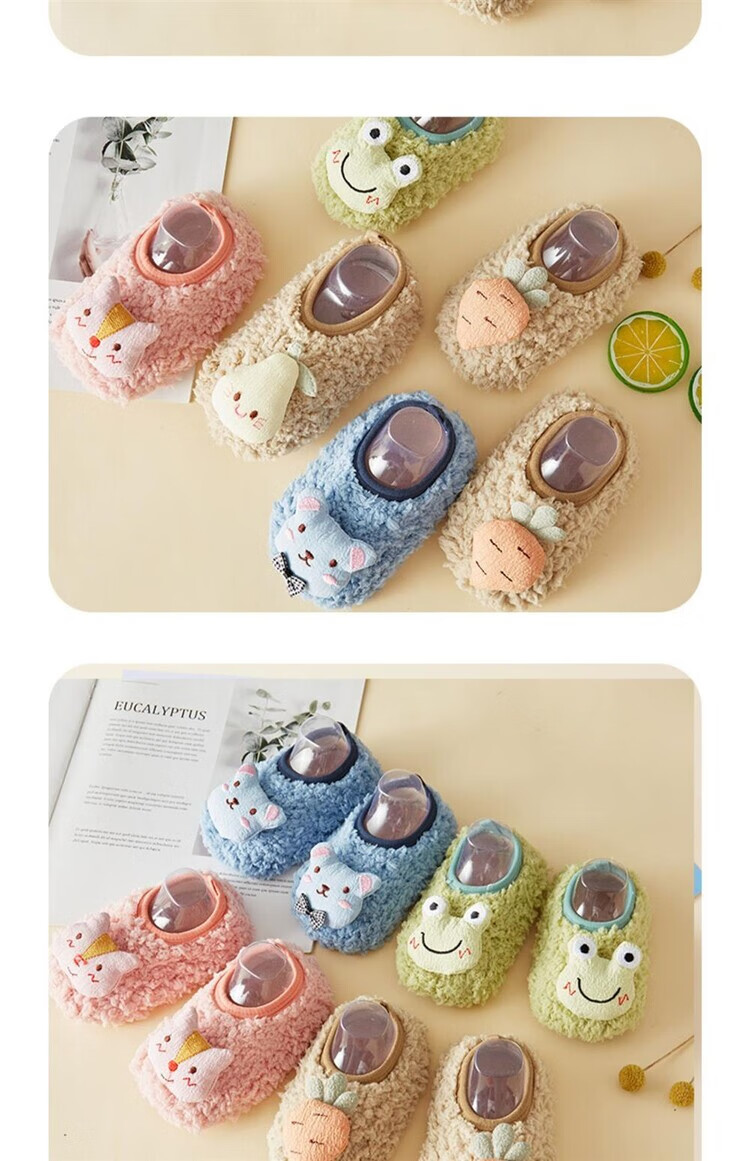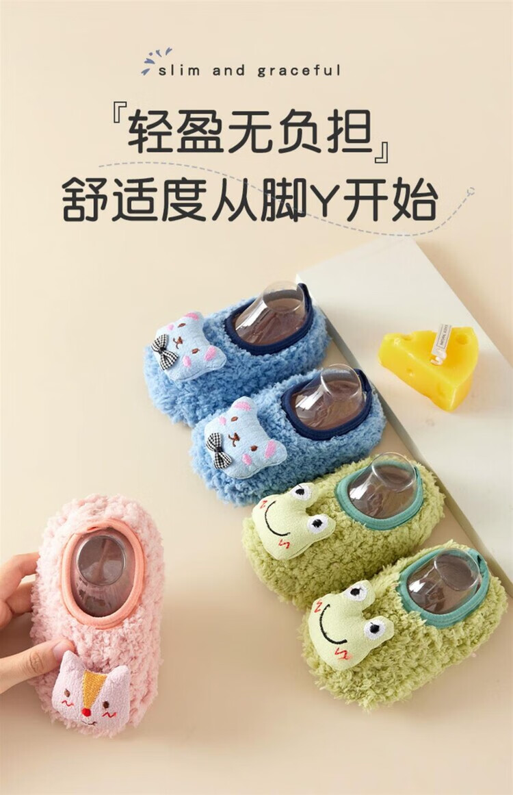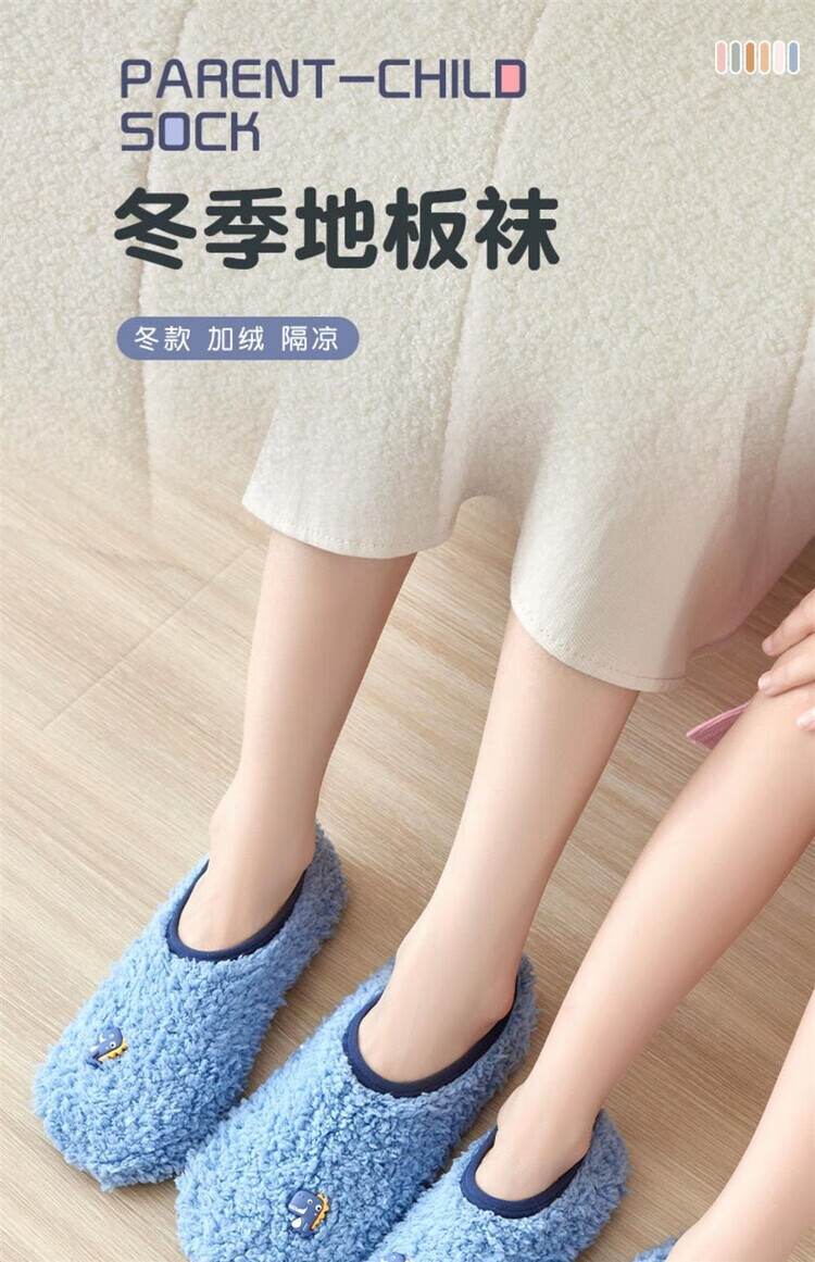Sawang German floor socks for children in autumn and winter, 4-6 years old, indoor non-slip, warm and cool, home soft soles, 7-8 years old, thick soles, 1 pair - Blue Dinosaur, release the heel and wear it for a long time, one size fits all XS - bottom length 12.5CM - about 8-12 months