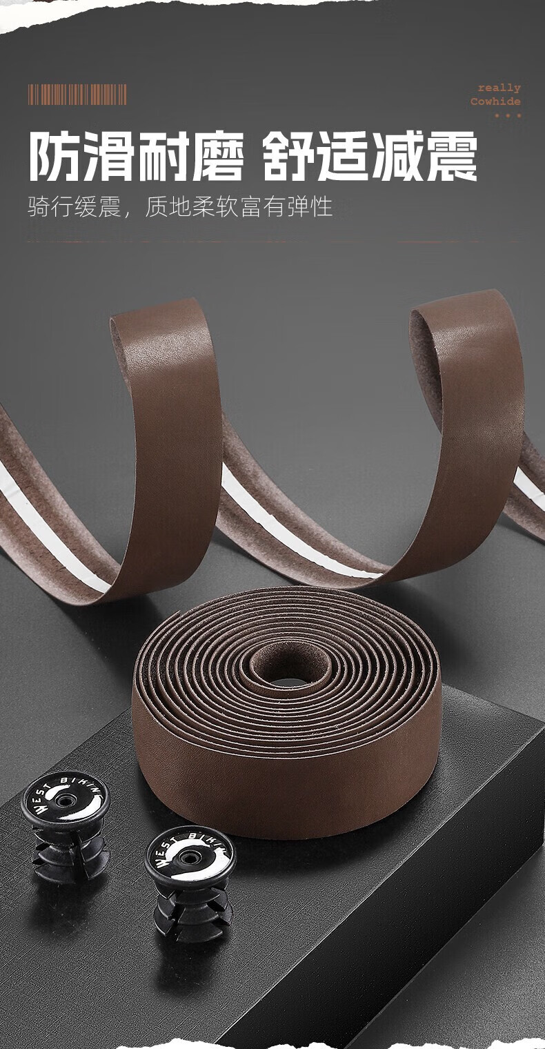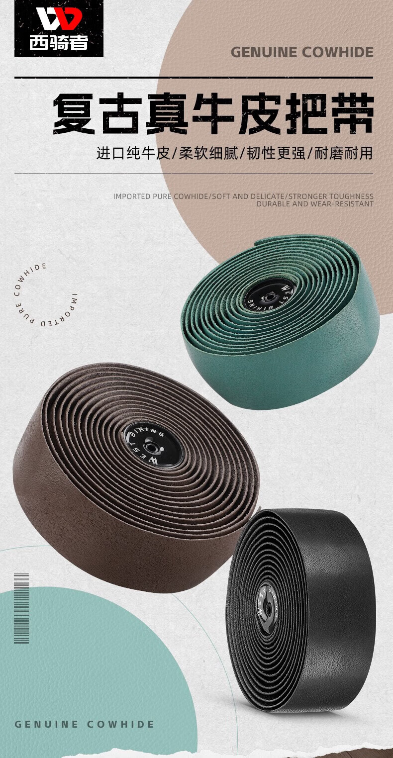 West Rider road handlebar with genuine leather cowhide retro strap bicycle handlebar wrap with curved handlebar anti-slip handlebar tape red