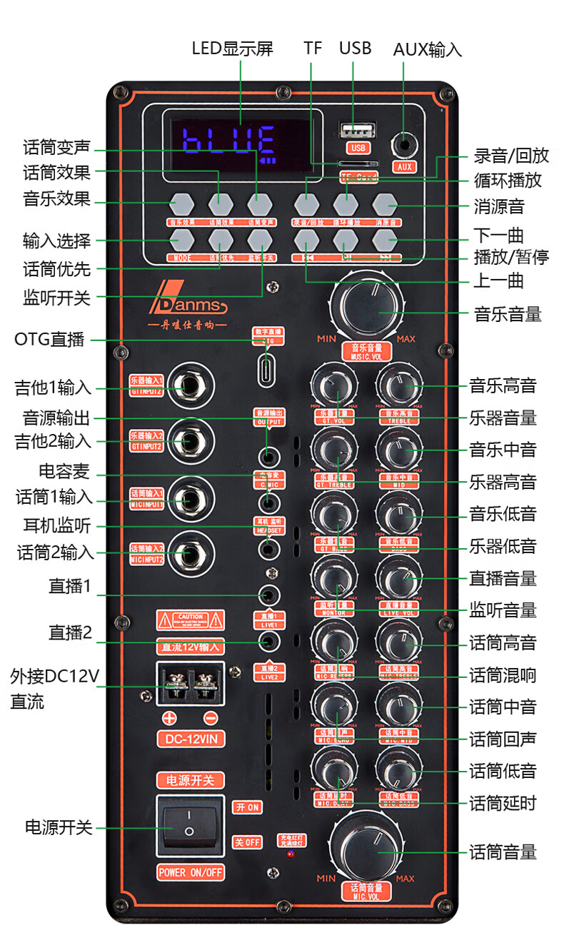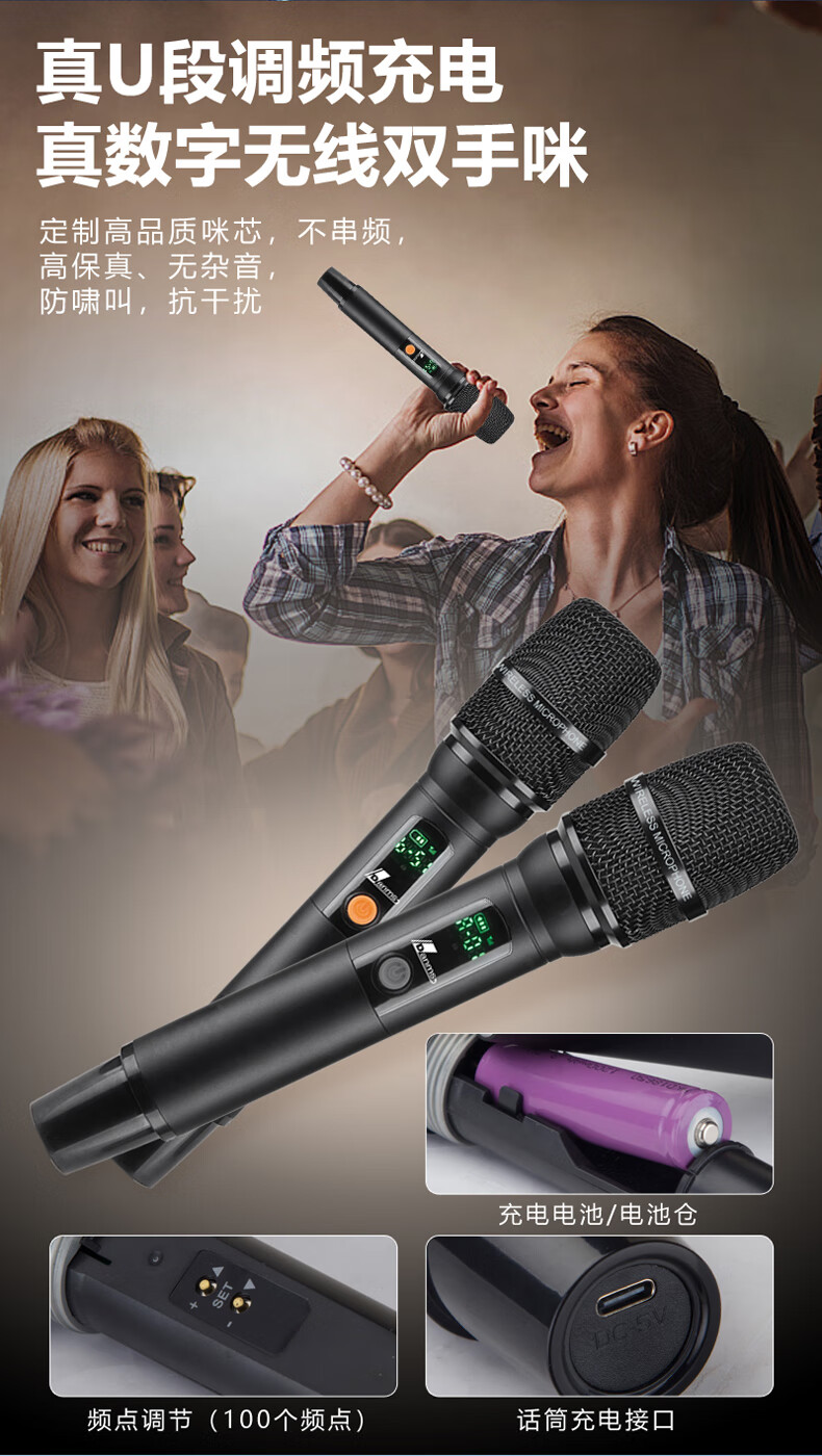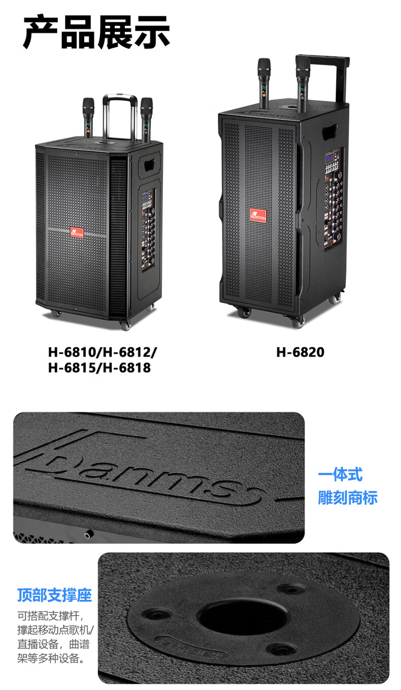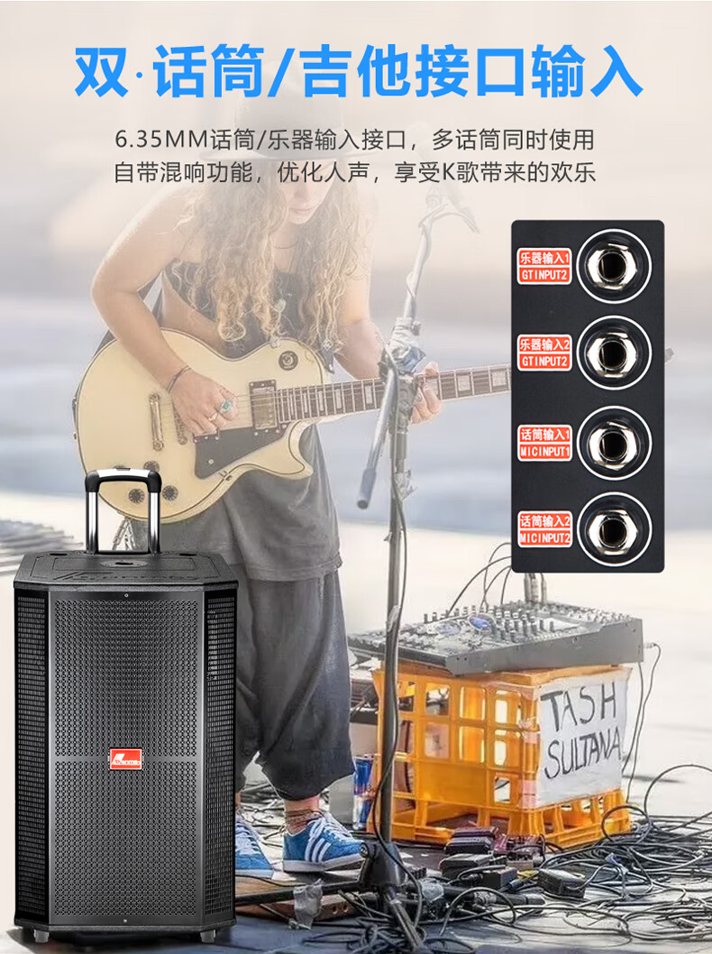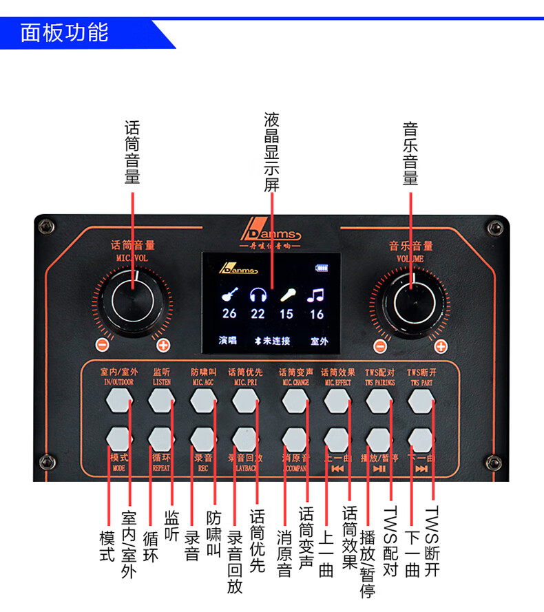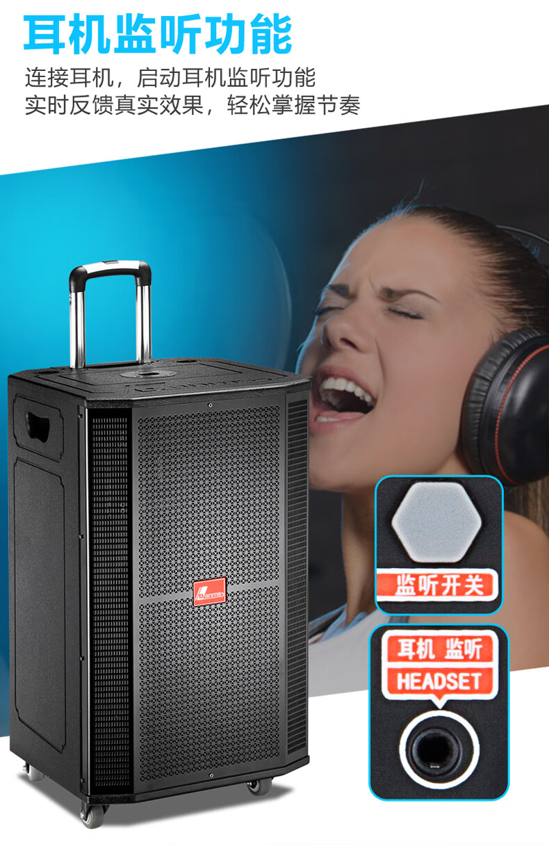 Danmark outdoor trolley audio high-power professional square dance karaoke audio 18-inch heavy bass three-way Bluetooth sound card live broadcast mobile event conference speaker dual charging microphone H-9115 (15-inch heavy bass)