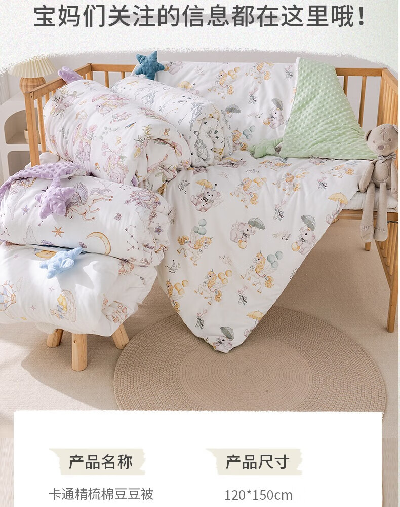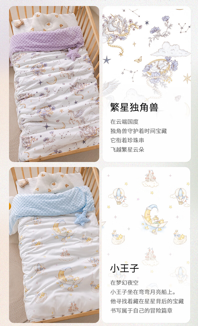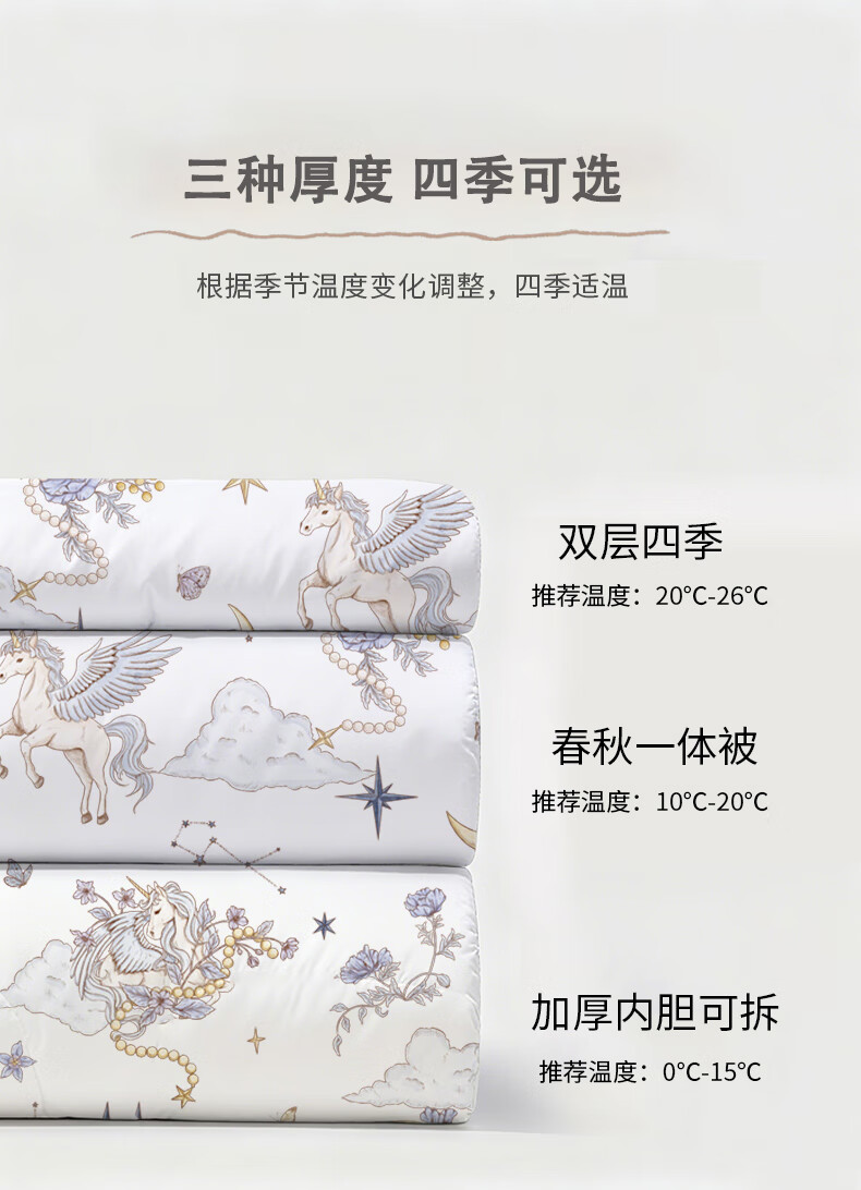 Babyincoming baby quilt children's beanie quilt newborn blanket autumn and winter kindergarten quilt mulberry silk blanket starry unicorn (thickened and detachable mulberry silk constant temperature recommended 0-15 C) 120*150cm