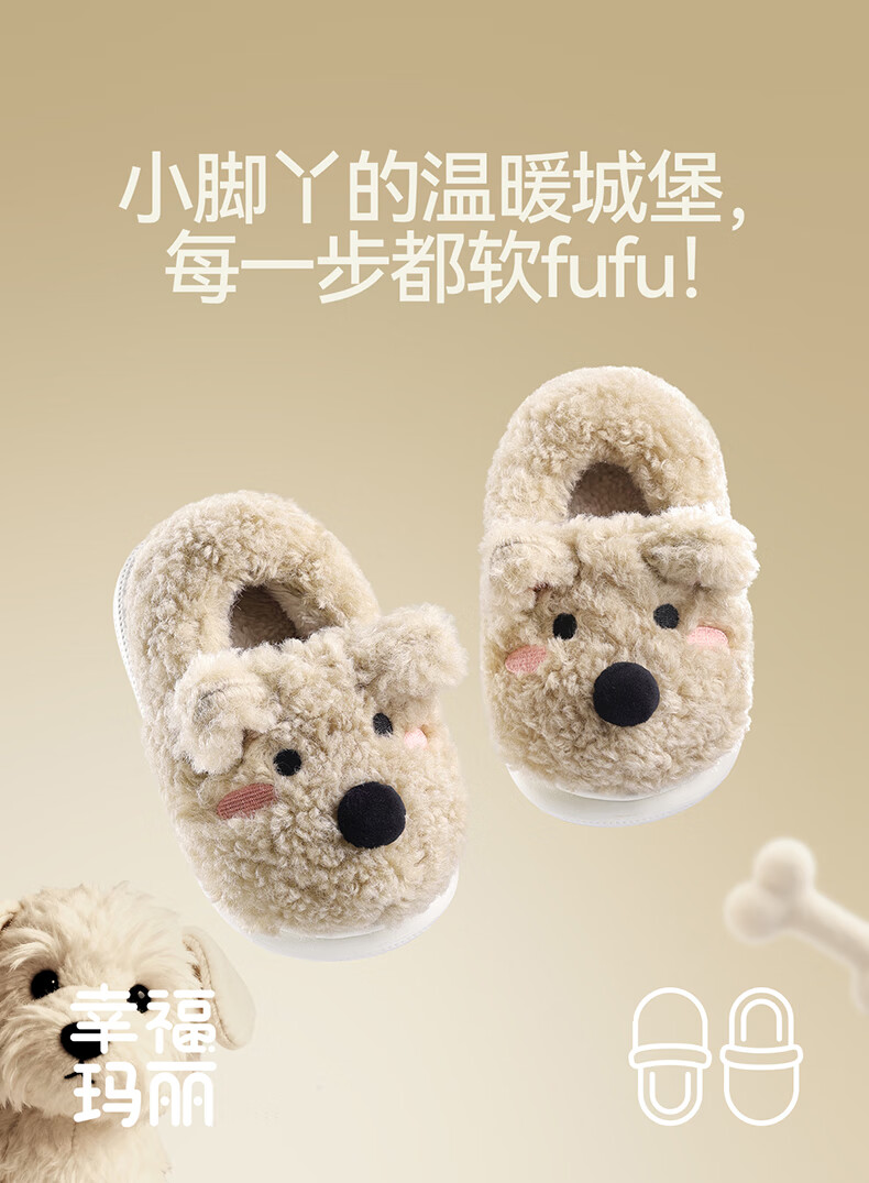 Happy Mary Children's Cotton Slippers Girls Winter Heel Indoor Home Furnishing Infants Baby Warm Boys West Highland Wool Cotton Shoes Brown West Highland 23 Inner Length 15cm Suitable for Feet Length 14-14.5cm