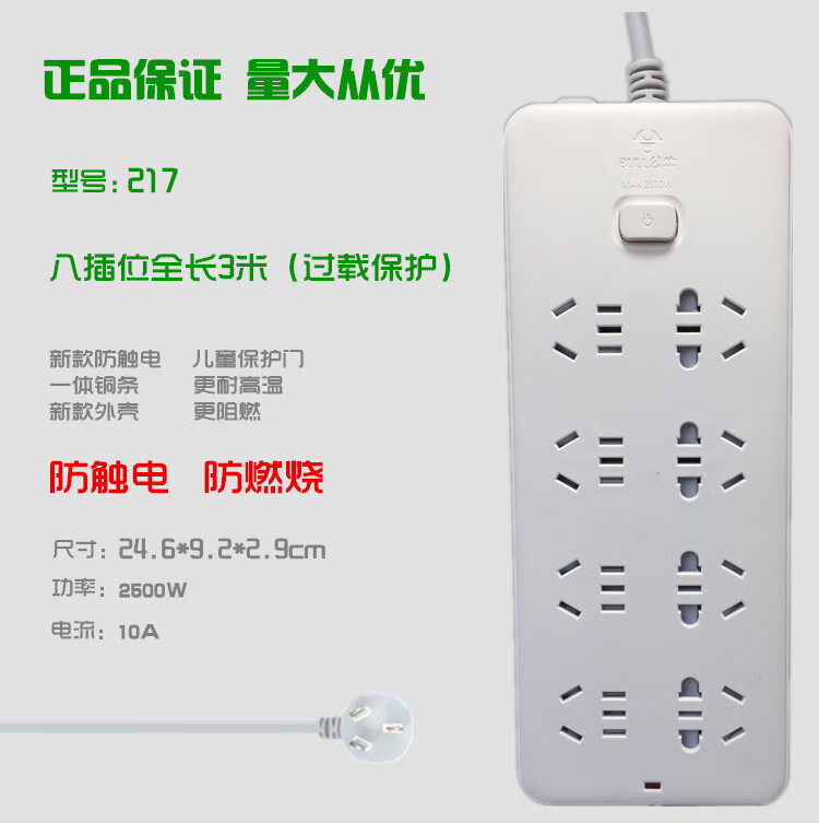 Socket old style large hole big round hole round head universal hole plug row round hole Hong Kong British and American style universal square head plug row 3 sockets 1.8 meters GN-314 round hole independent switch