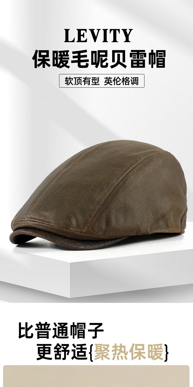 SOMUBAY (SOMUBAY) new autumn and winter dad hat men's lightweight breathable beret middle-aged and elderly grandfather retro fashion warm forward hat brown one size (55-59CM)
