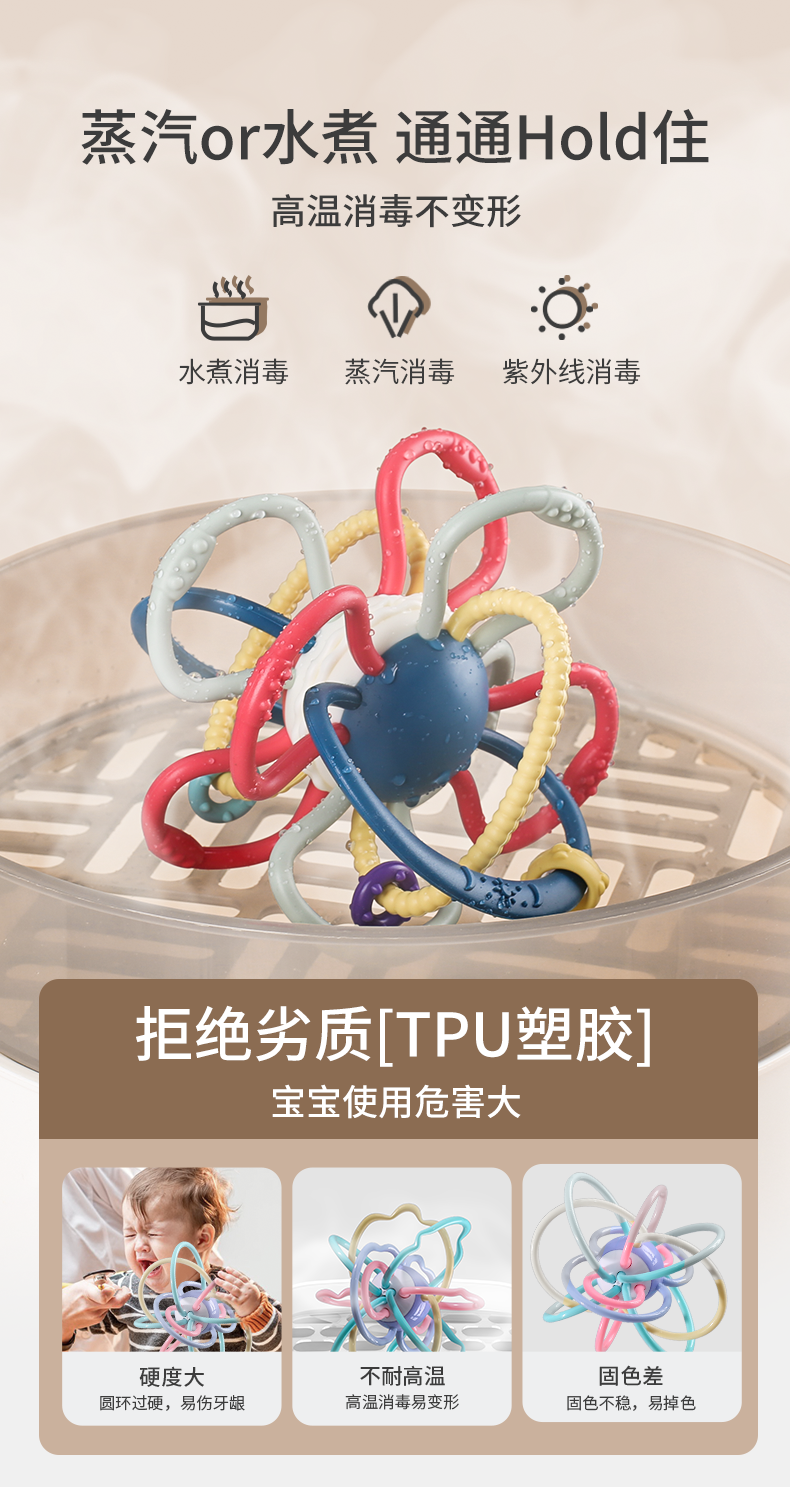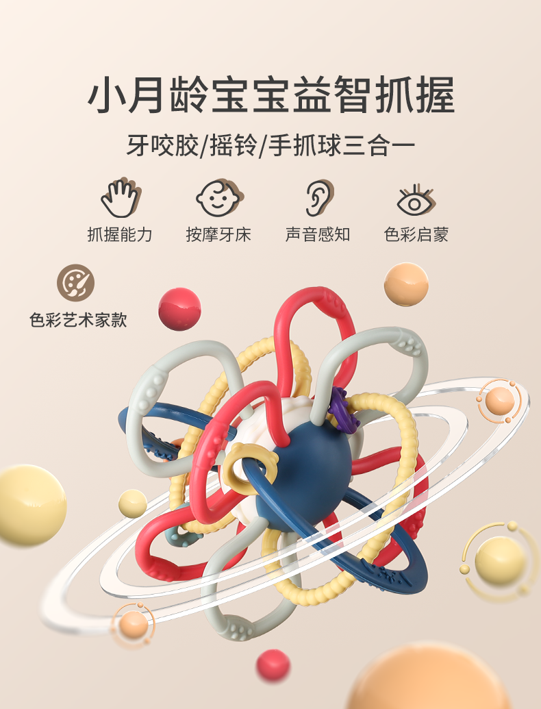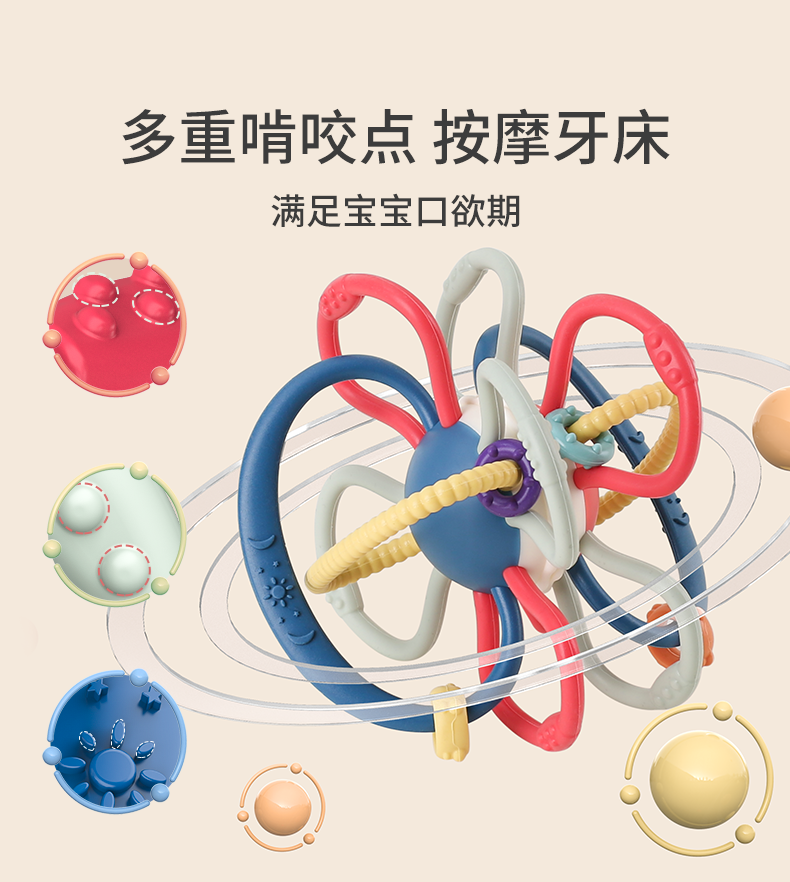 Pocket Manhattan Hand Grip Ball Baby Teether Baby Soothing Soft Silicone Toy Can Be Boiled and Anti-Eating Hand Bite Joy Manhattan Ball*Jelly Planet 1 Pack
