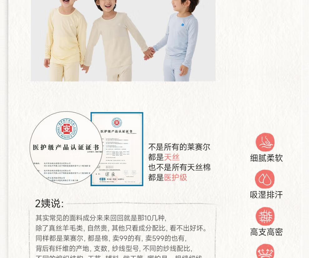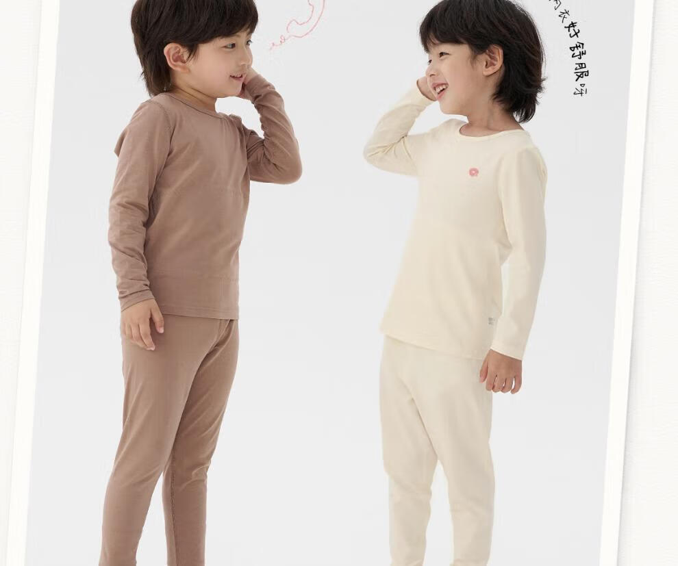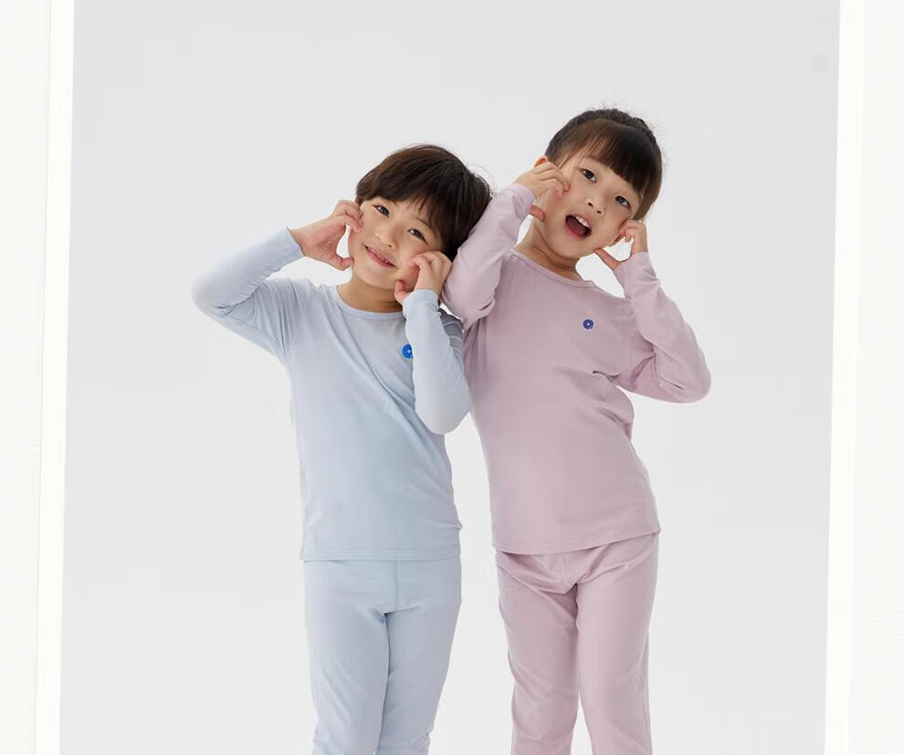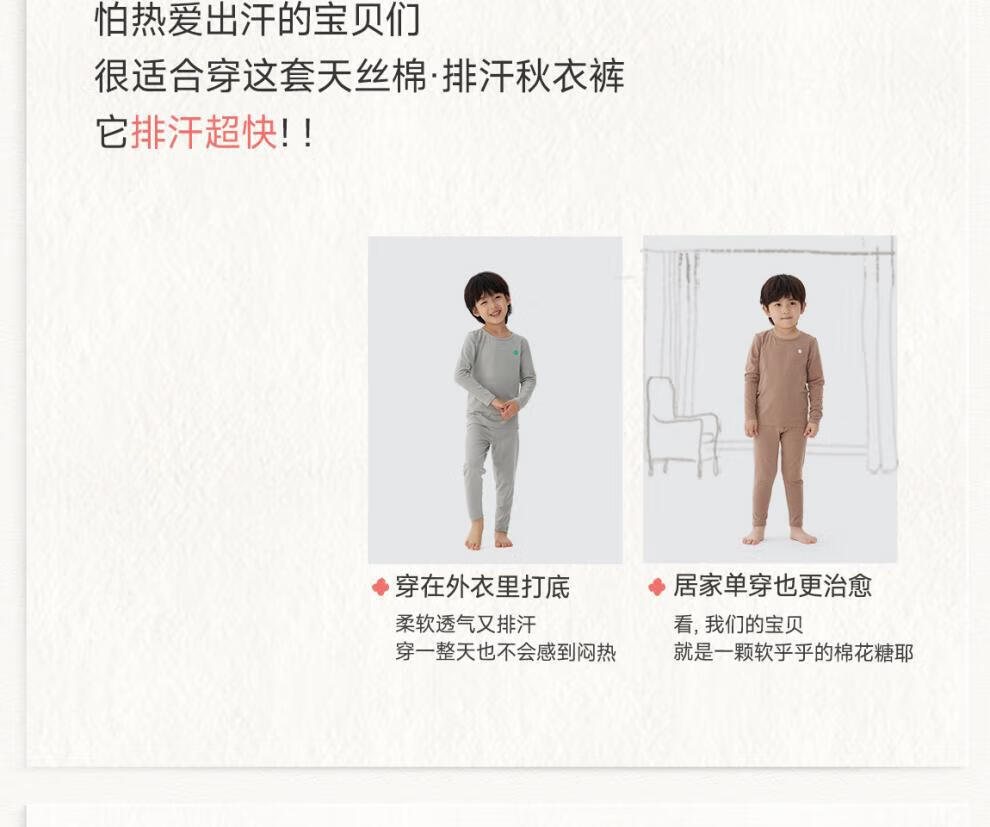 Q21 Children's sweat-wicking underwear set for boys and girls, Tencel cotton moisture-absorbent home clothes, pajamas, warm autumn clothes, moss garden green 100 cm