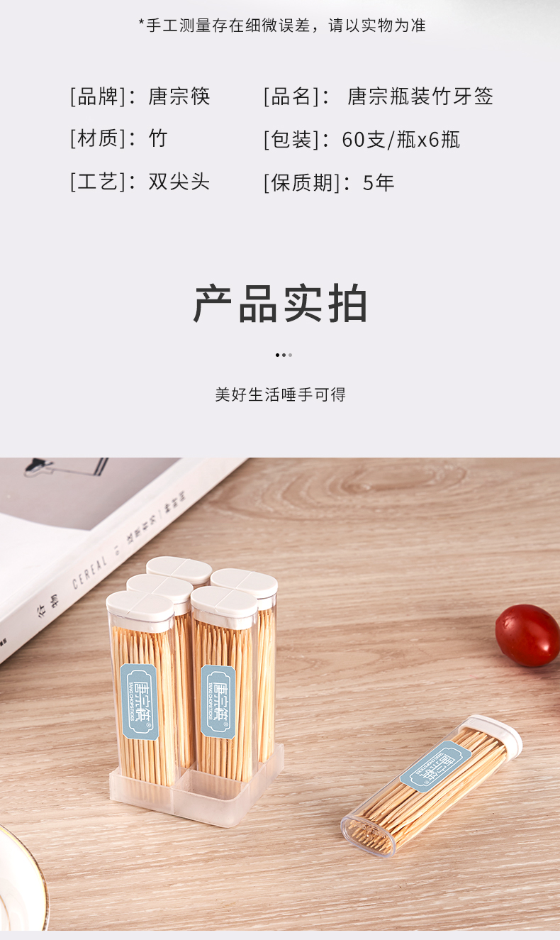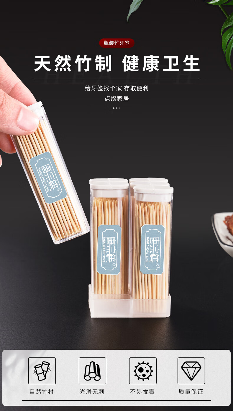 Tang Zong Chopsticks Portable Bamboo Toothpicks Disposable Household Bamboo Toothpicks and Floss Box for Business Travel Pack Double-Headed Toothpicks Three-Color Box-350 Count*3 Cans