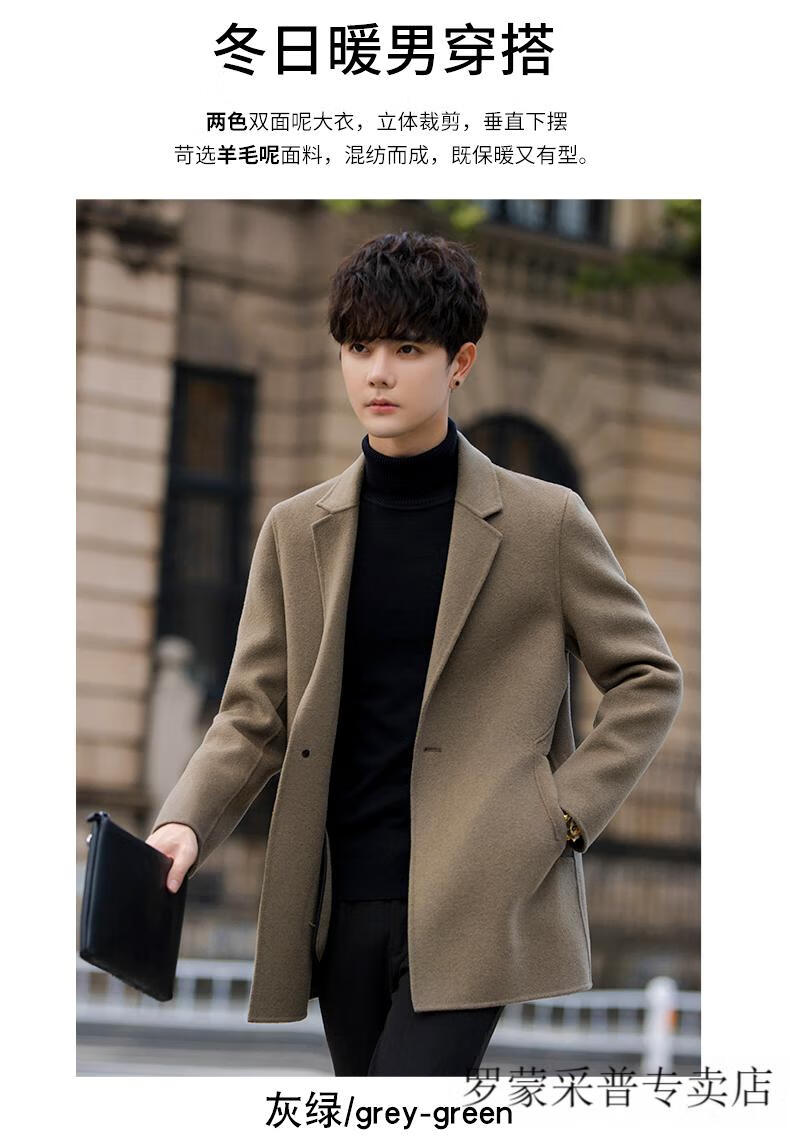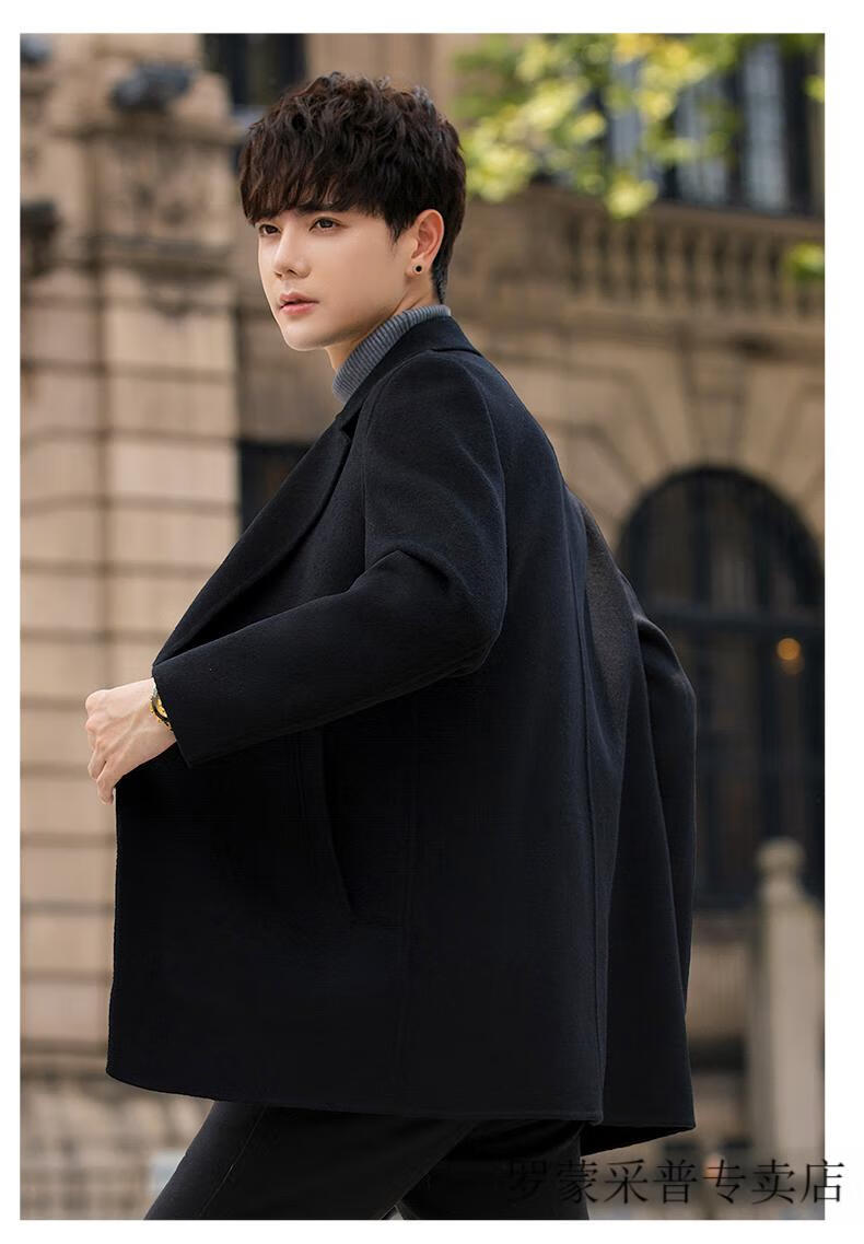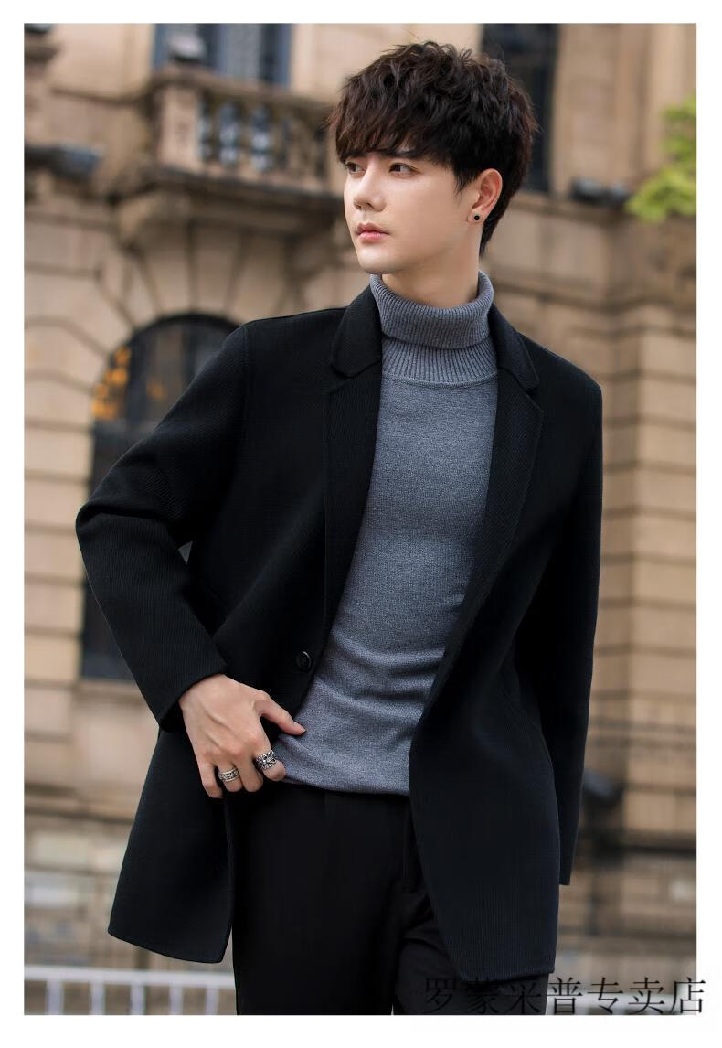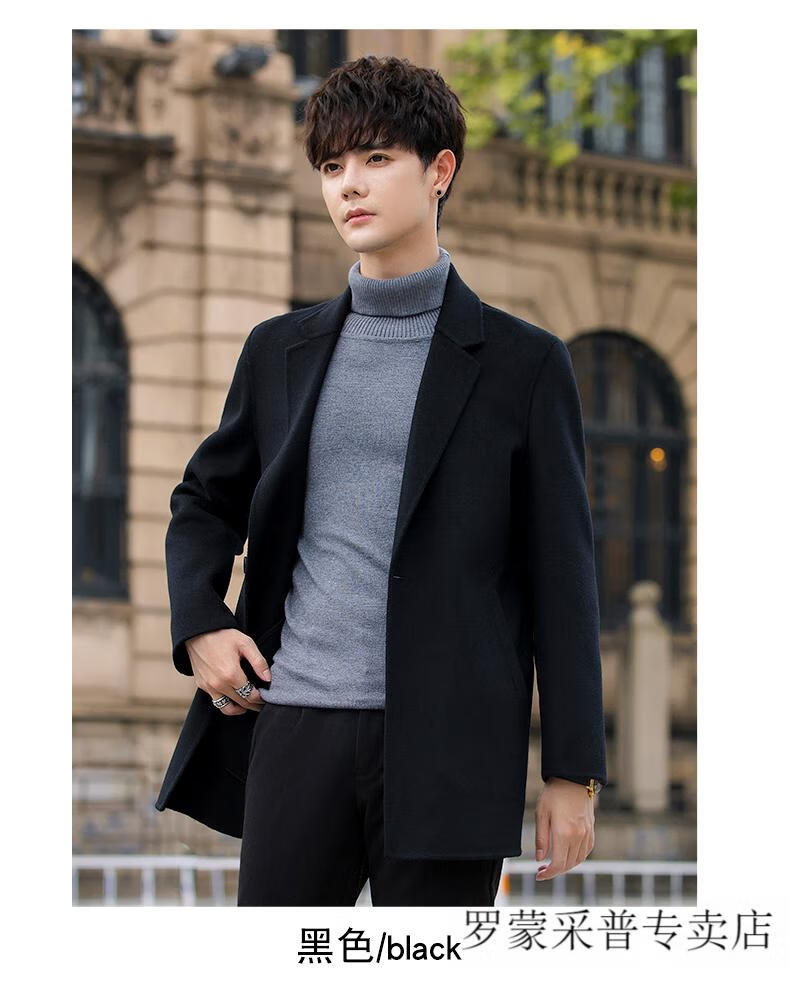 Romon double-sided woolen coat men's mid-length Korean style high-end suit woolen coat autumn and winter thickened wind clothes black S (110Jin Jin is equal to 0.5 kg or less)