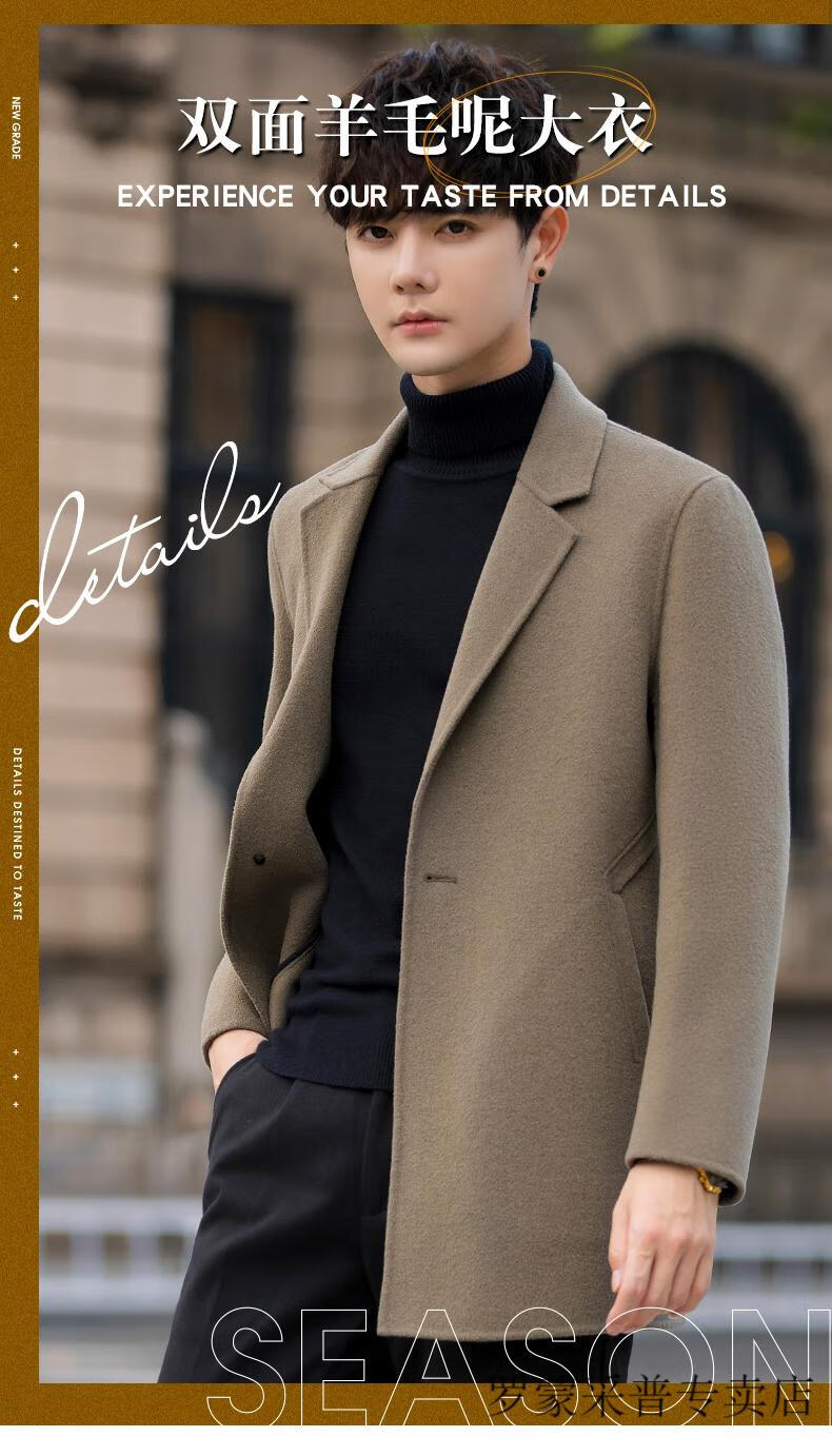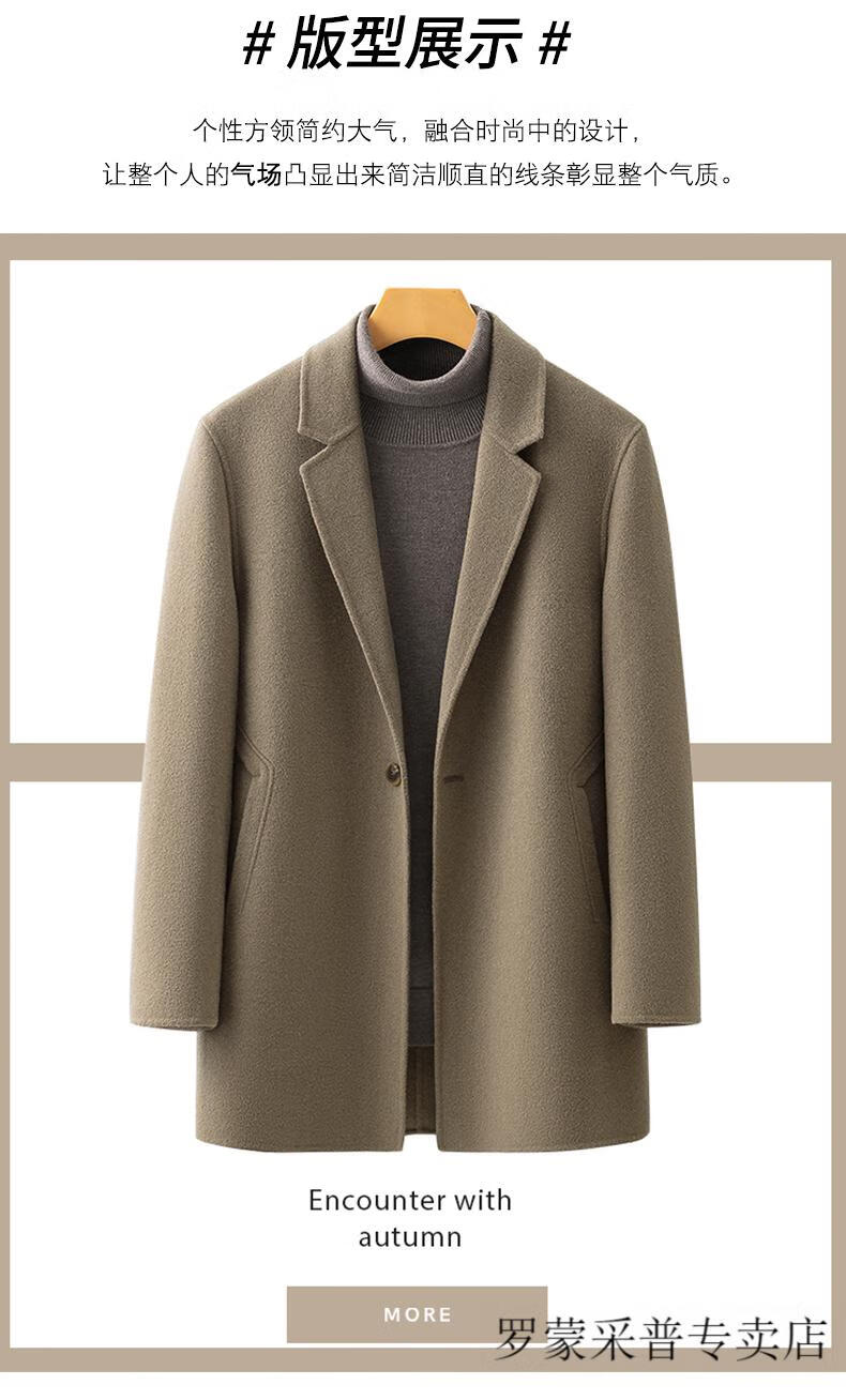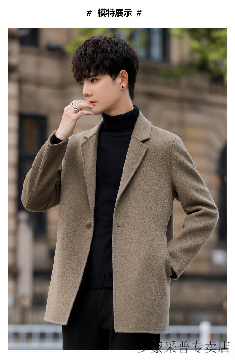 Romon double-sided woolen coat men's mid-length Korean style high-end suit woolen coat autumn and winter thickened wind clothes black S (110Jin Jin is equal to 0.5 kg or less)