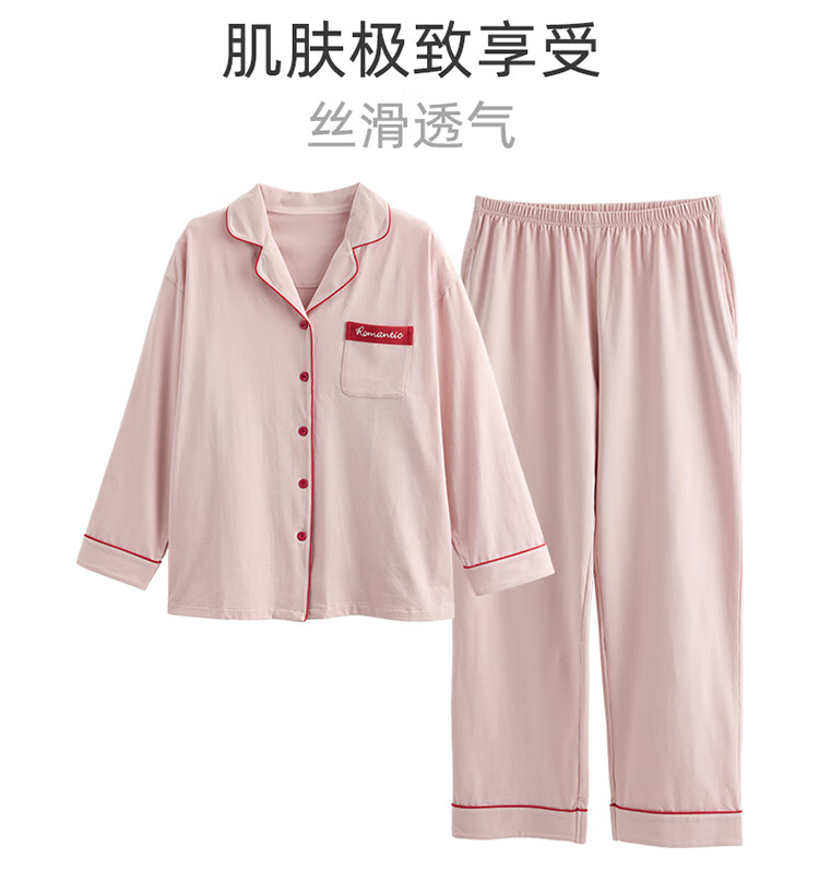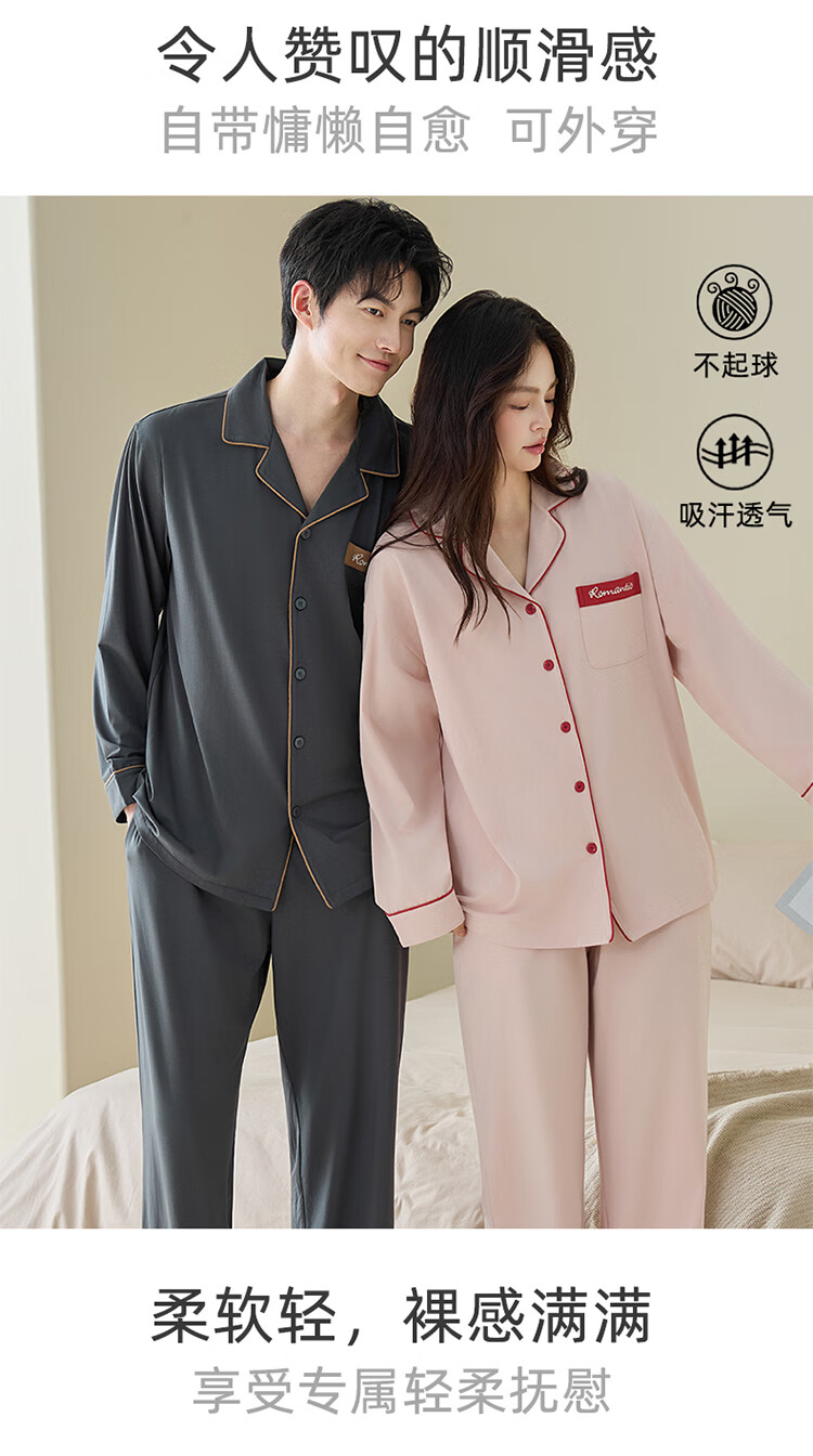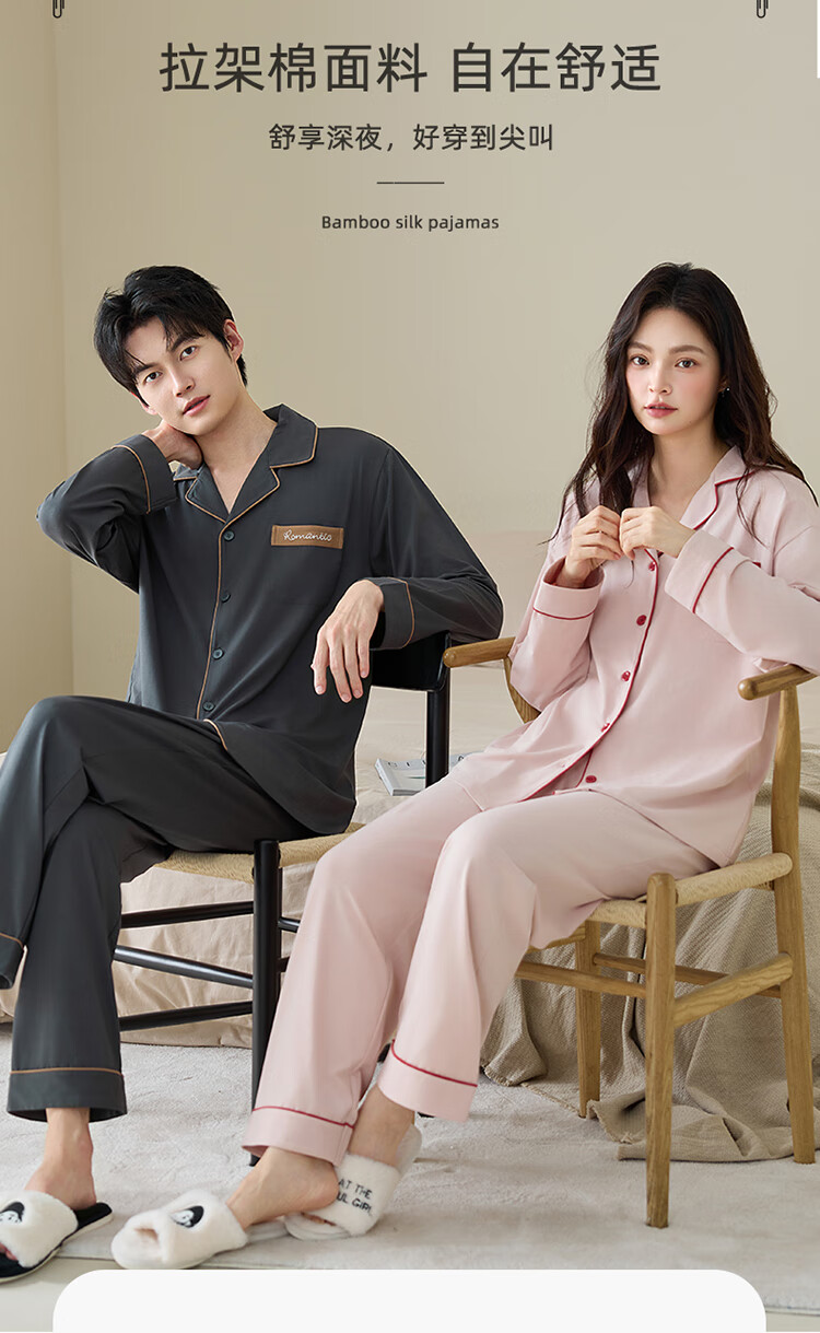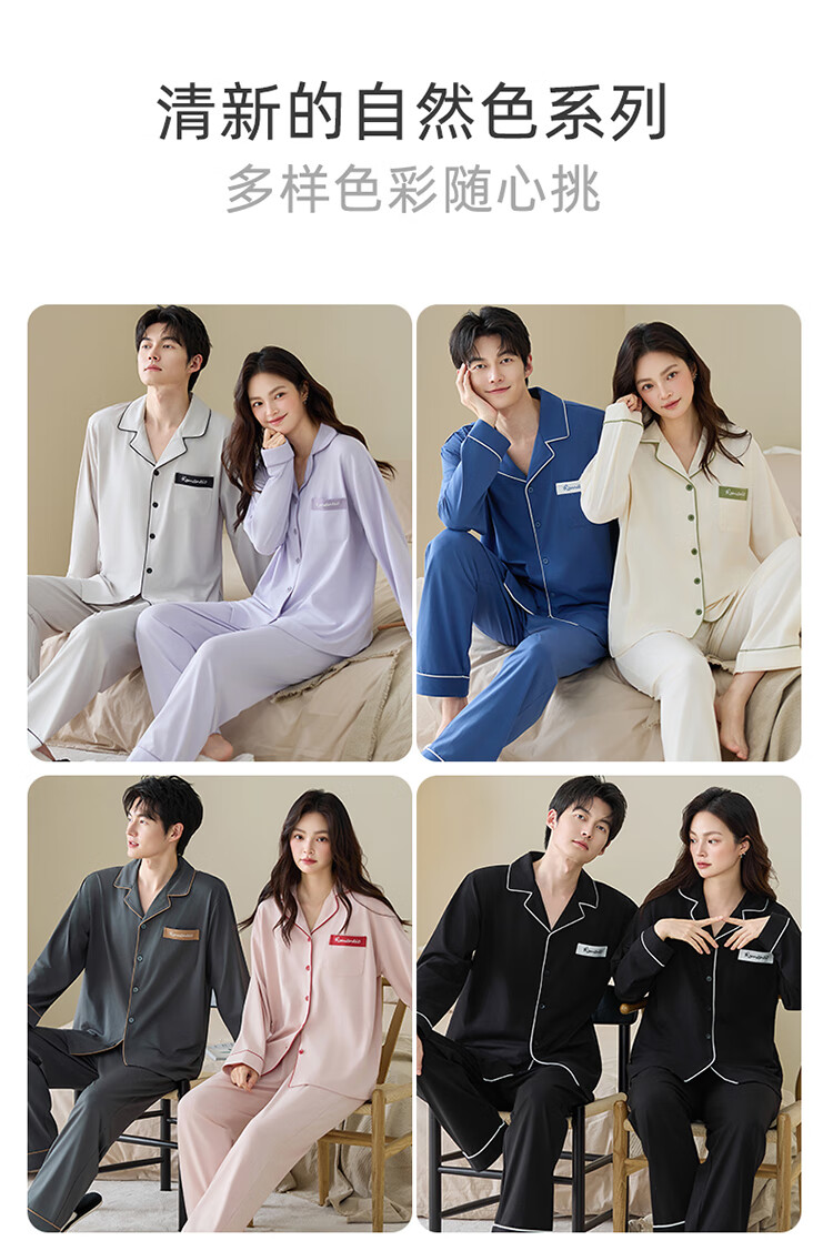 Couple's pajamas spring and autumn pure cotton pull-frame long-sleeved trousers casual suit cardigan simple high-end cool cotton home clothes men's style 5088 2XL