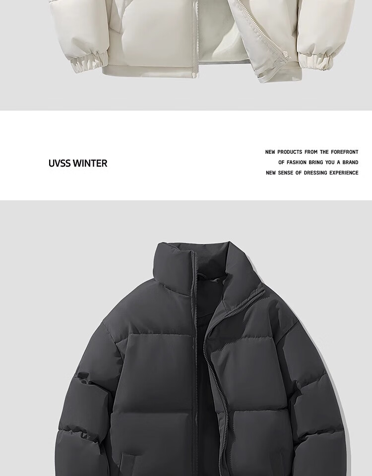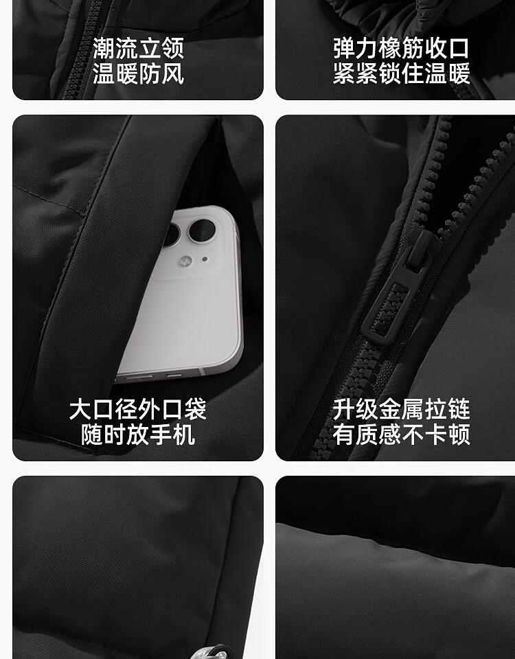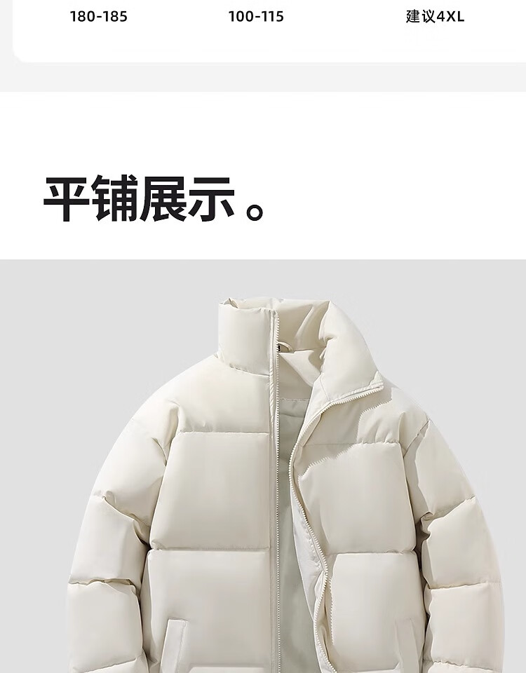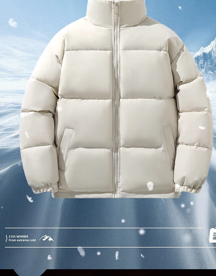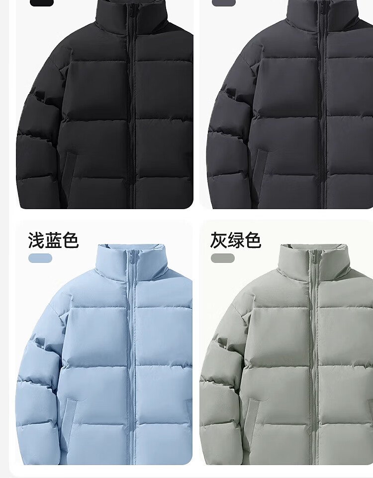 Woodpecker Winter Down Cotton Jacket Men's Trendy Brand Stand Collar Bread Jacket Plus Velvet Thickened White Velvet Men's Disposable Jacket Stand Collar Black #Solid Color L